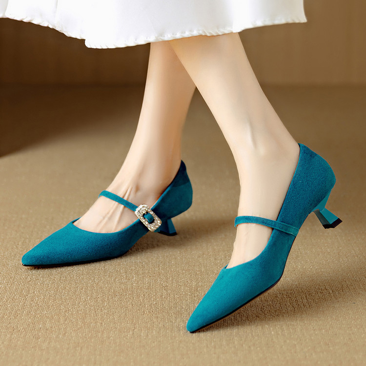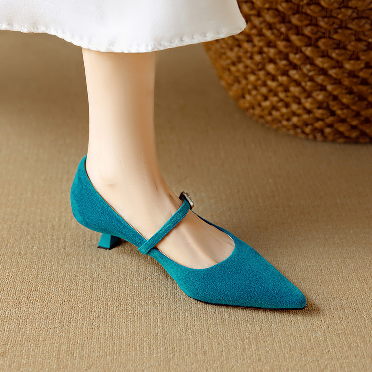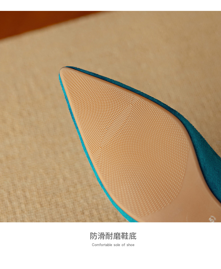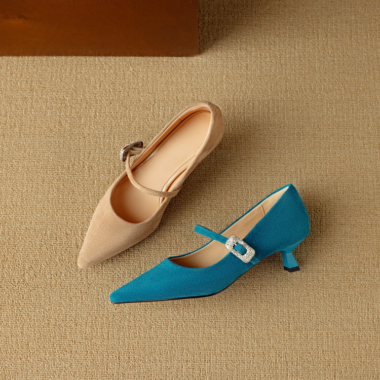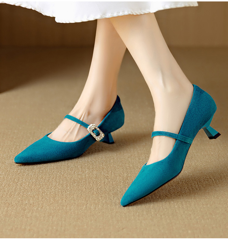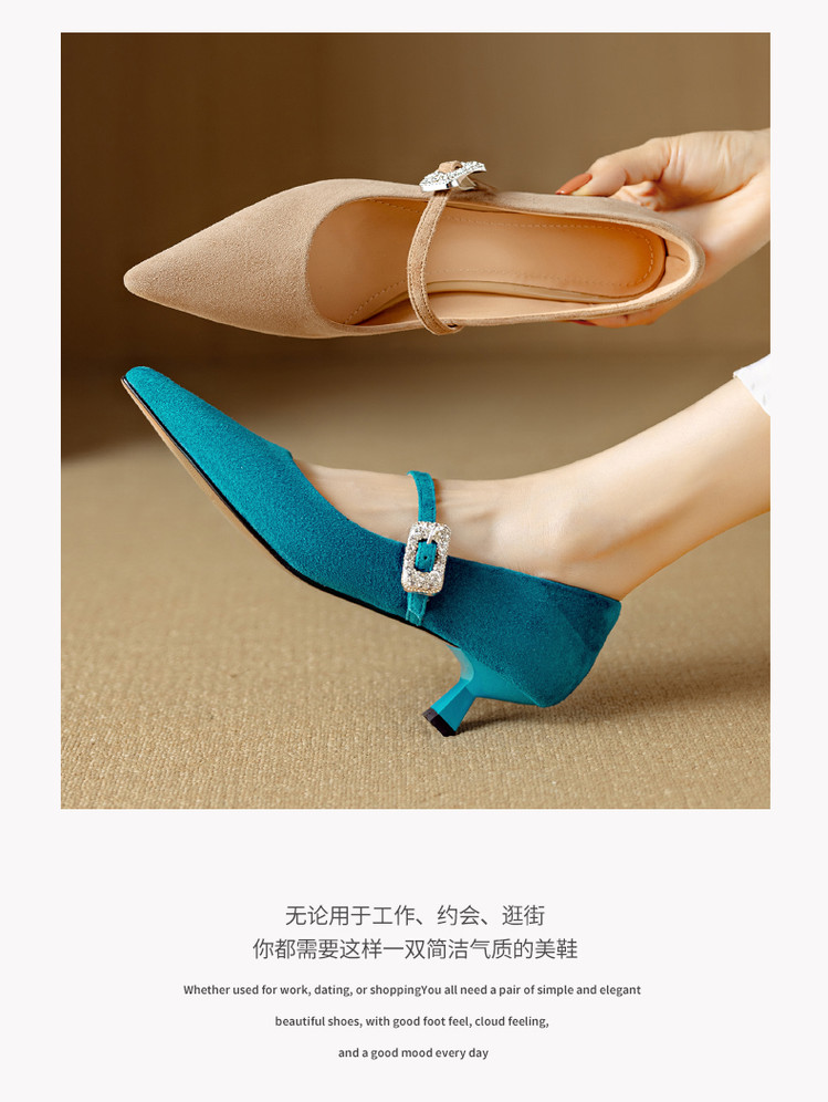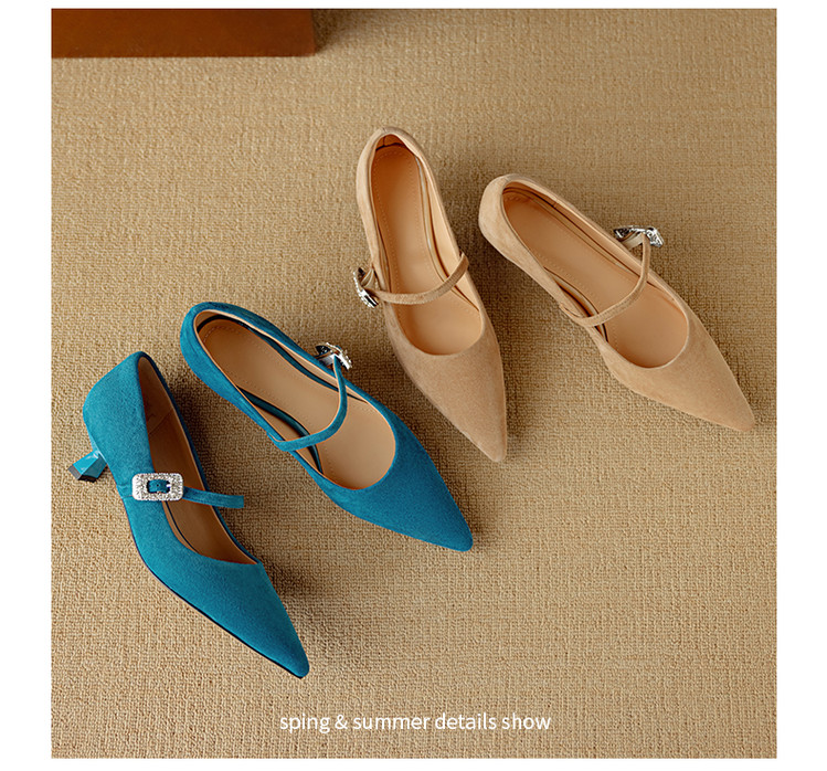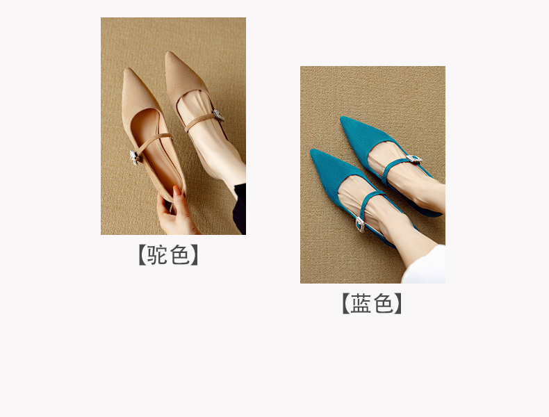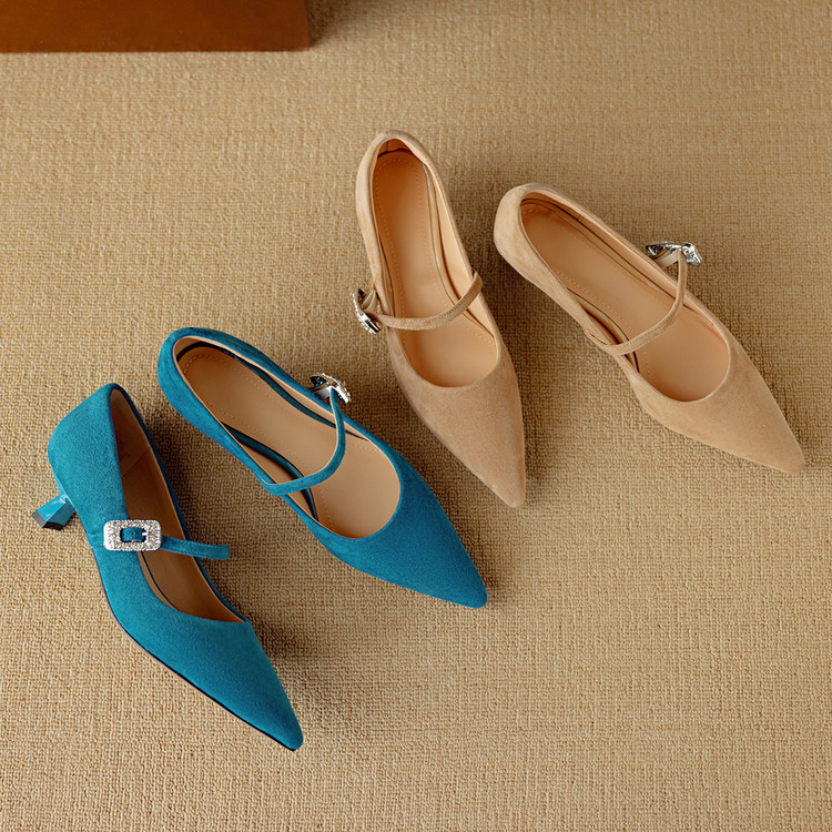 【预售5天】羊反绒!蓝色显白小高跟鞋新款尖头浅口法式一字带中跟单鞋女DB&M6539