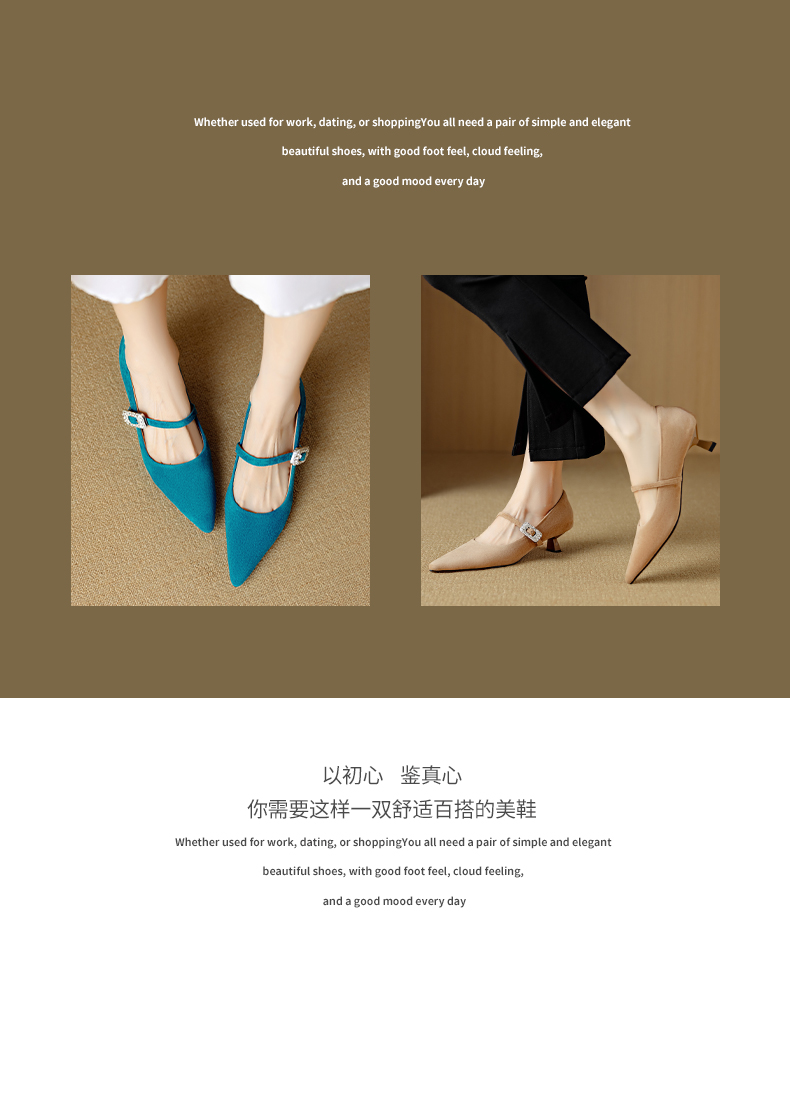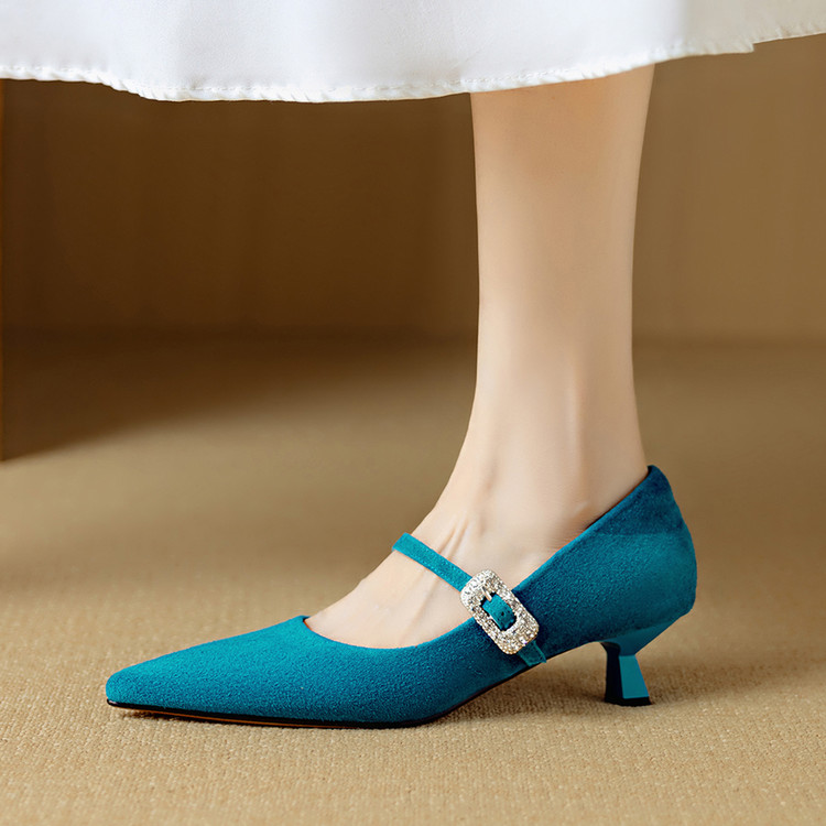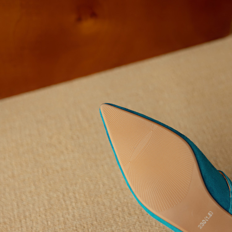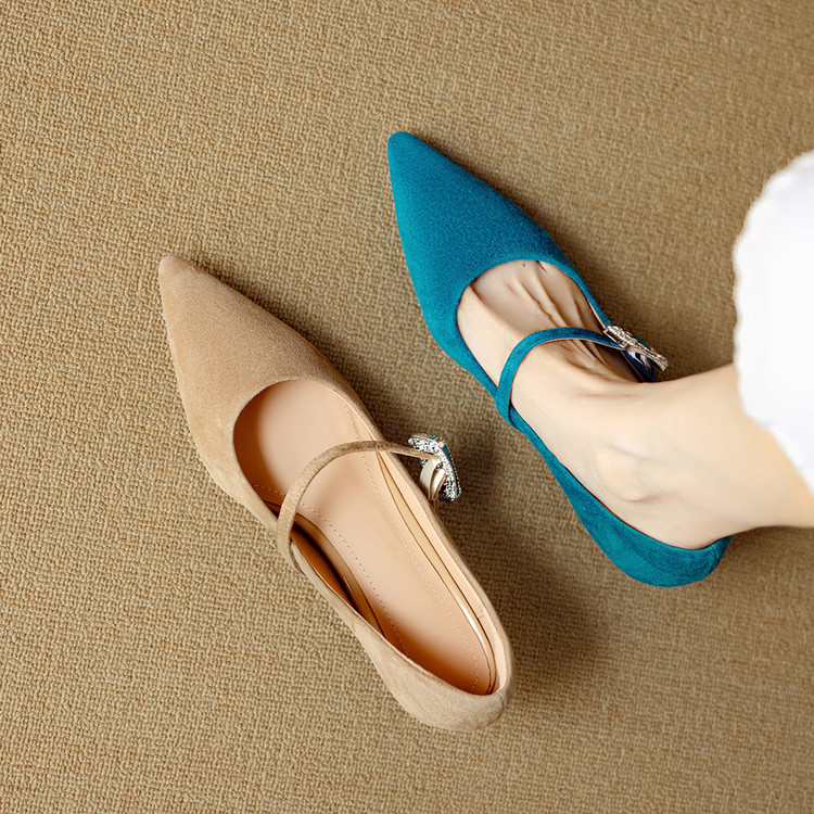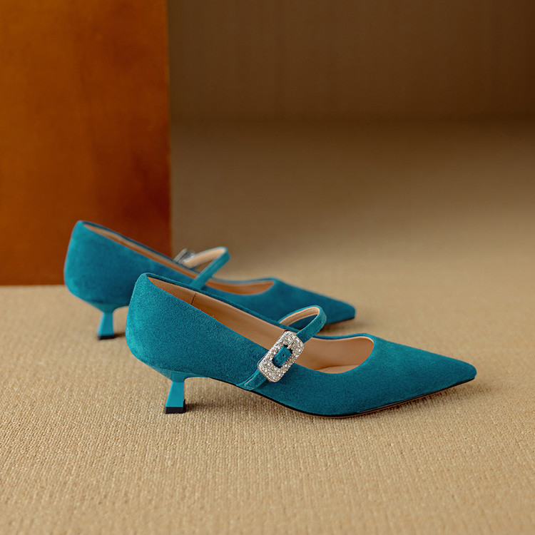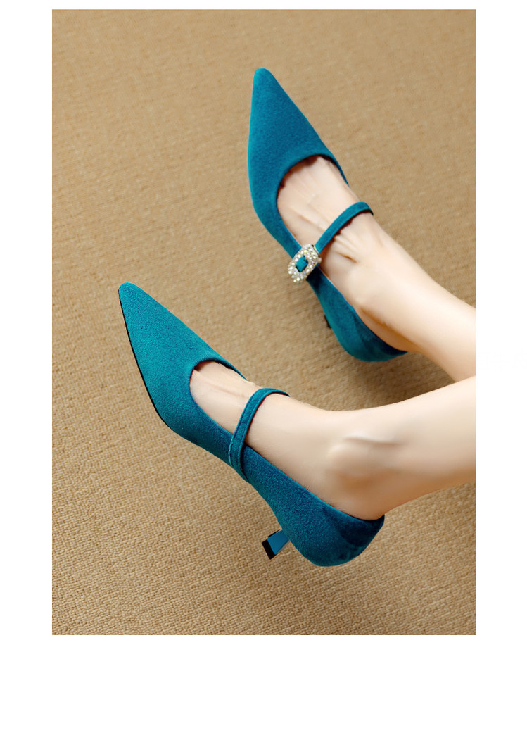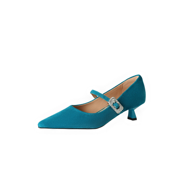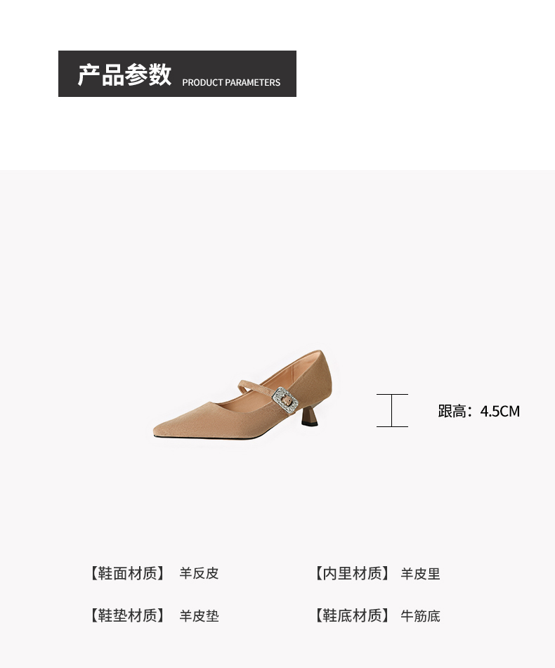 【预售5天】羊反绒!蓝色显白小高跟鞋新款尖头浅口法式一字带中跟单鞋女DB&M6539