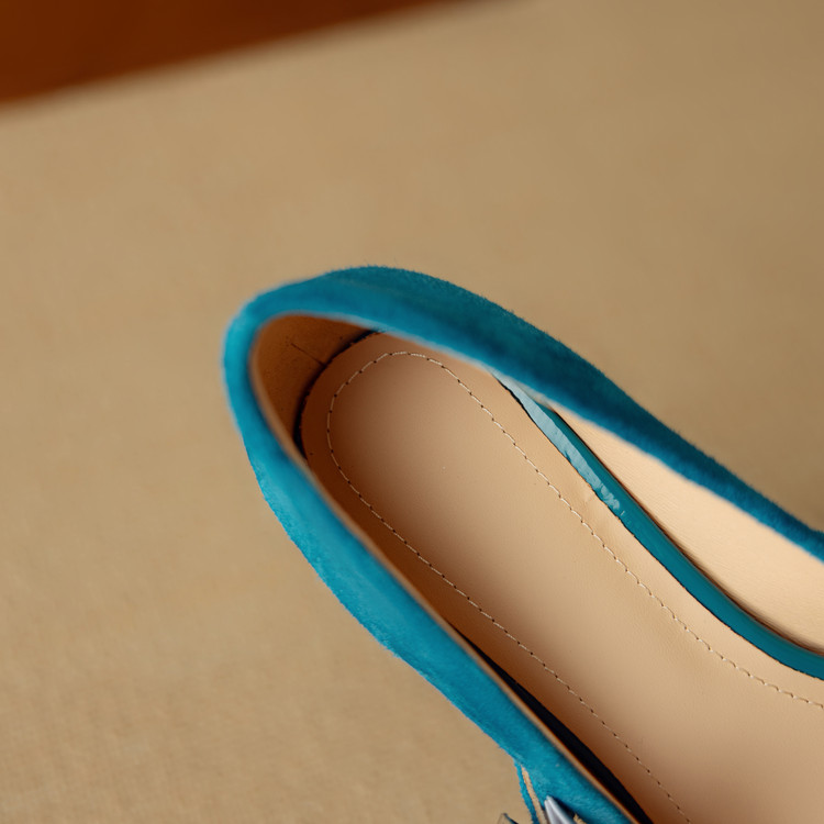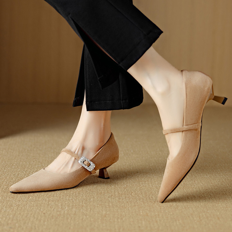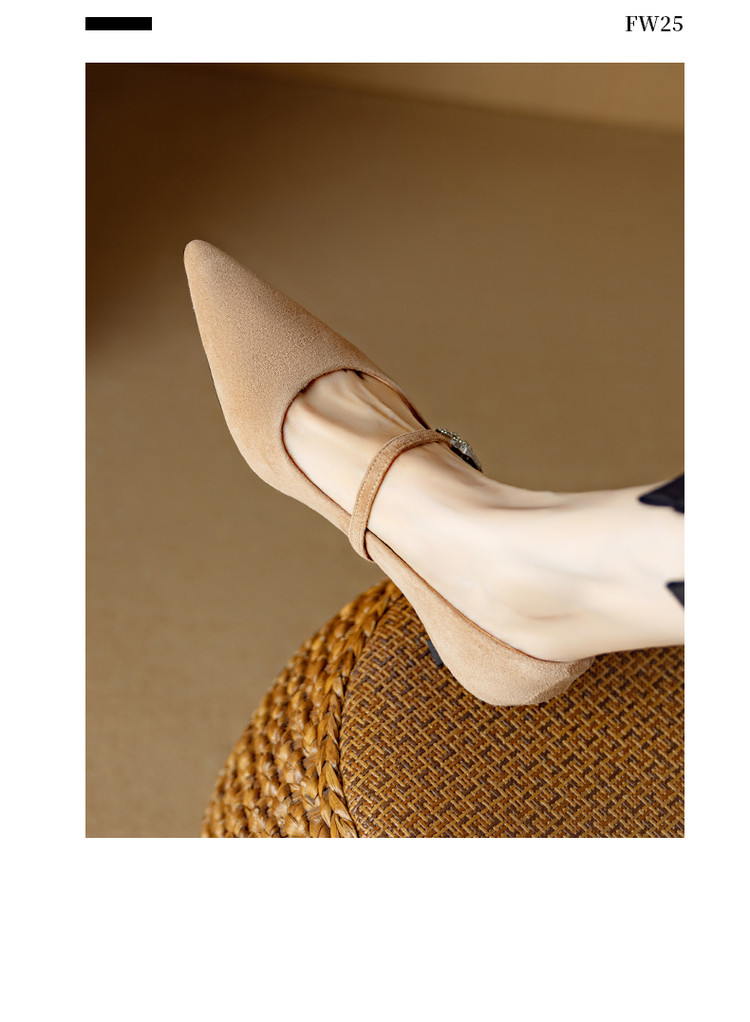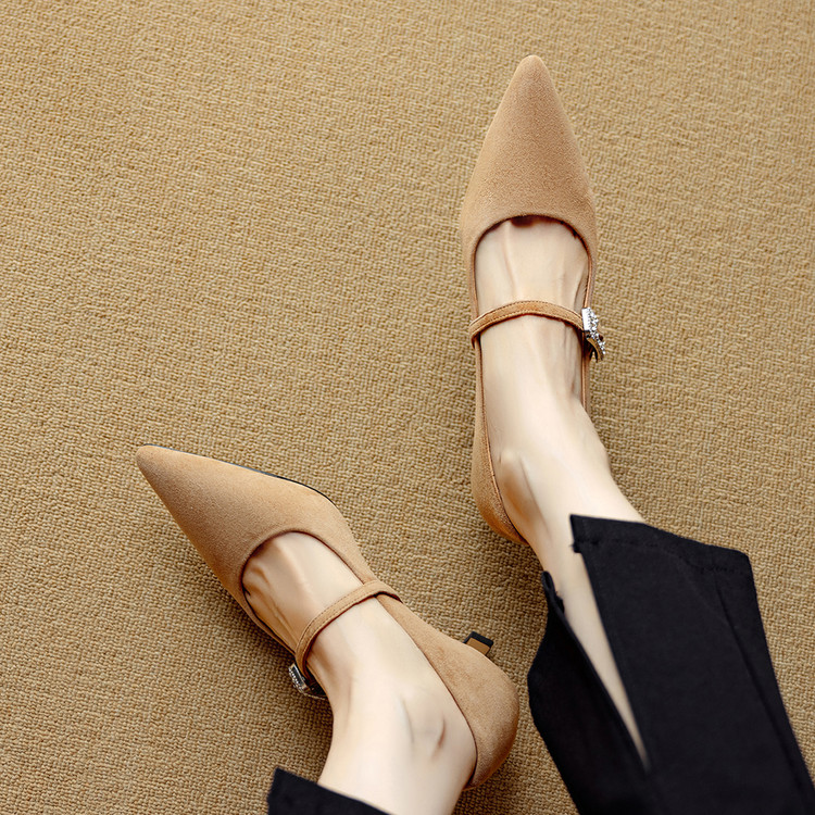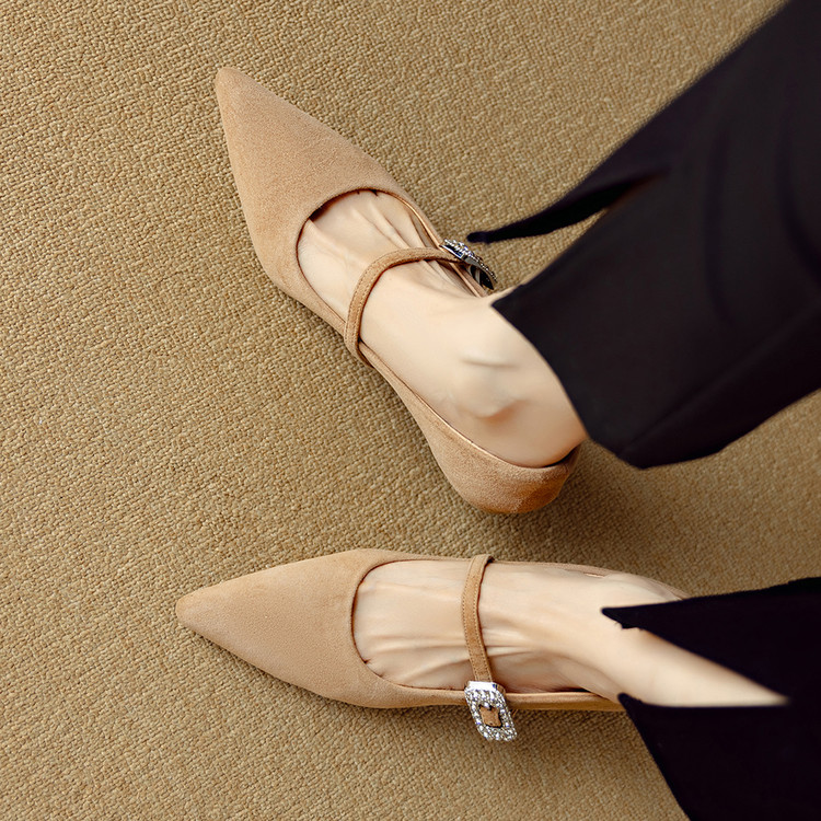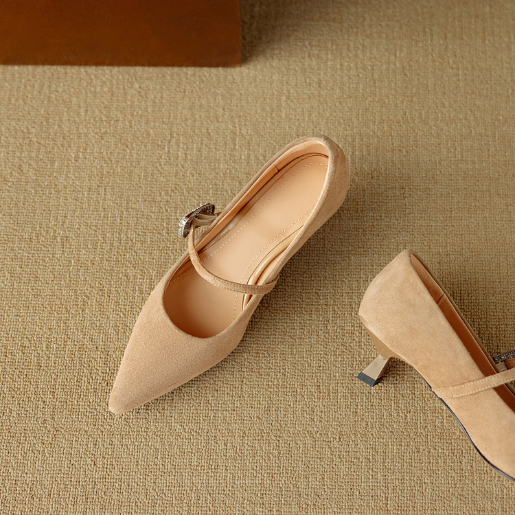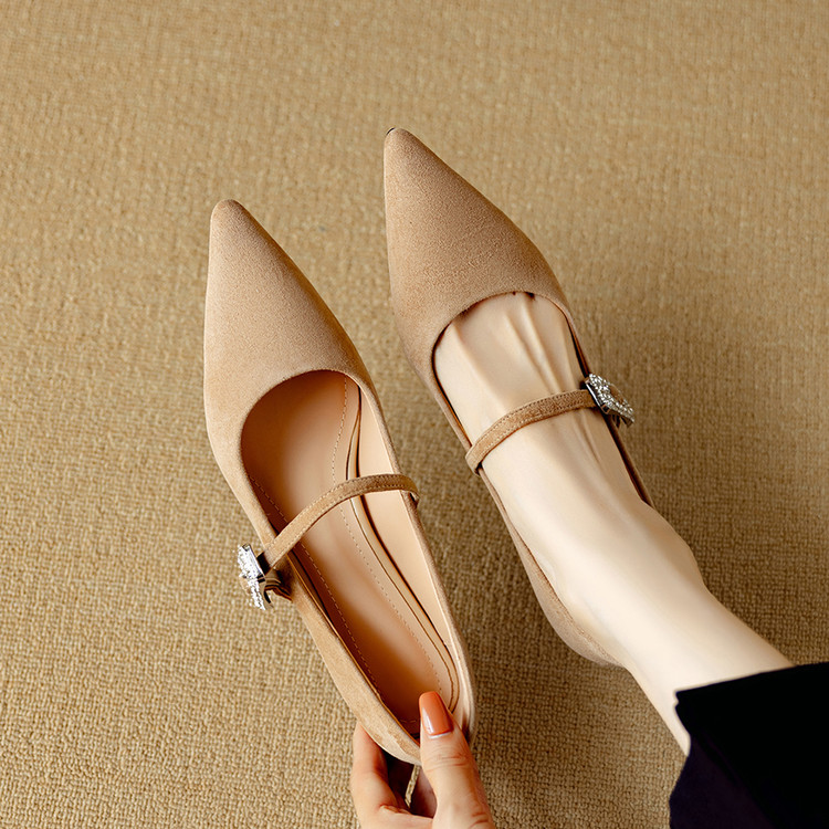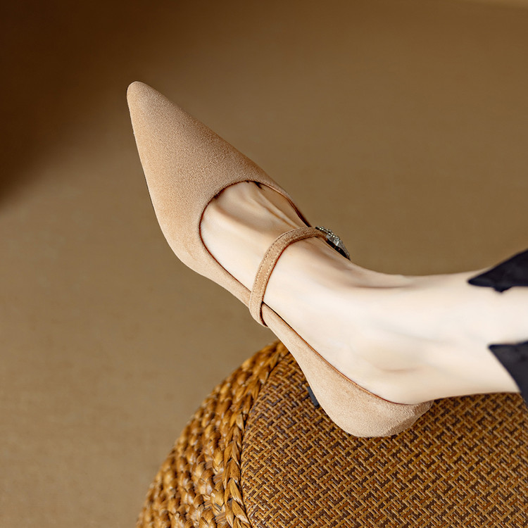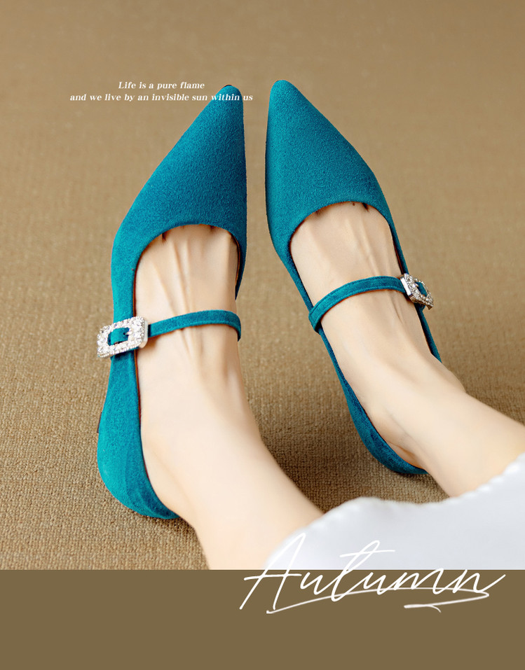 【预售5天】羊反绒!蓝色显白小高跟鞋新款尖头浅口法式一字带中跟单鞋女DB&M6539