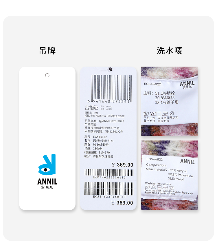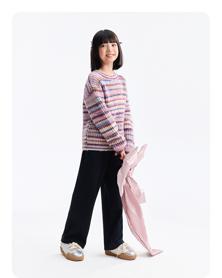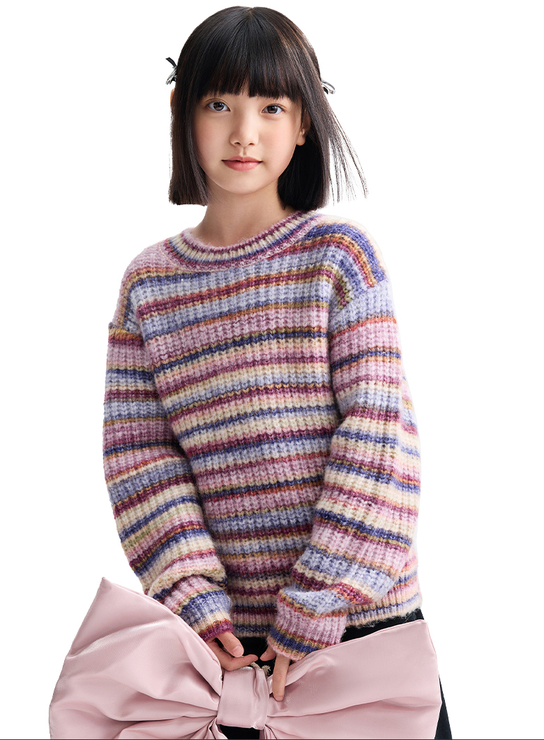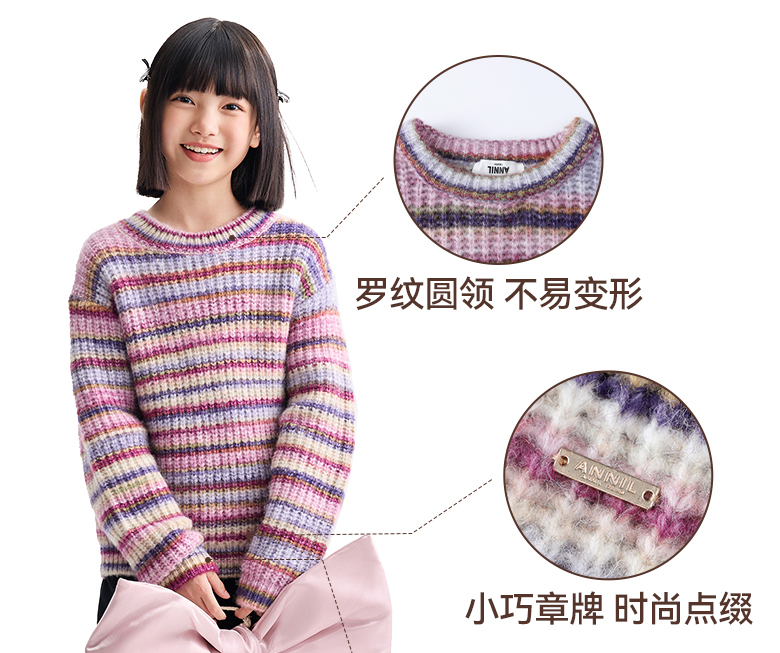 女童圆领长袖针织衫冬季新款安奈儿童装EG544622