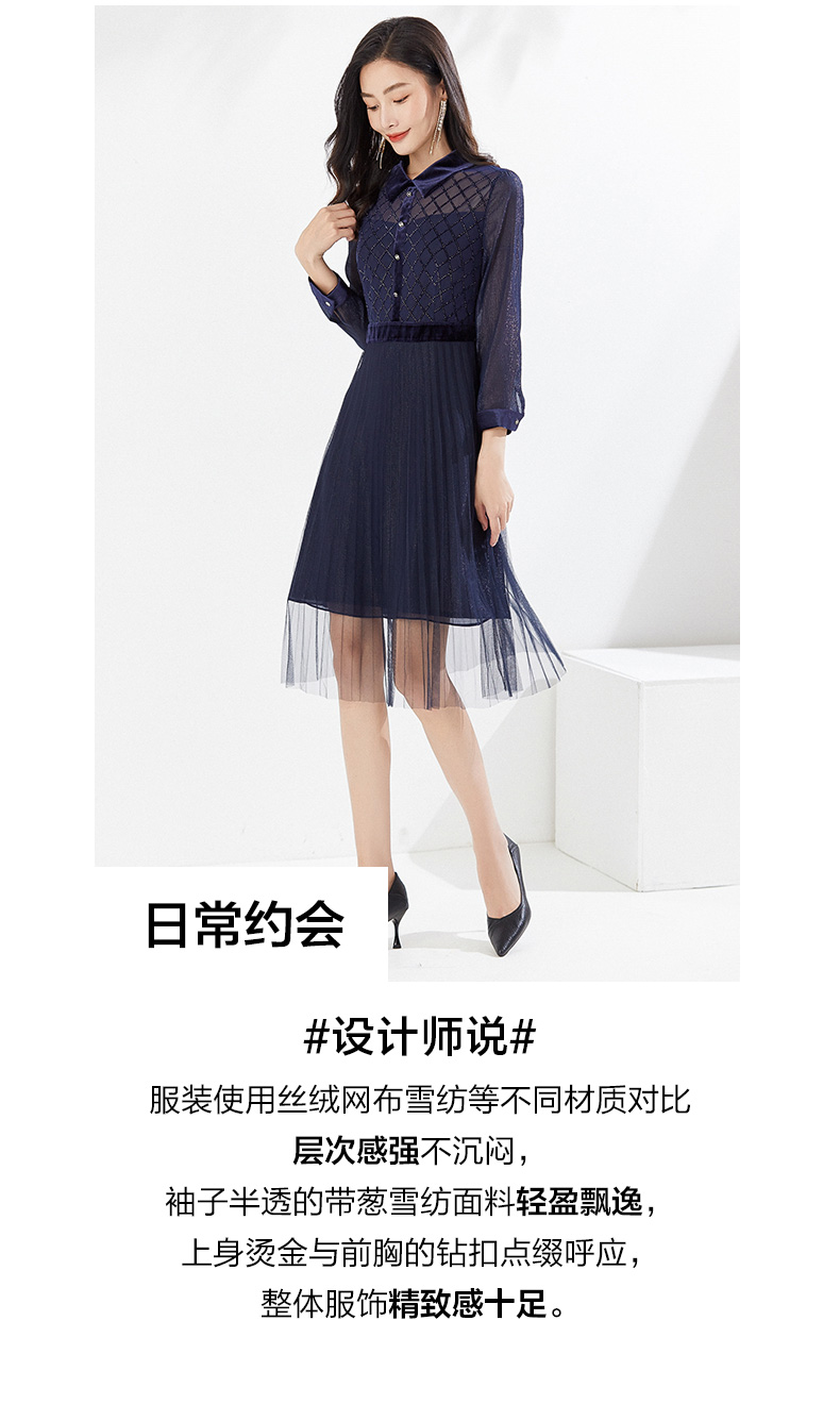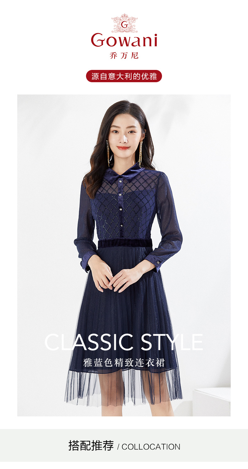 乔万尼新品连衣裙高级感微透设计收腰显瘦EI4E663