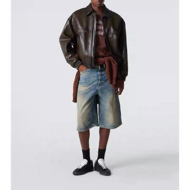 随后进行低温石磨水洗 利用磨料与面料的轻微摩擦 使喷色层表面形成均匀的做旧质感 同时保留面料纤维的柔软度 最终呈现出自然且高级的复古 感
