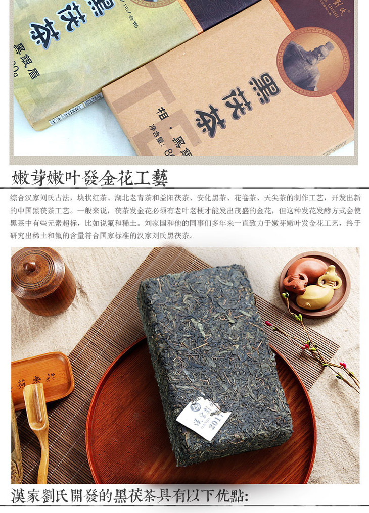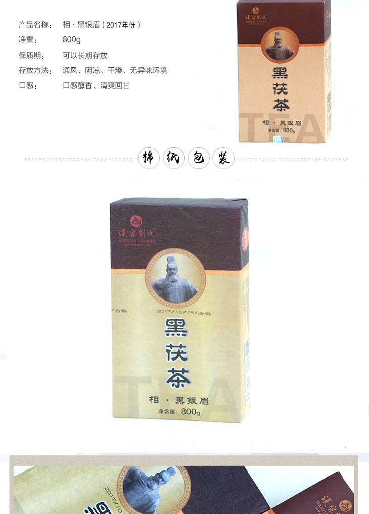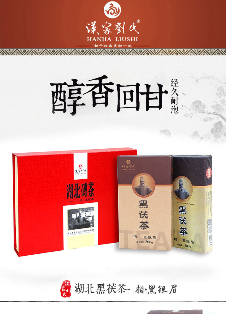 汉家刘氏 黑茶 茶叶 2017相黑银眉 金花黑茯砖茶 礼品礼盒装 800g