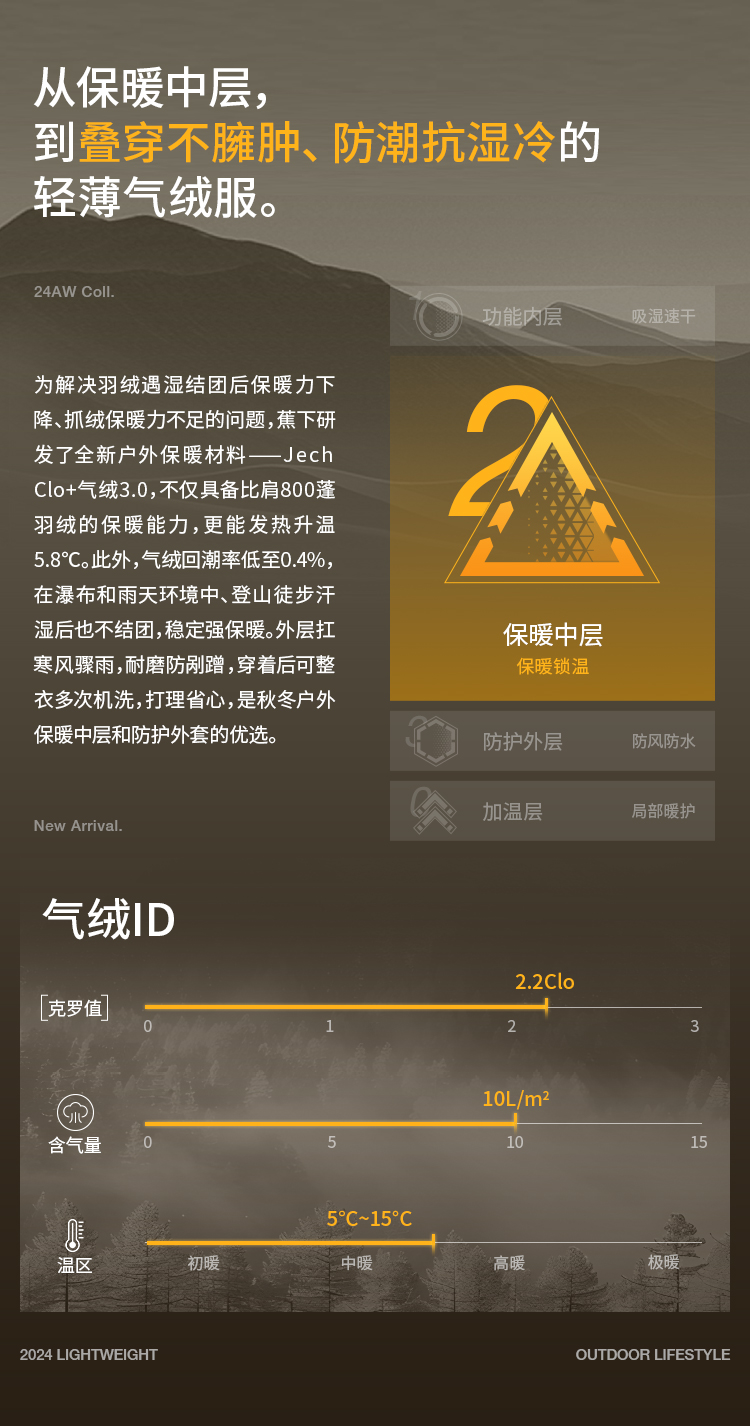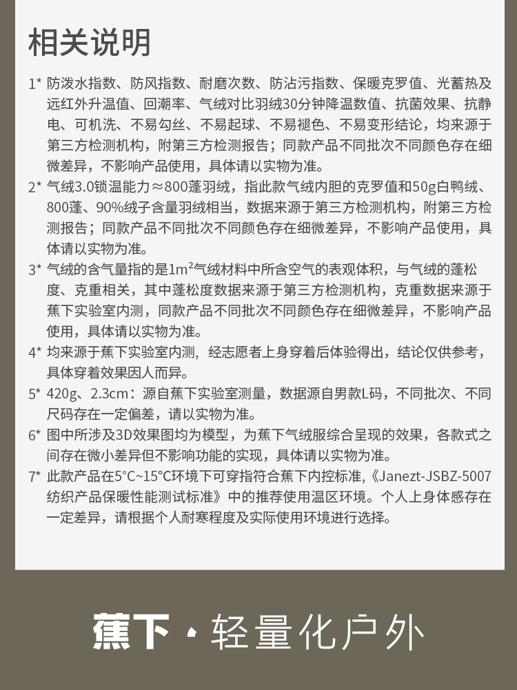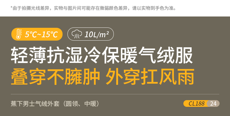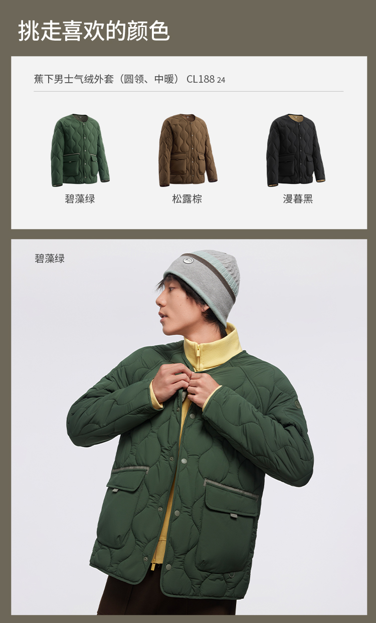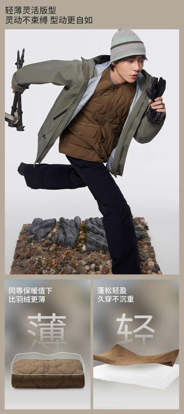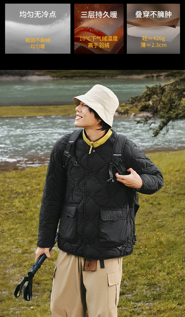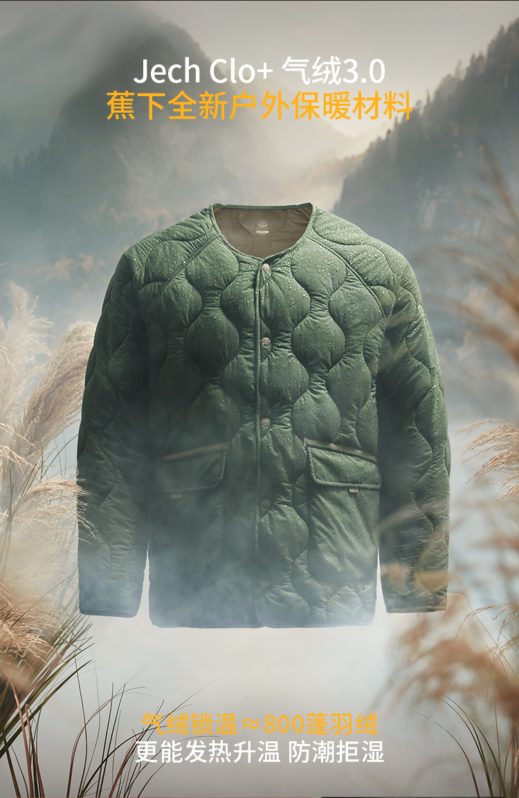 蕉下男士轻薄无领气绒服CL18824防风防水保暖似羽绒棉衣登山外套