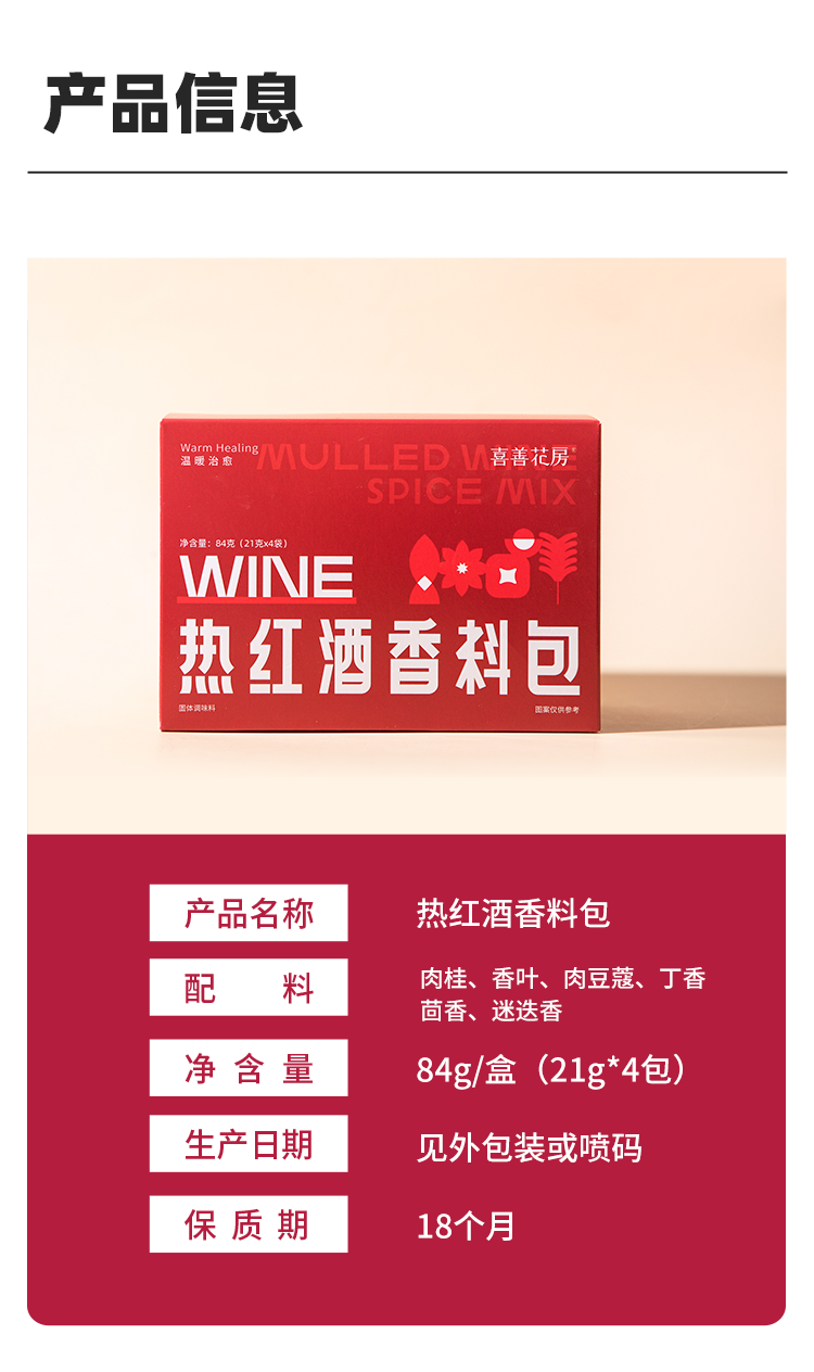 温暖醇香 | 喜善花房 热红酒料包84g/盒