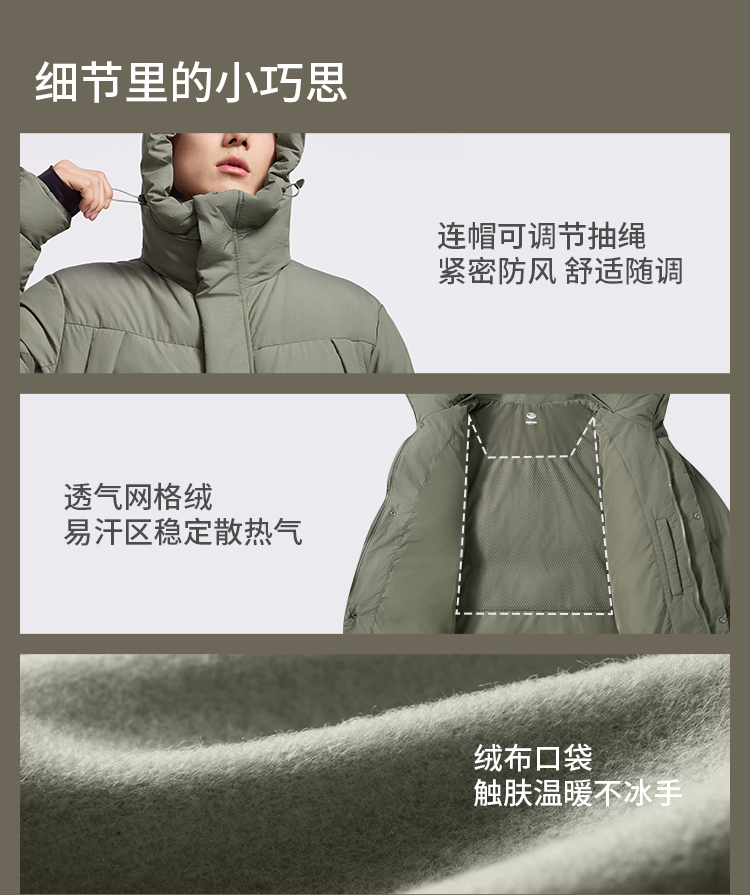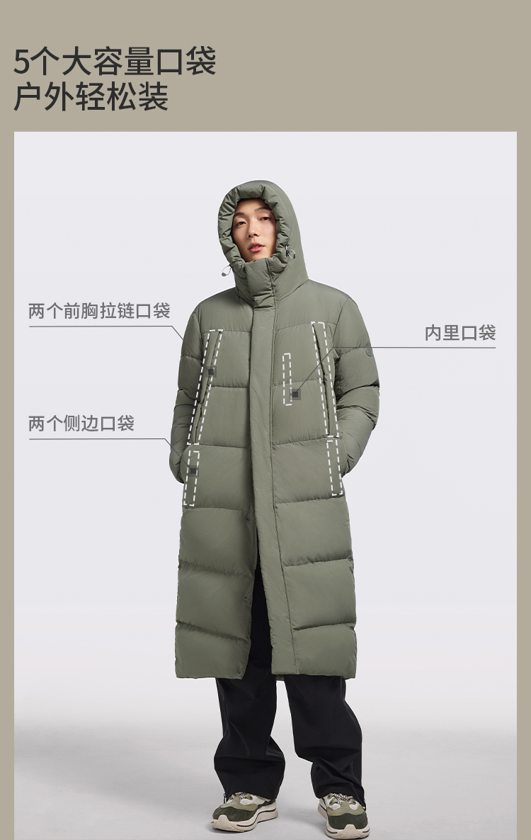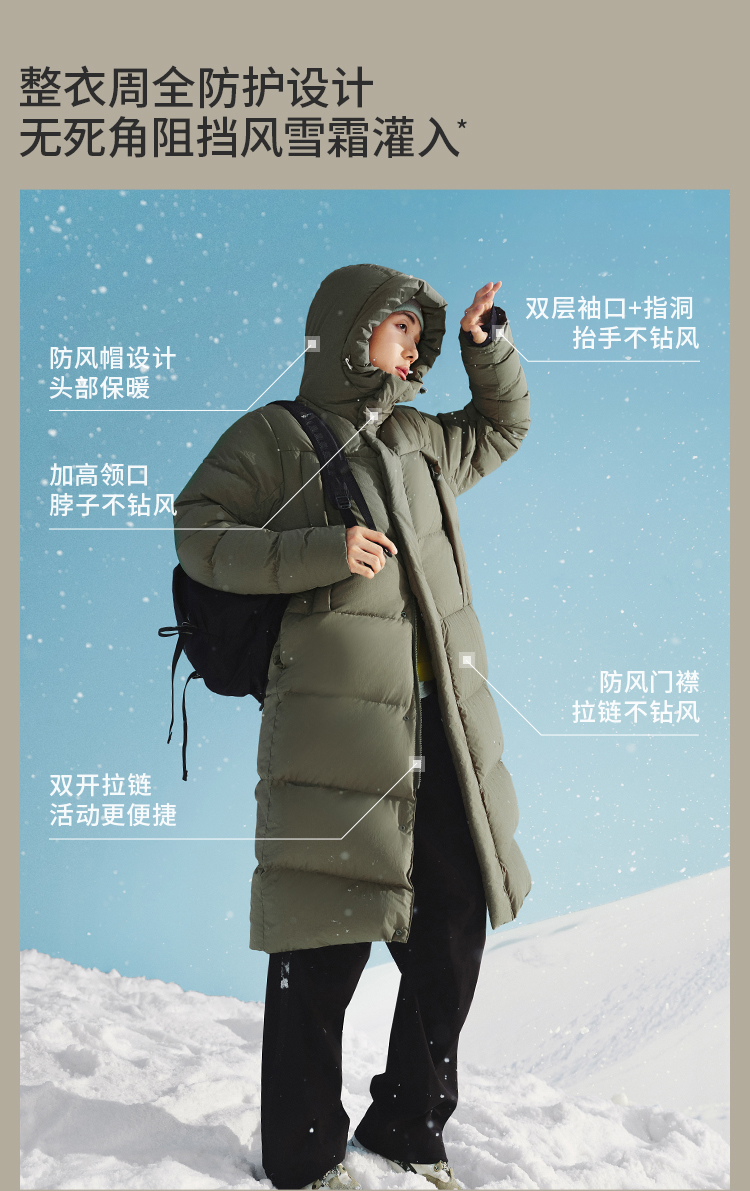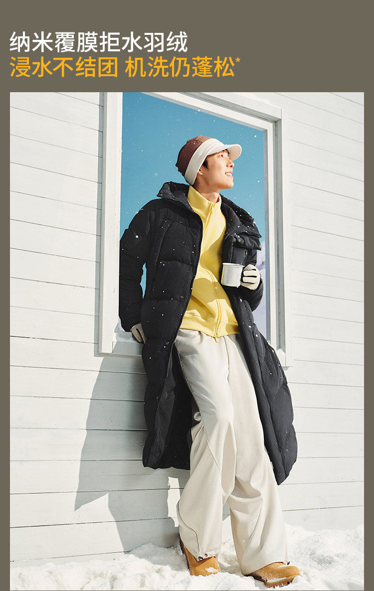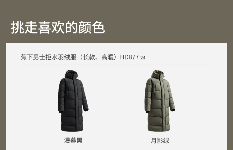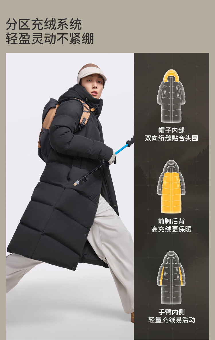 蕉下男士长款拒水羽绒服蓬松冬保暖户外防寒防雪外套可机洗羽绒衣HD87724