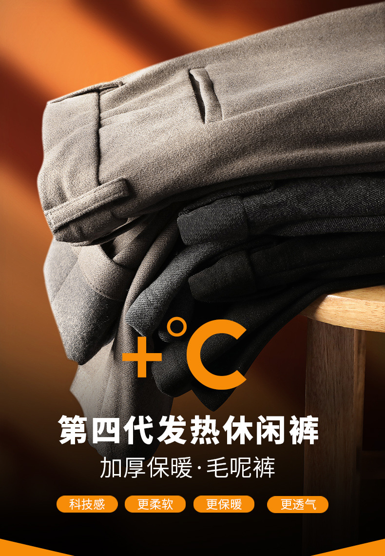 丁摩 秋冬保暖毛呢西裤男轻商务修身休闲长裤磨毛加厚直筒小脚男裤4ZF-A102