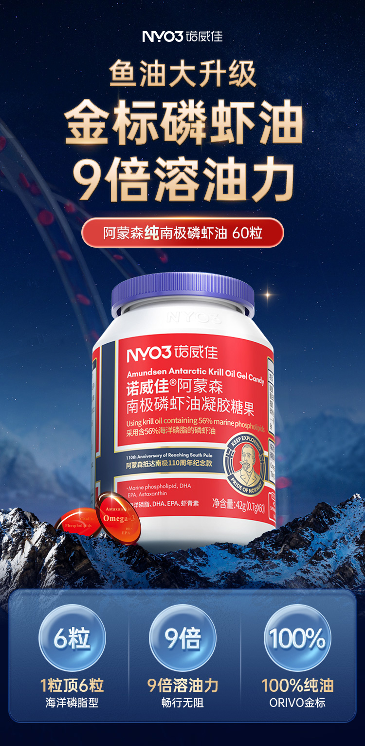 诺威佳 阿蒙森南极磷虾油凝胶糖果42g(0.7g*60粒/瓶)