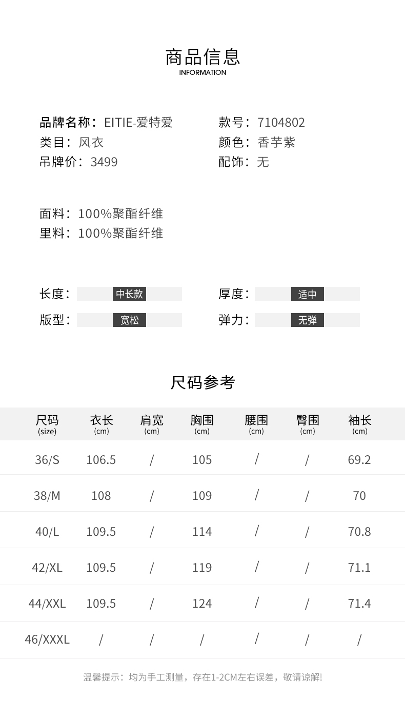 EITIE爱特爱秋季新款束腰显瘦修身百搭温柔风衣7104802