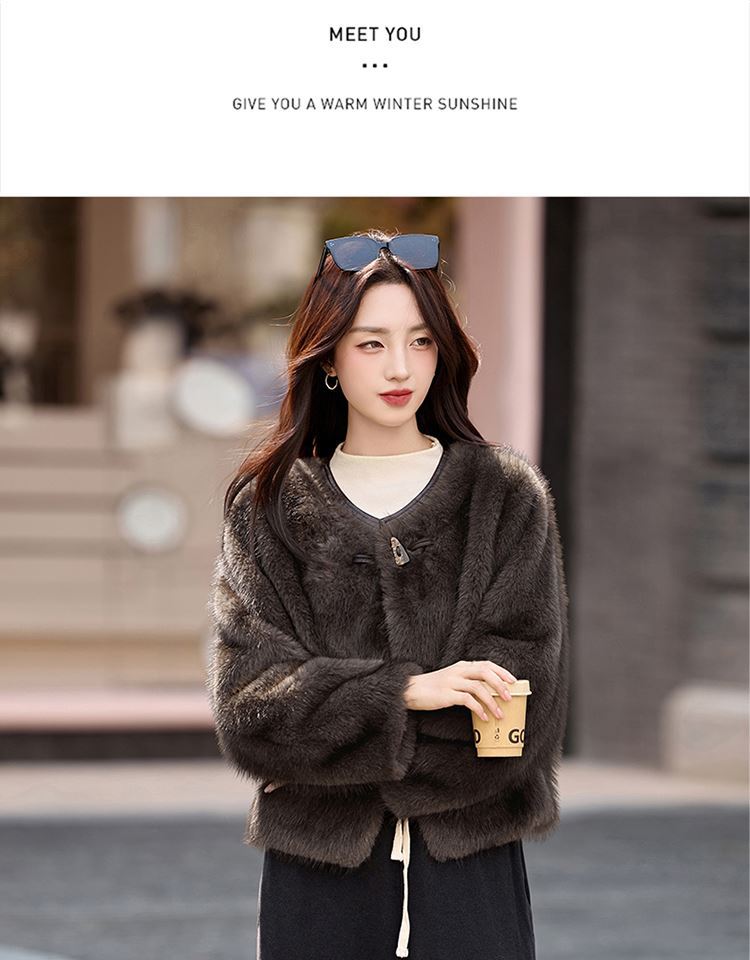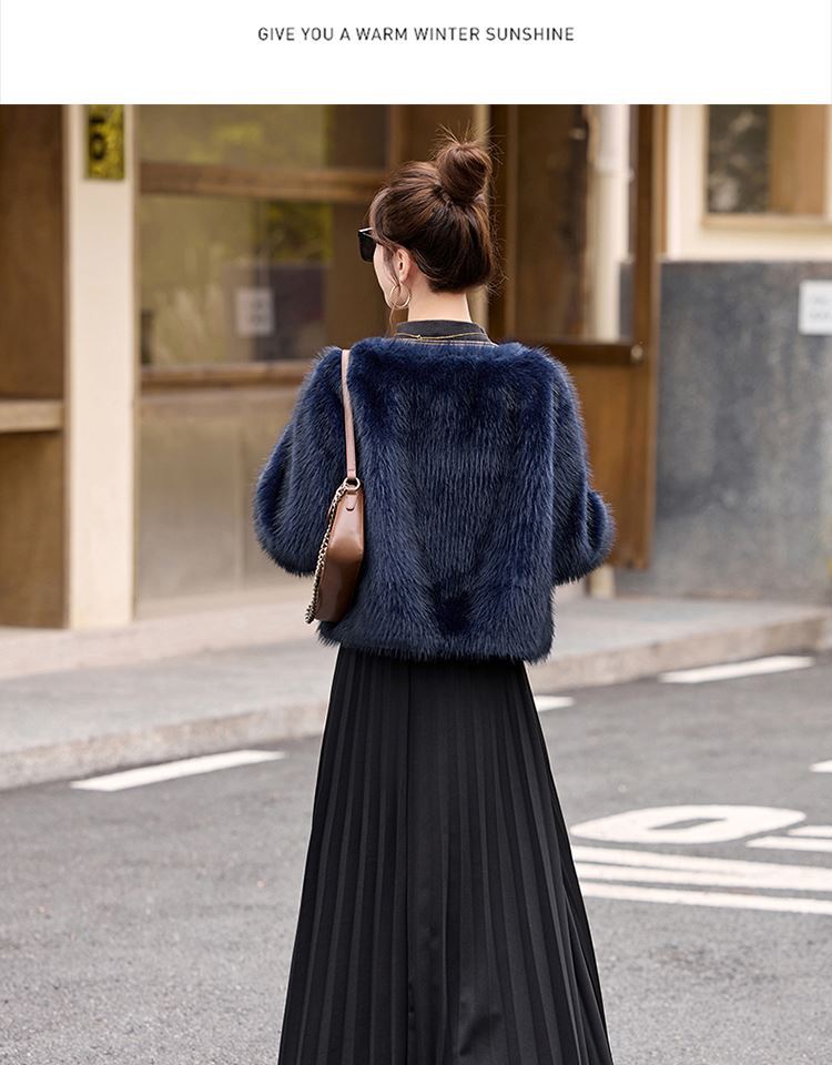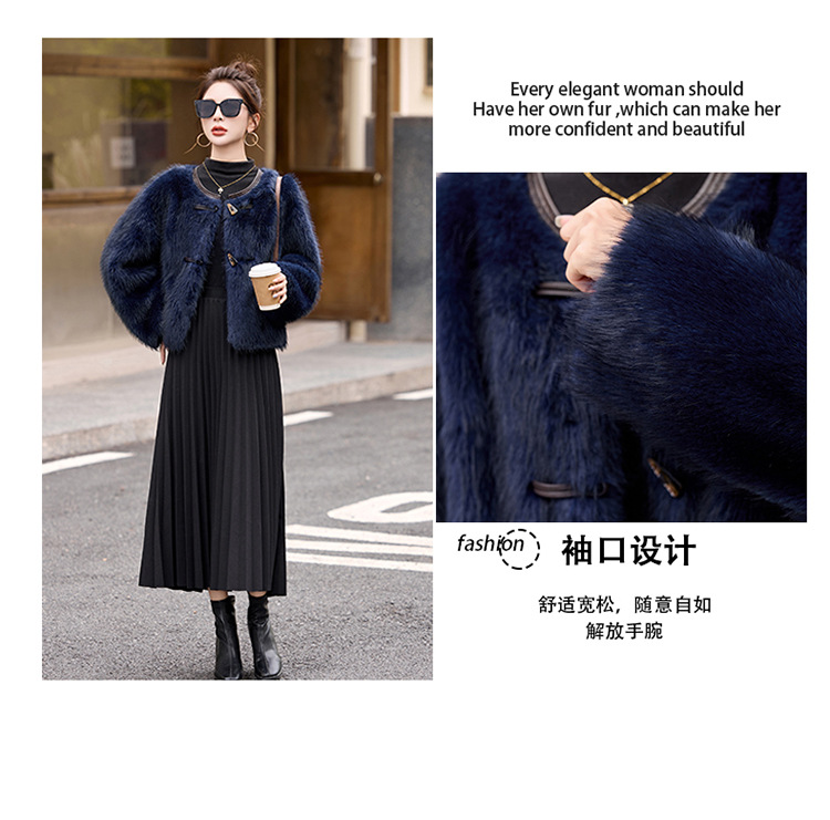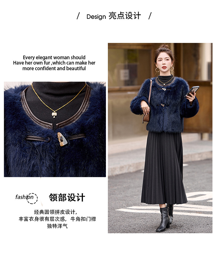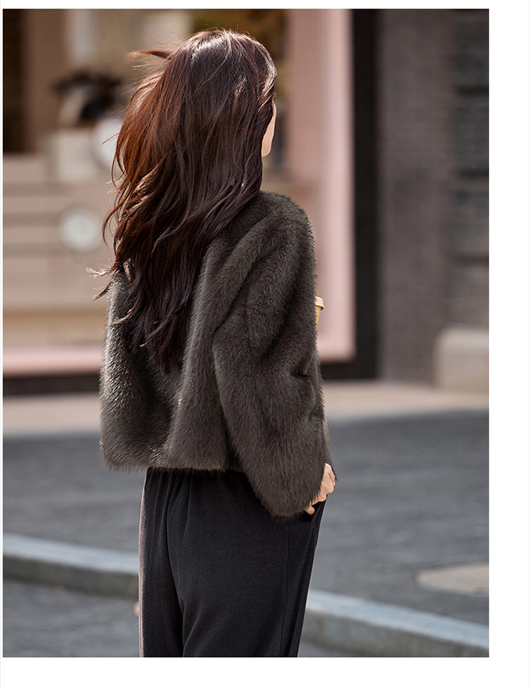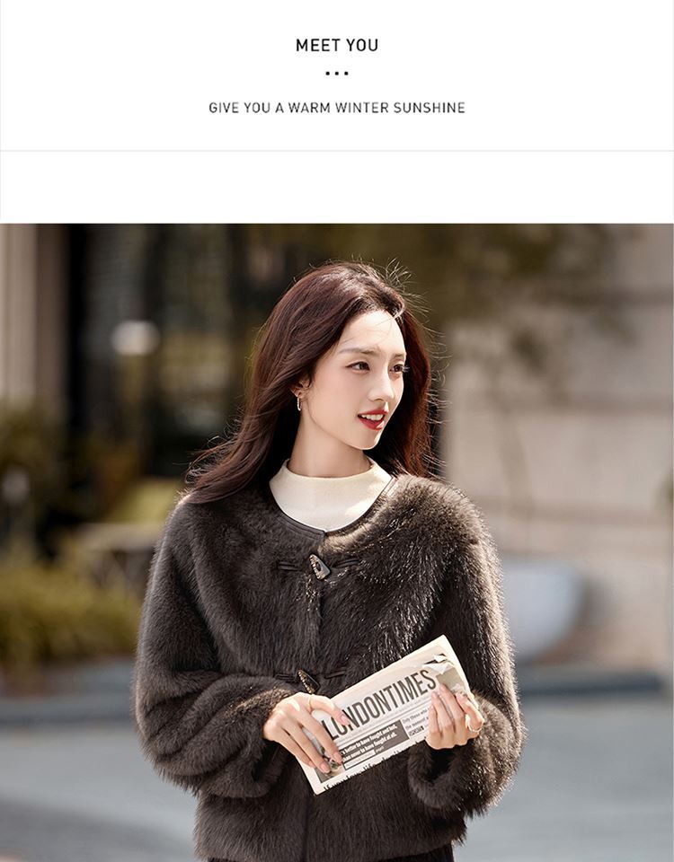 皮毛一体外套小个子洋气,显瘦皮草短款加厚毛毛上衣HR-5519