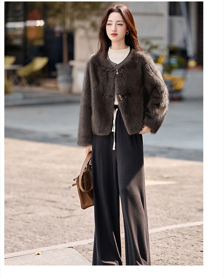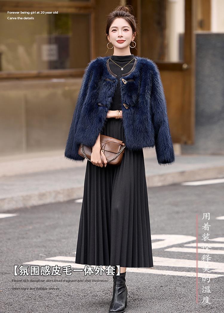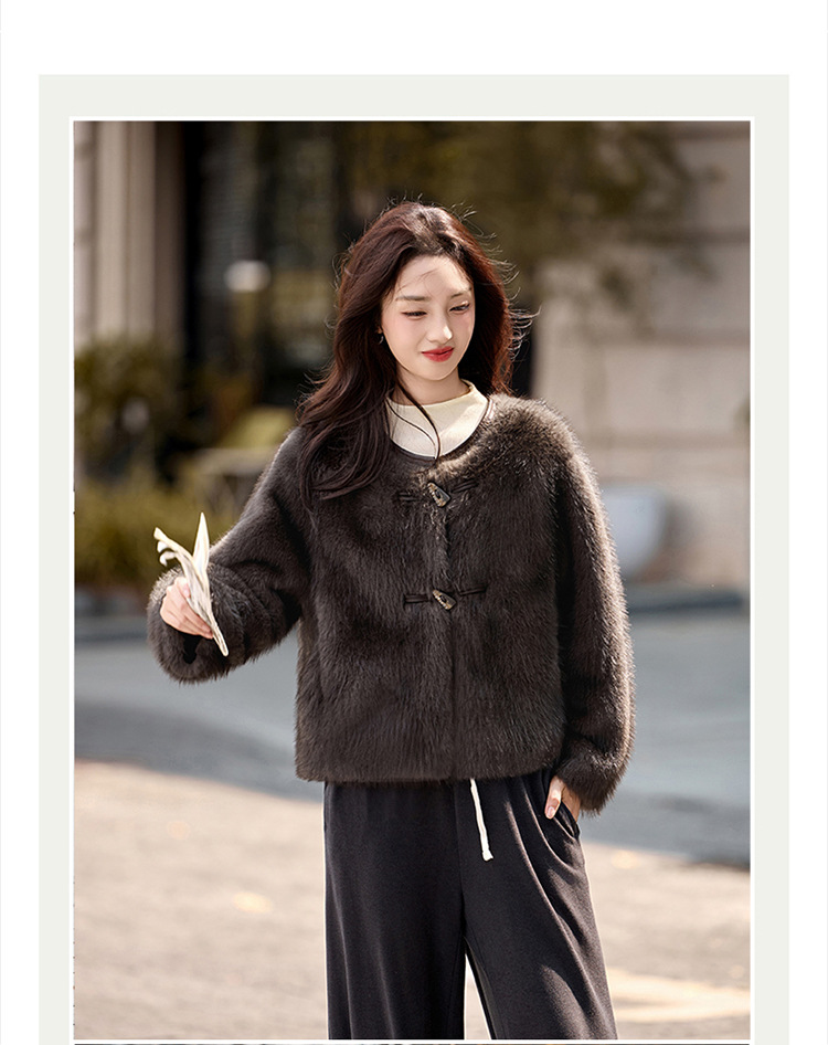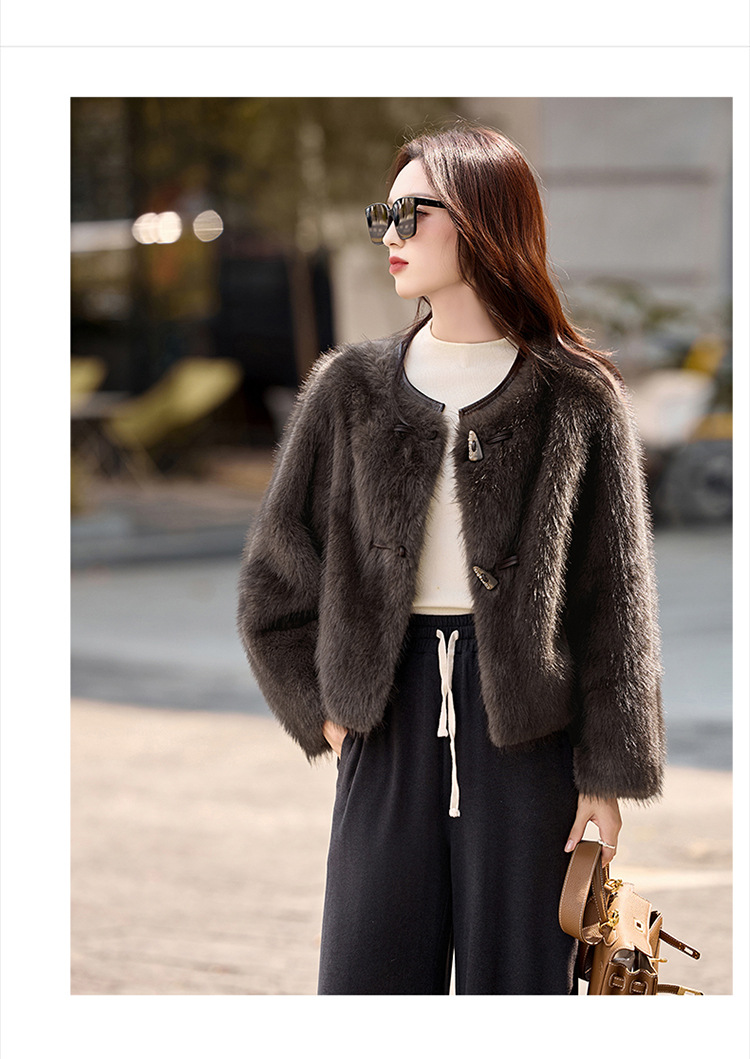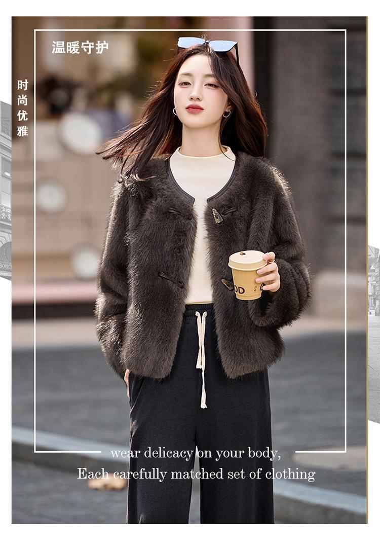 皮毛一体外套小个子洋气,显瘦皮草短款加厚毛毛上衣HR-5519