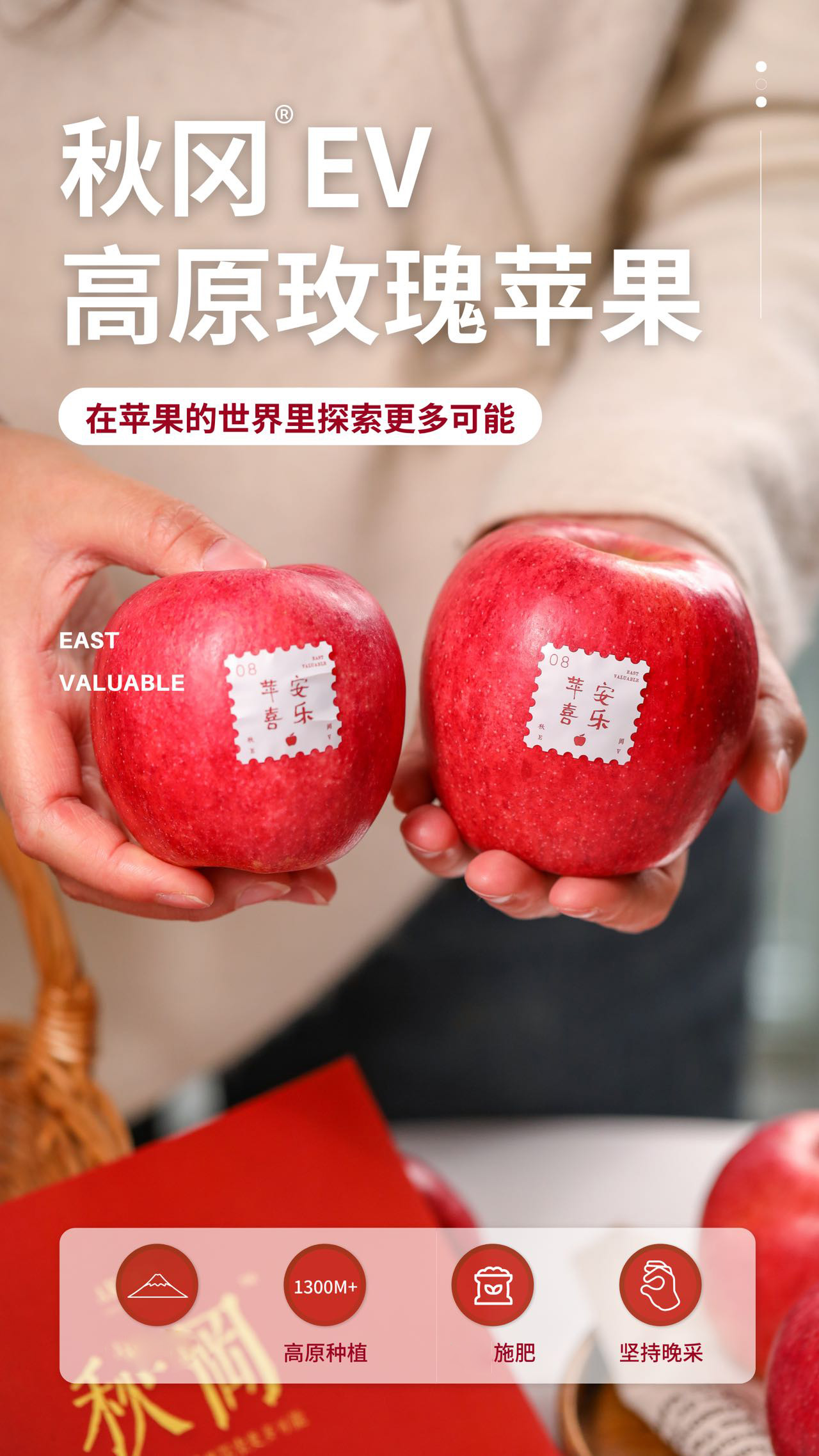 秋冈高原玫瑰 玫瑰花香 脆甜多汁 新疆瑞雪苹果