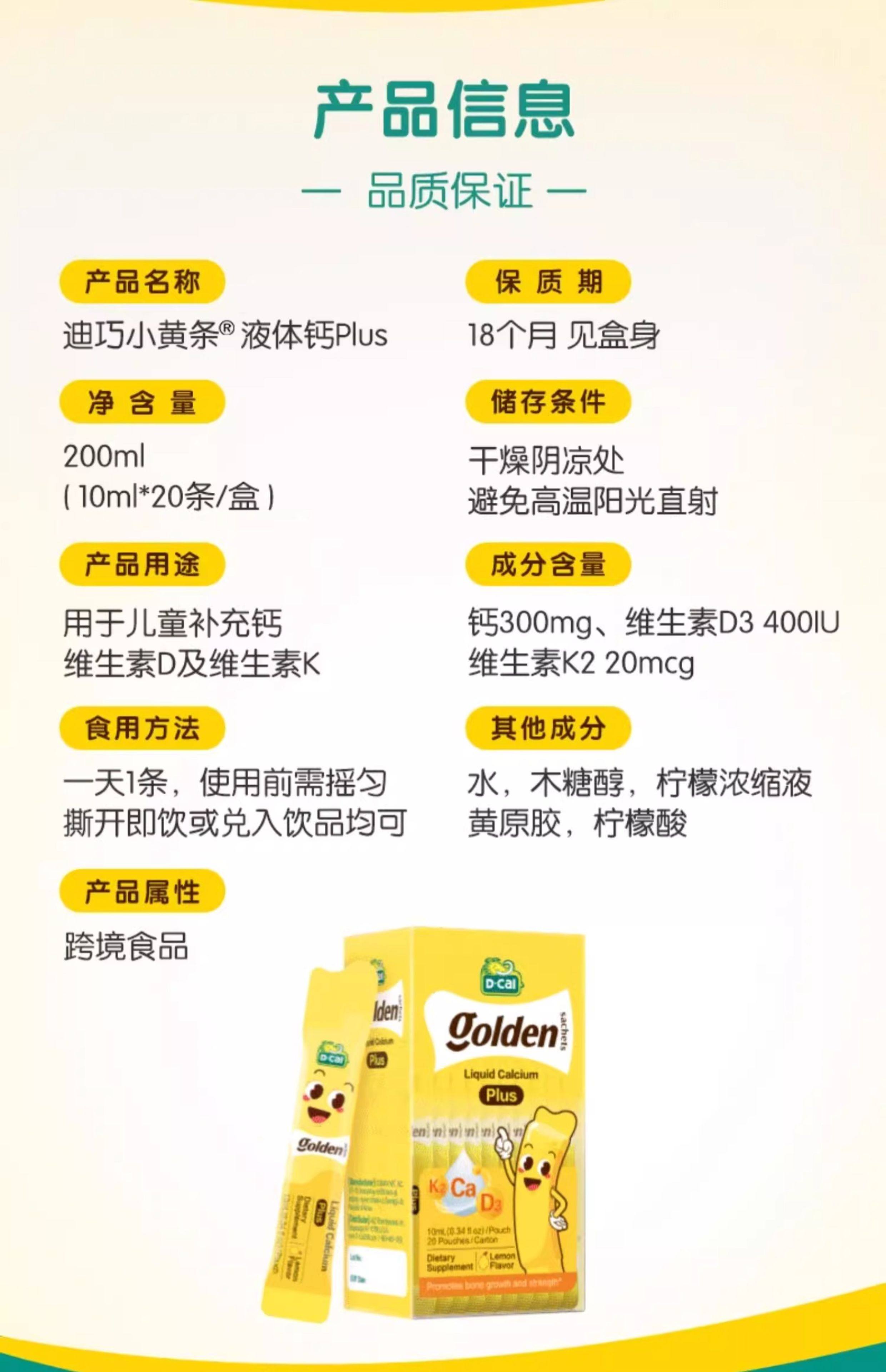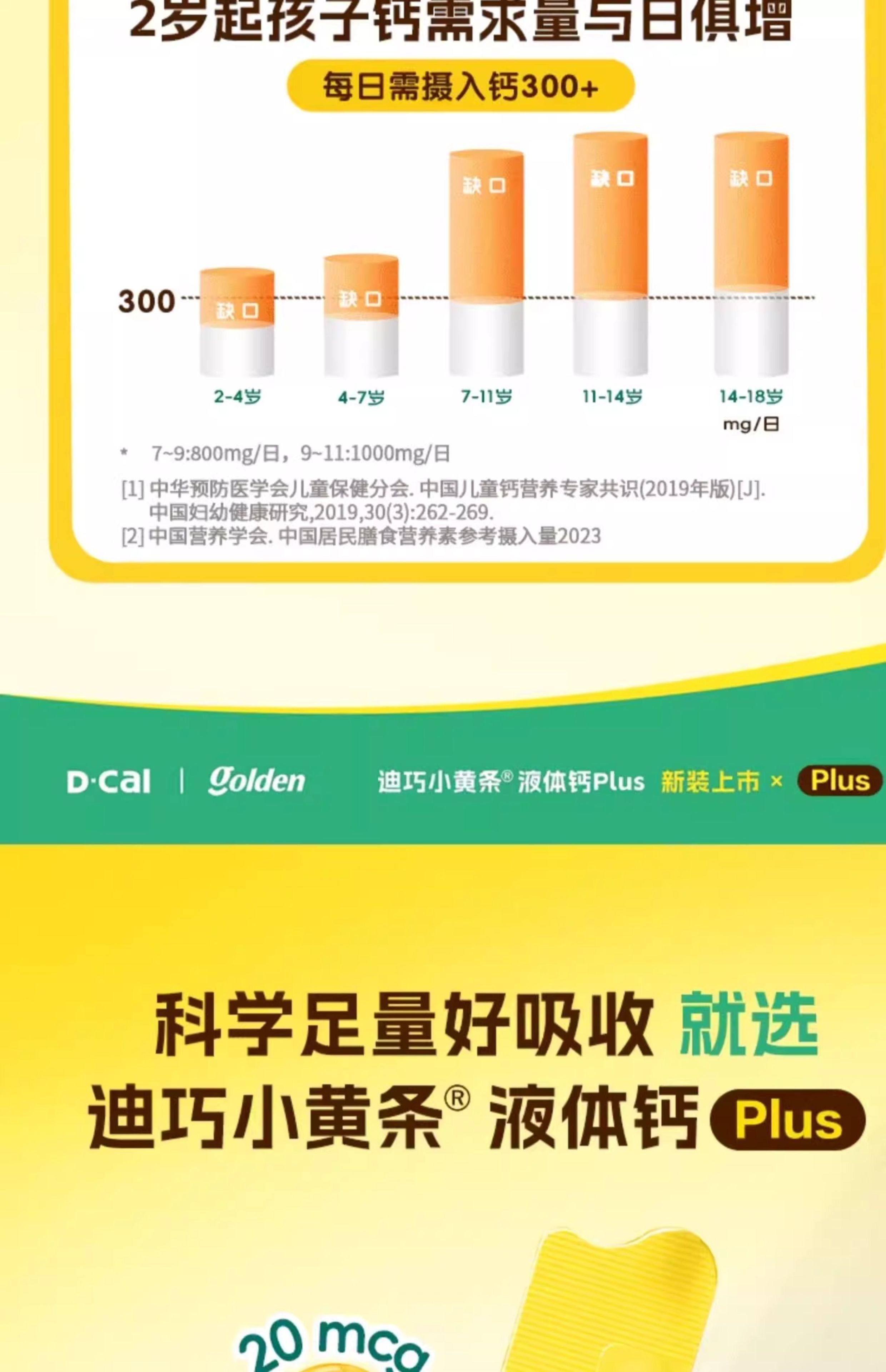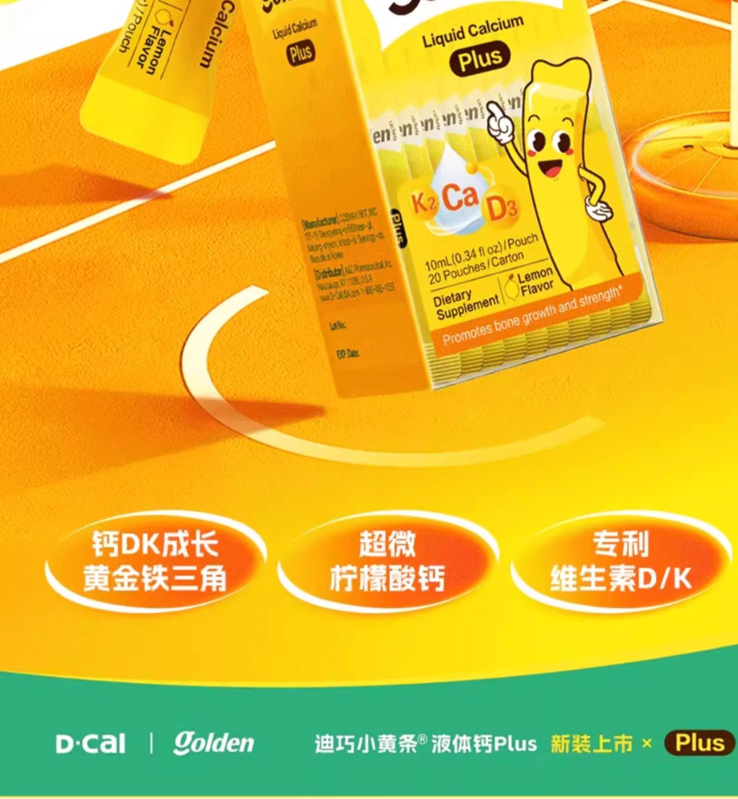 【跨境】迪巧(D-CAL)小黄条液体钙 PLUS 10ml*20条/盒 *2 (保健)(非组套)