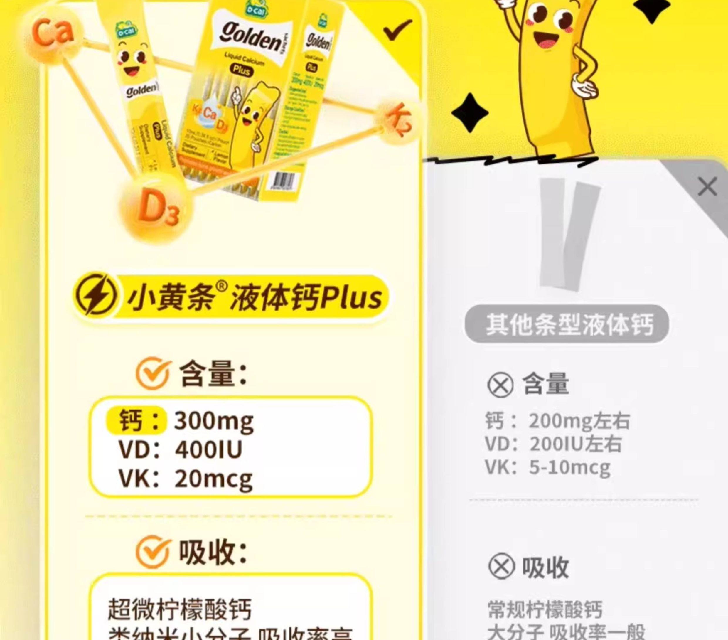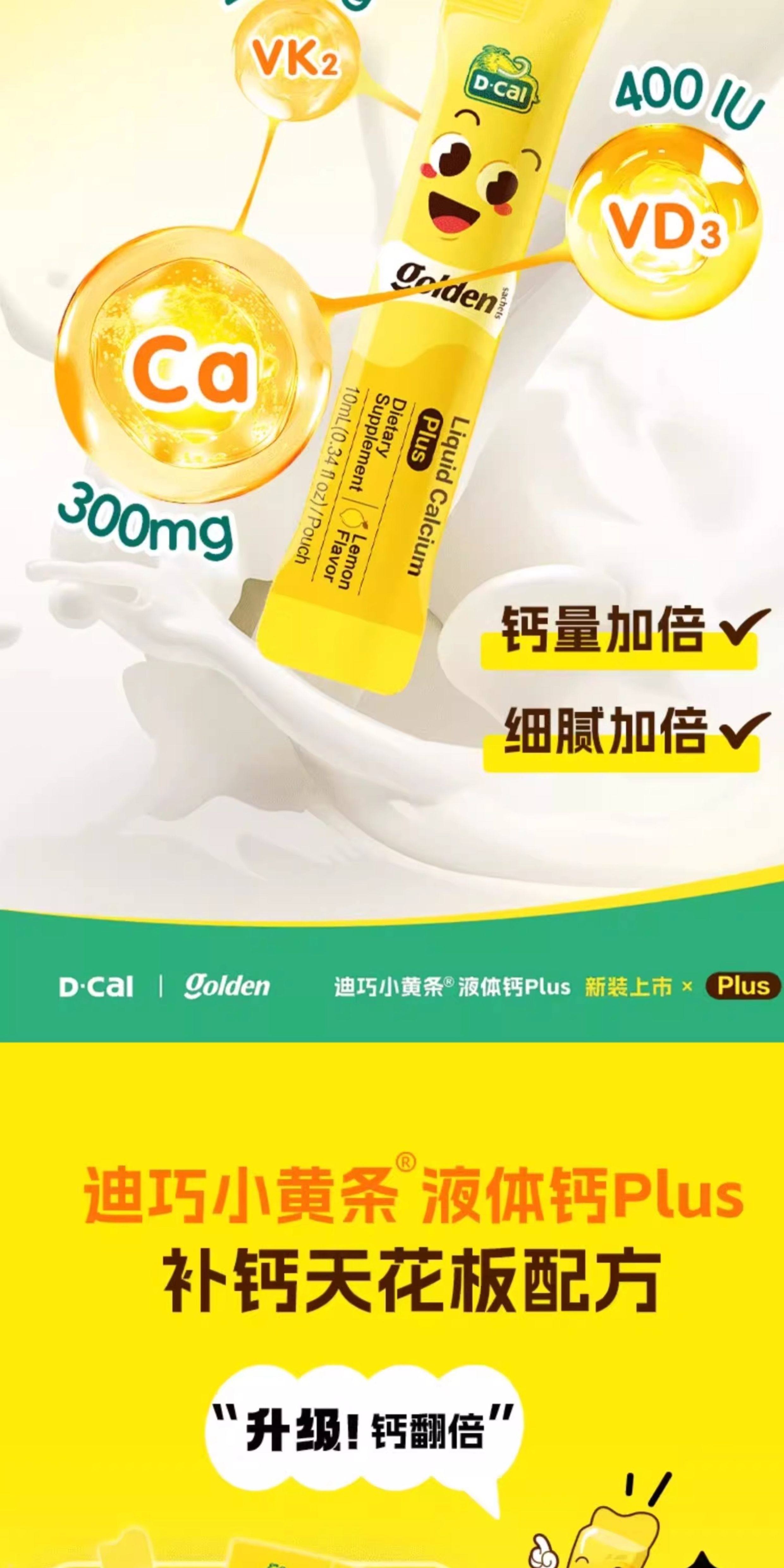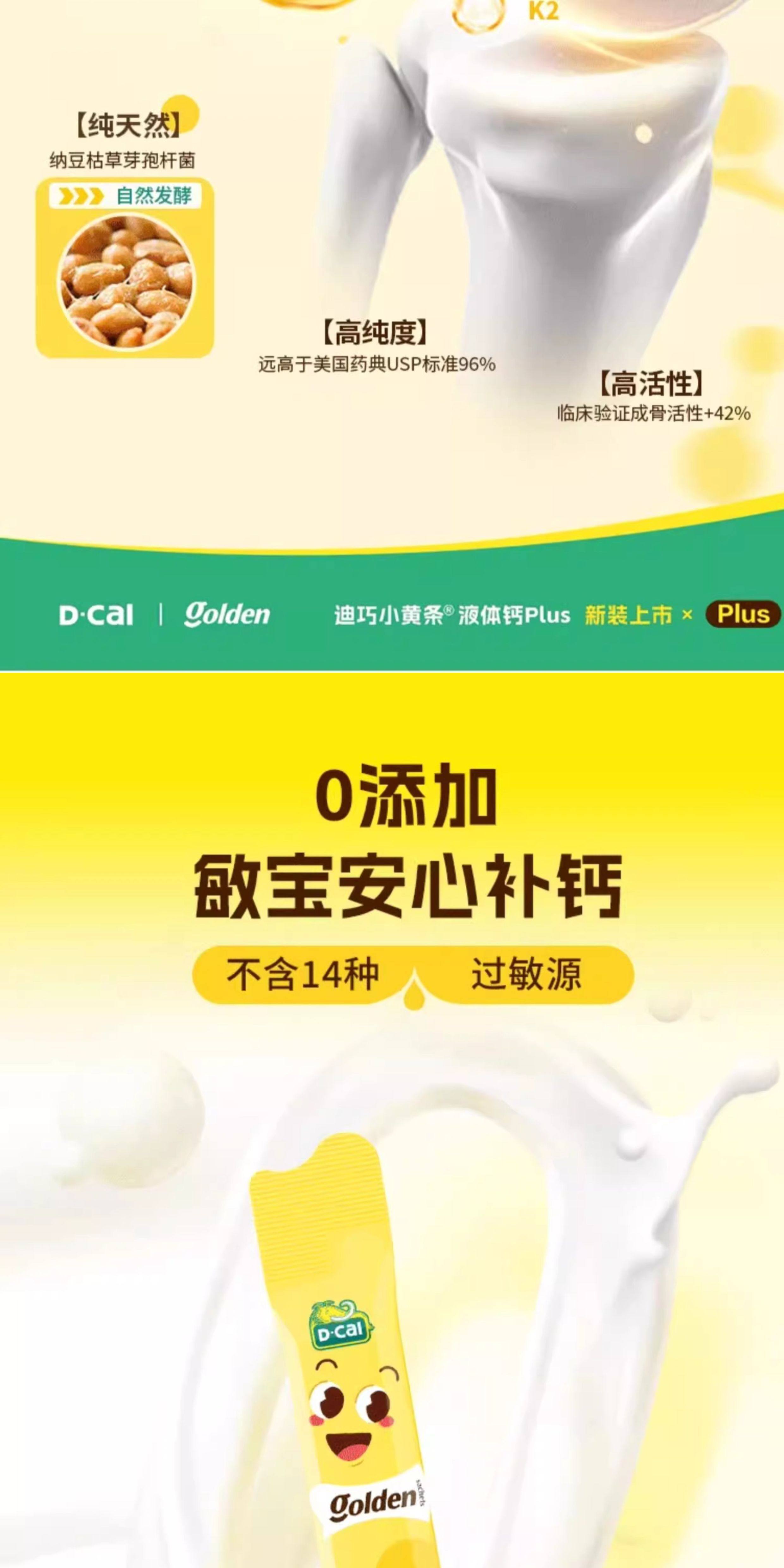 【跨境】迪巧(D-CAL)小黄条液体钙 PLUS 10ml*20条/盒 *2 (保健)(非组套)