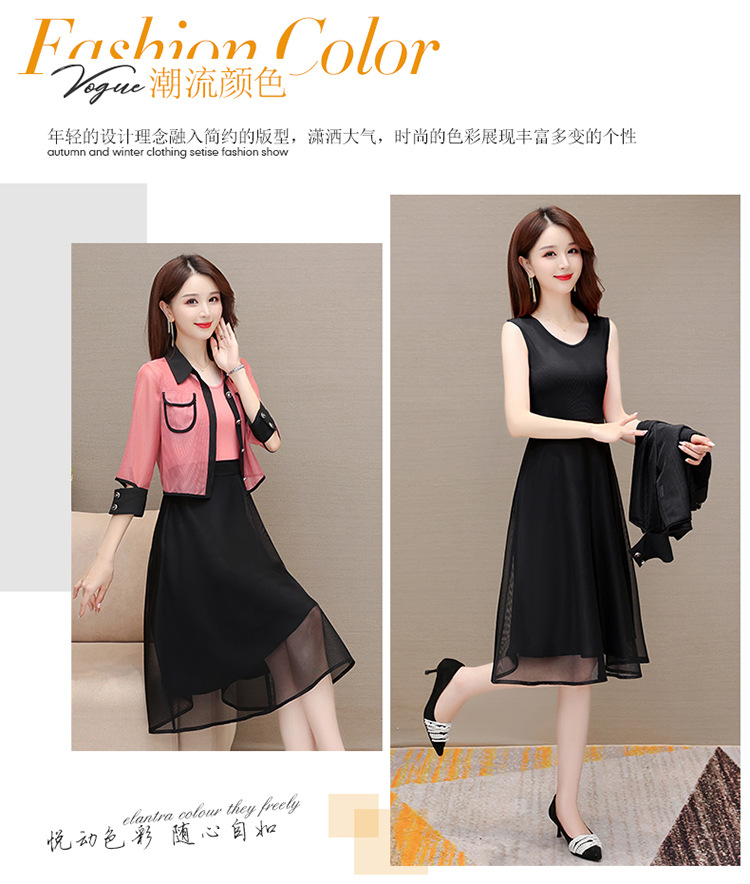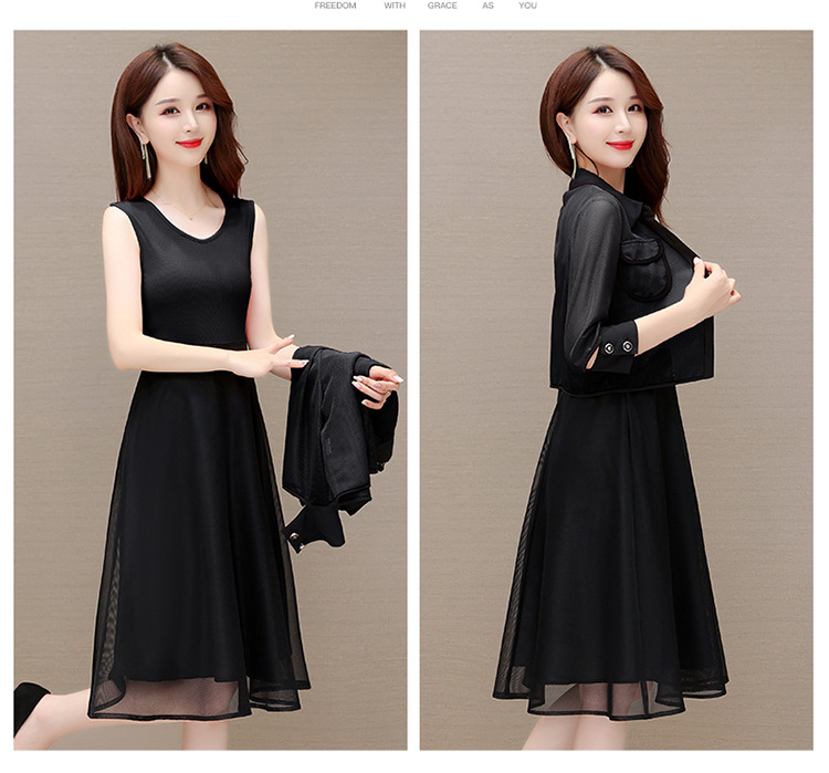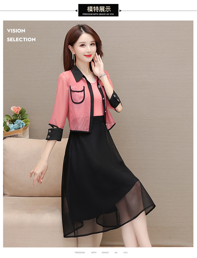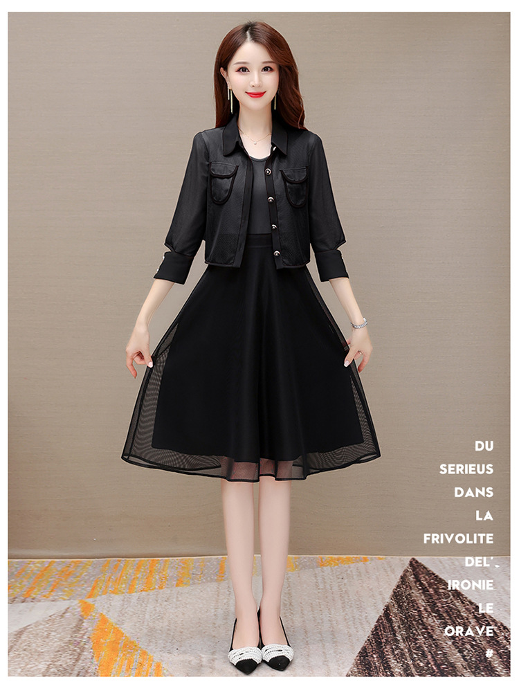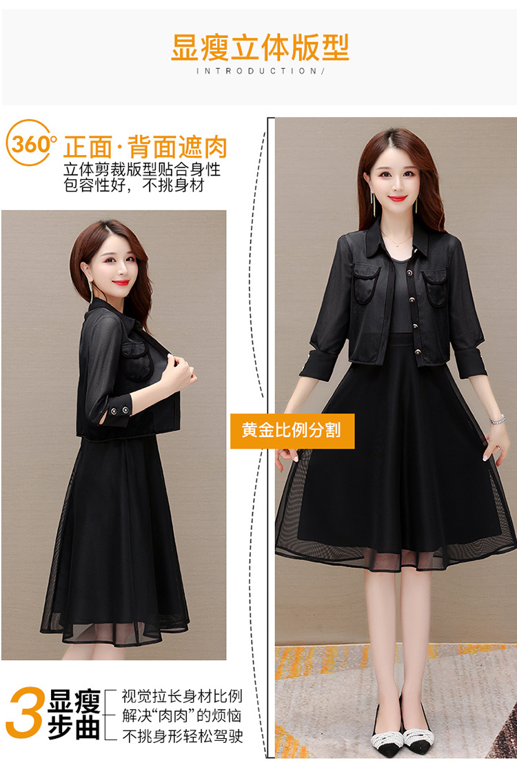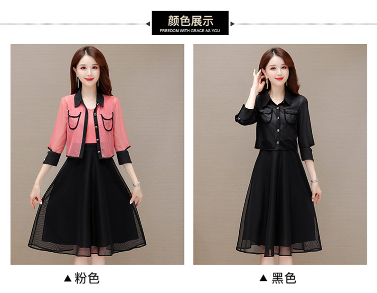 QYM M317-Y两件套裙中长款网纱A字裙小外套