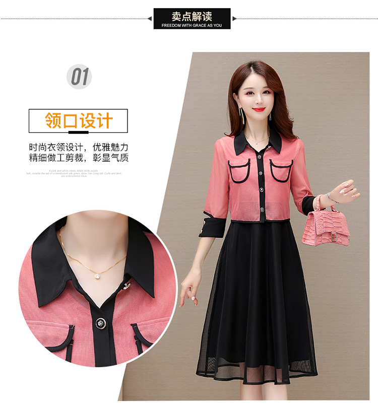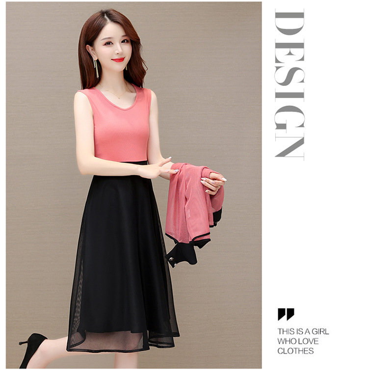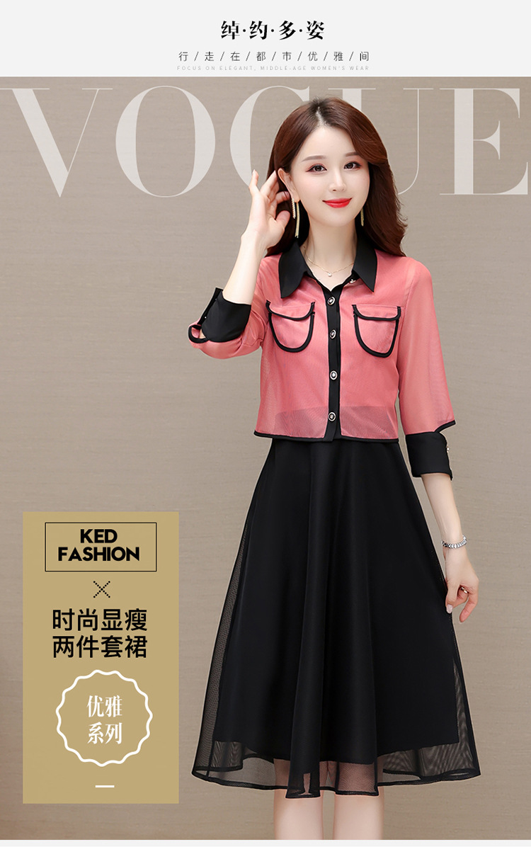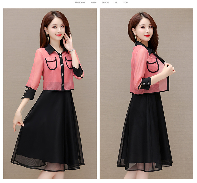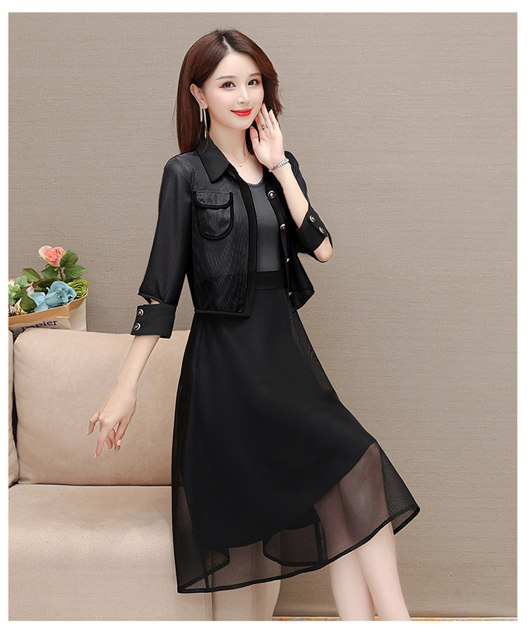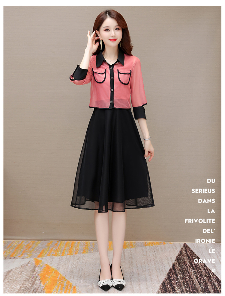 QYM M317-Y两件套裙中长款网纱A字裙小外套