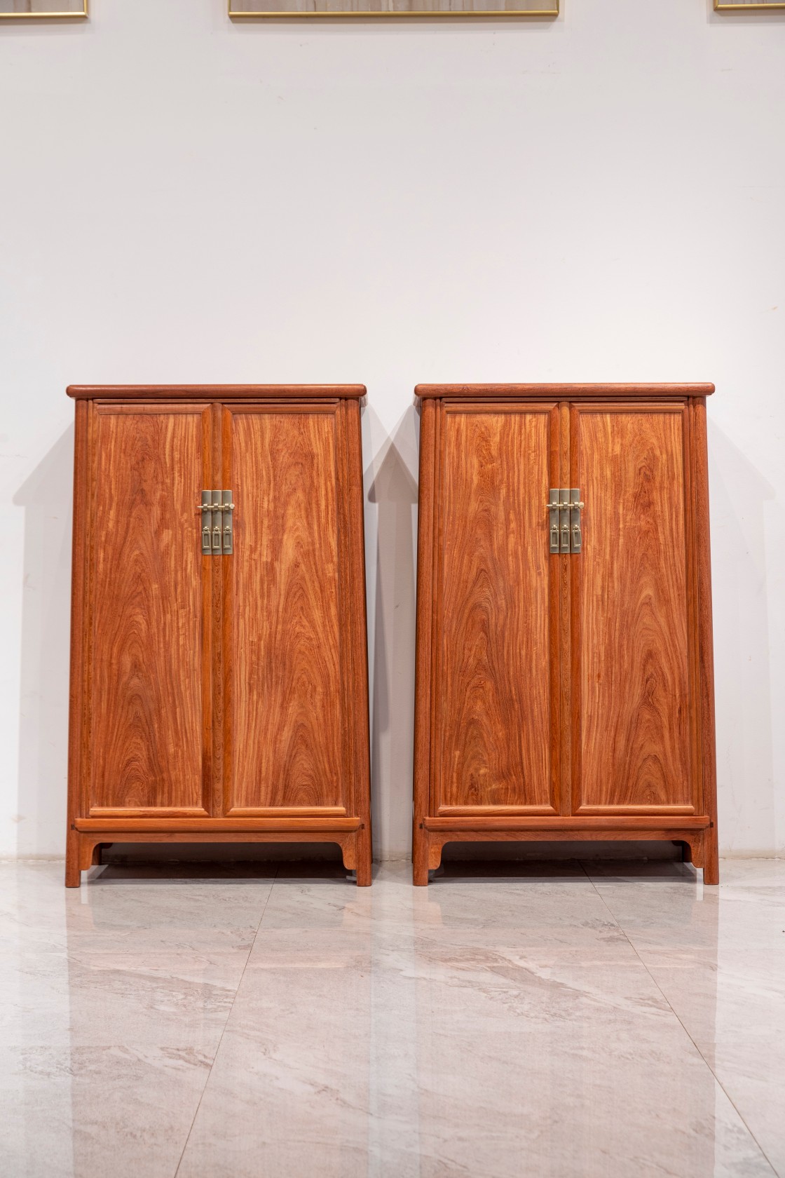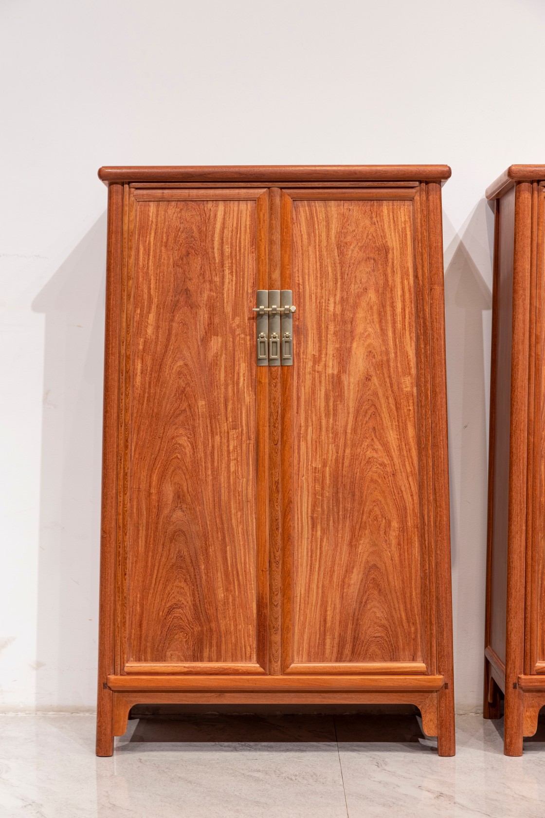圆角柜,明式家具经典器之一,上窄下宽,又称A字柜或大小头,工、材方中带圆,随方就圆,面板常见一木对开,乃传统家具爱好者及藏家之大爱。