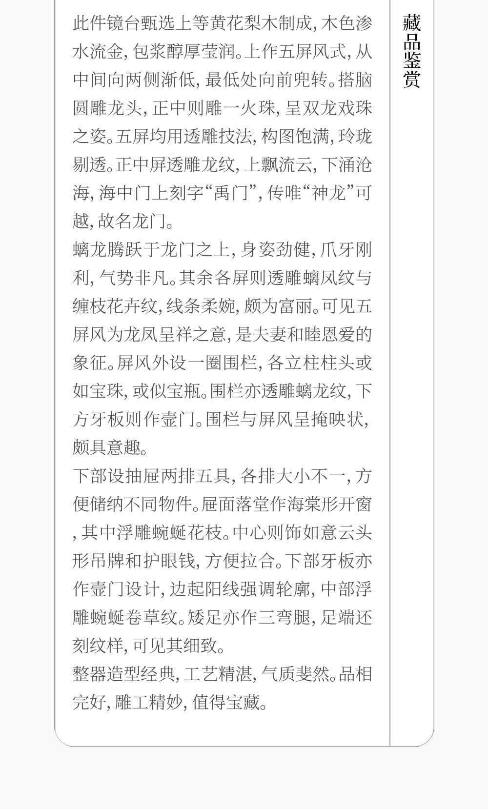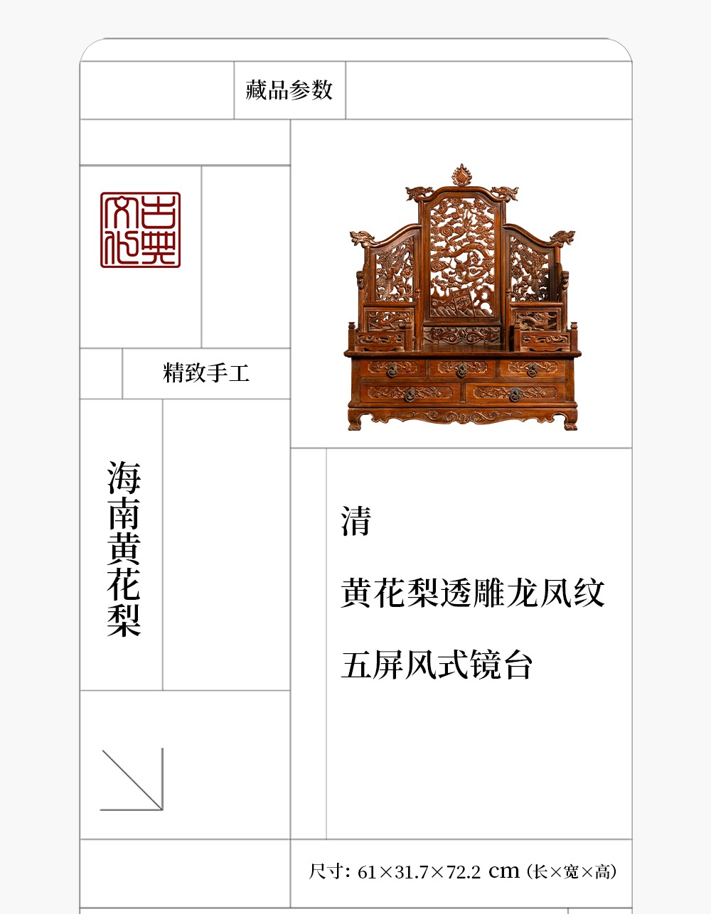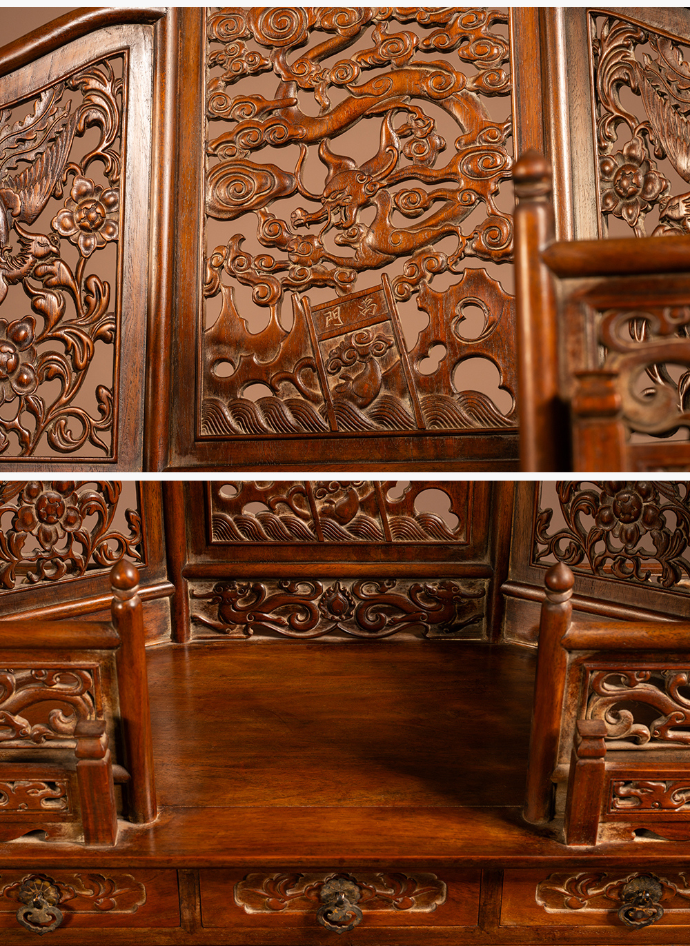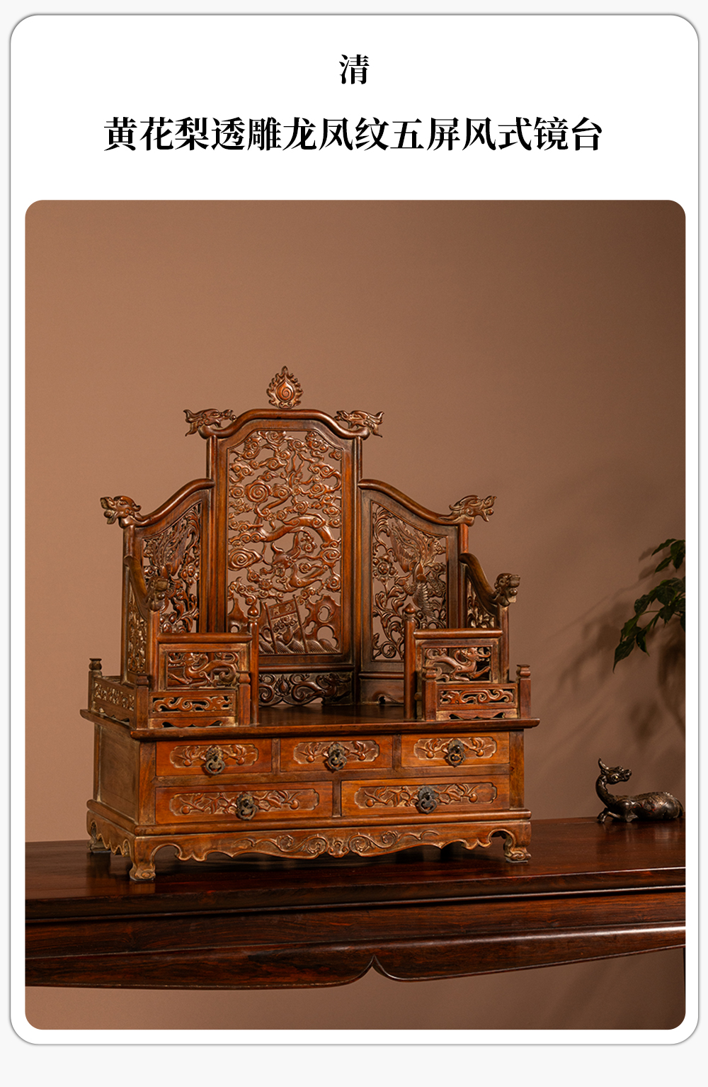 清 黄花梨透雕龙凤纹五屏风式镜台