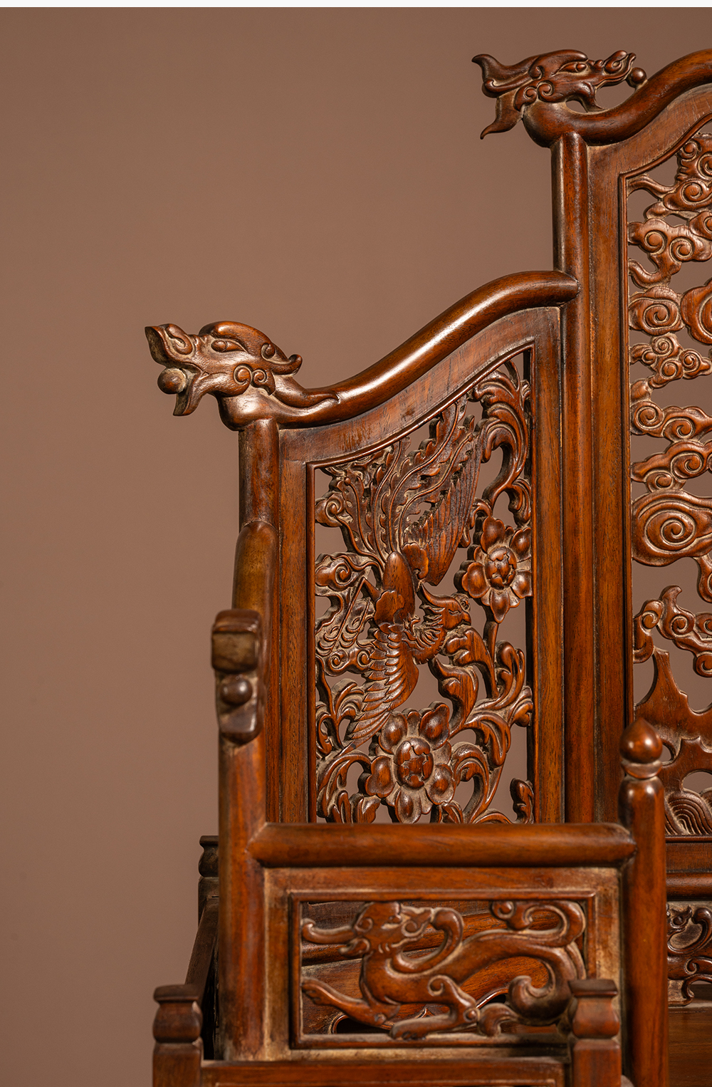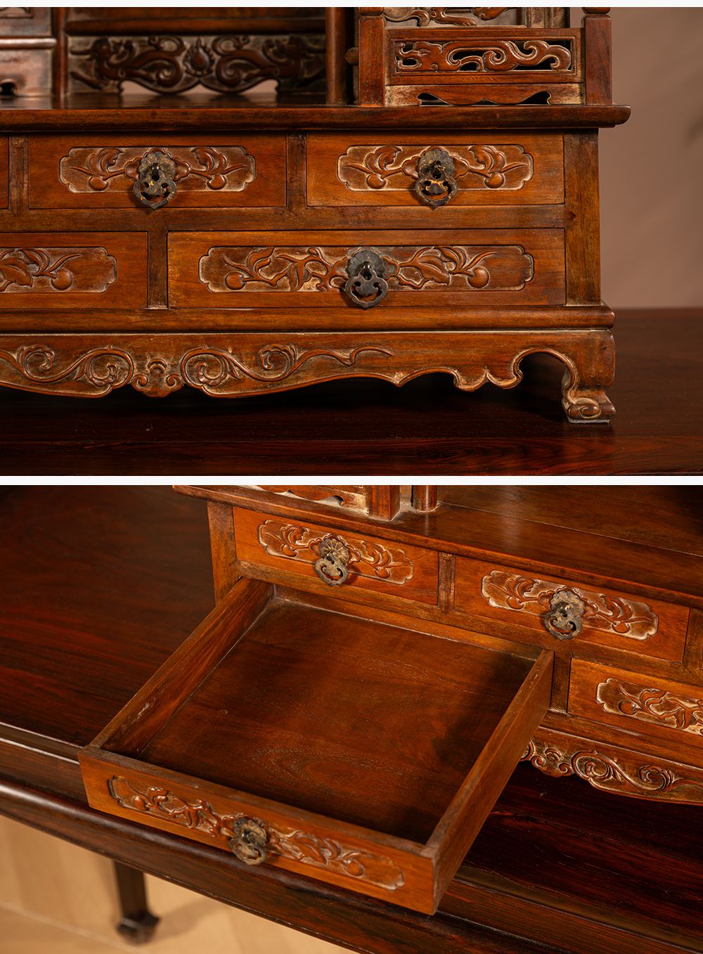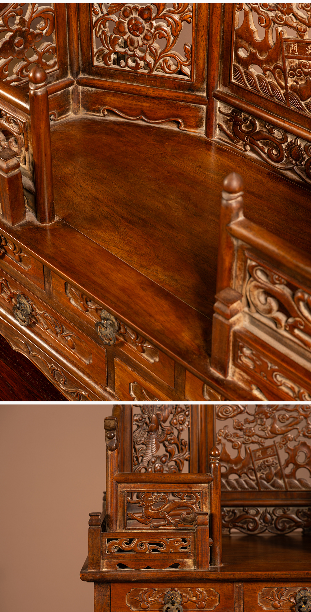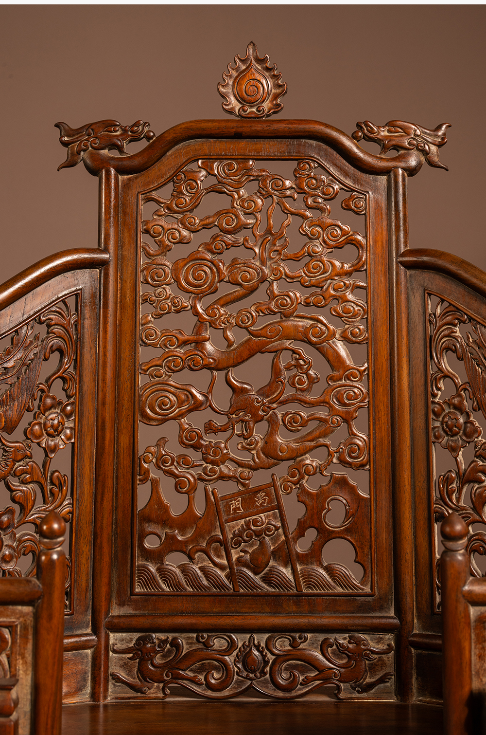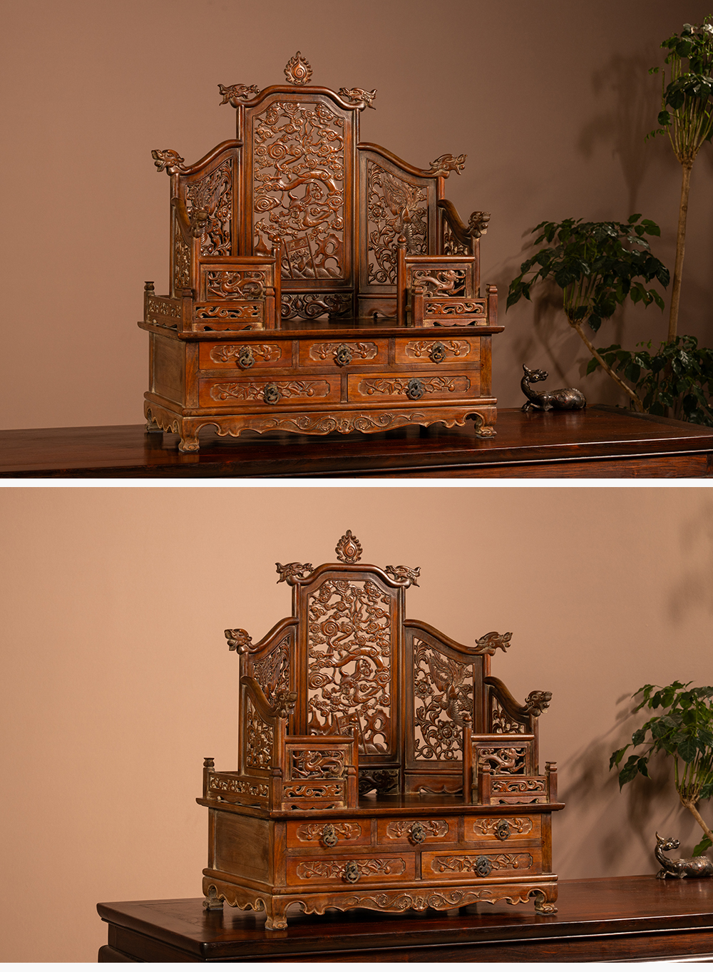 清 黄花梨透雕龙凤纹五屏风式镜台