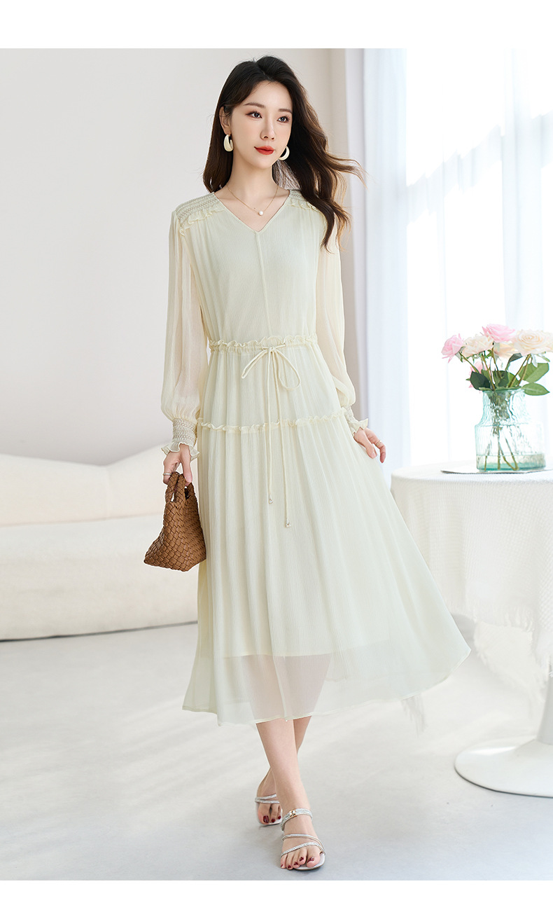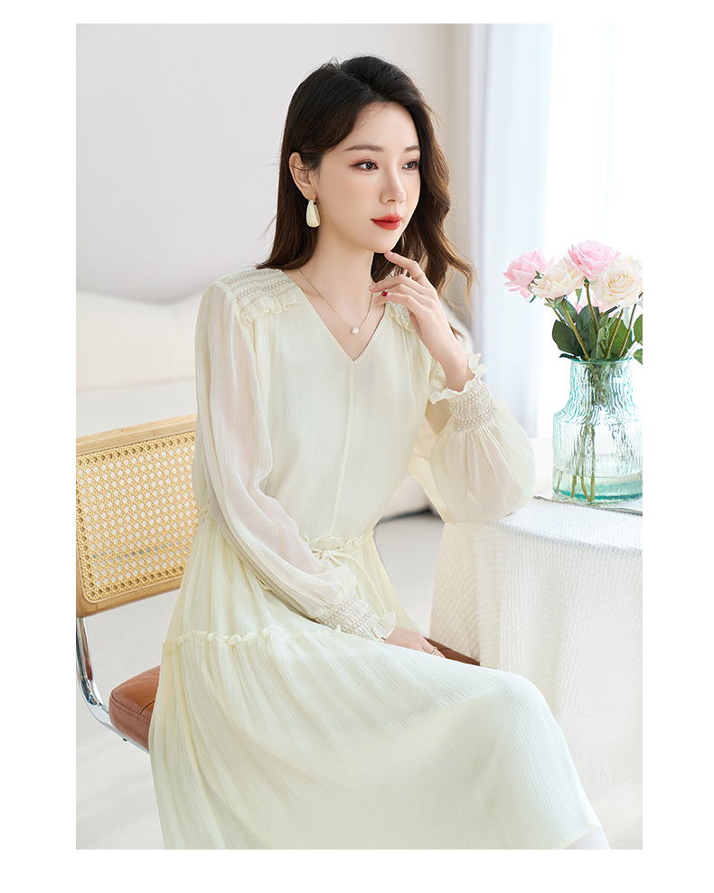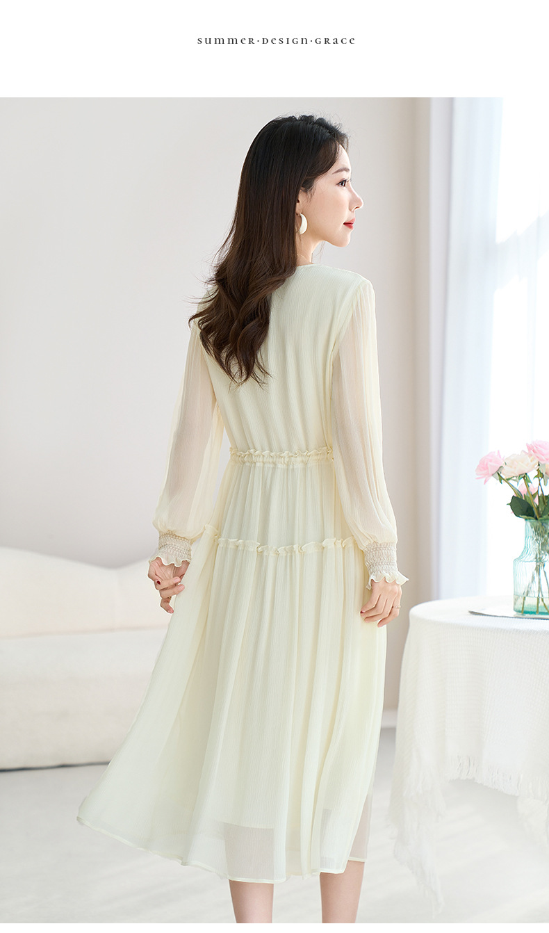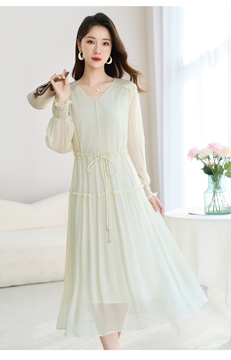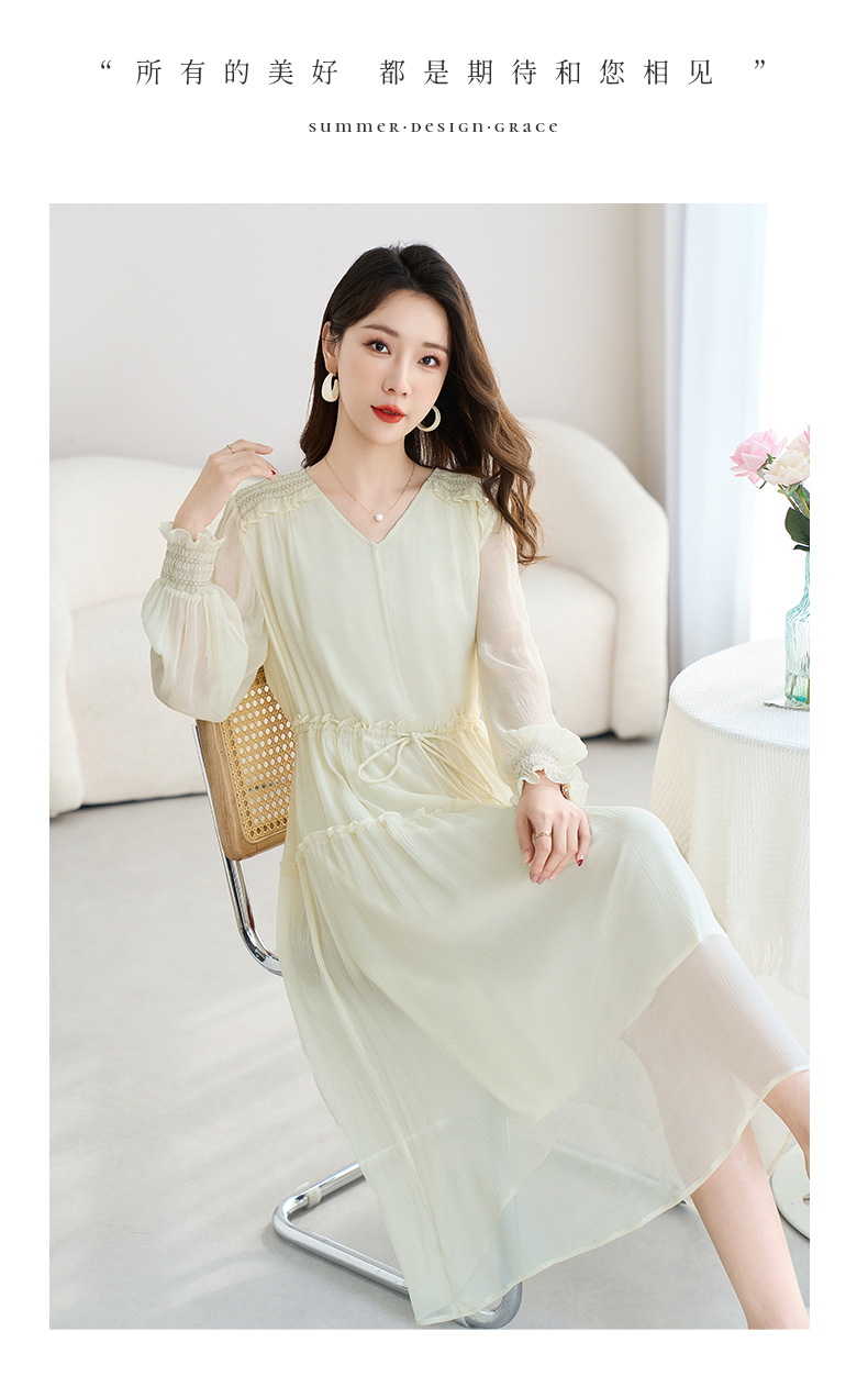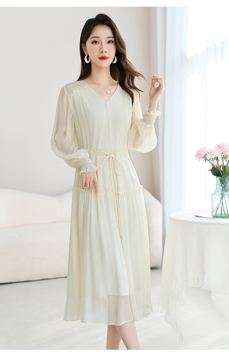 QS-82599788【减龄显瘦】100%桑蚕丝中长裙文艺气质修身V领真丝连衣裙9788