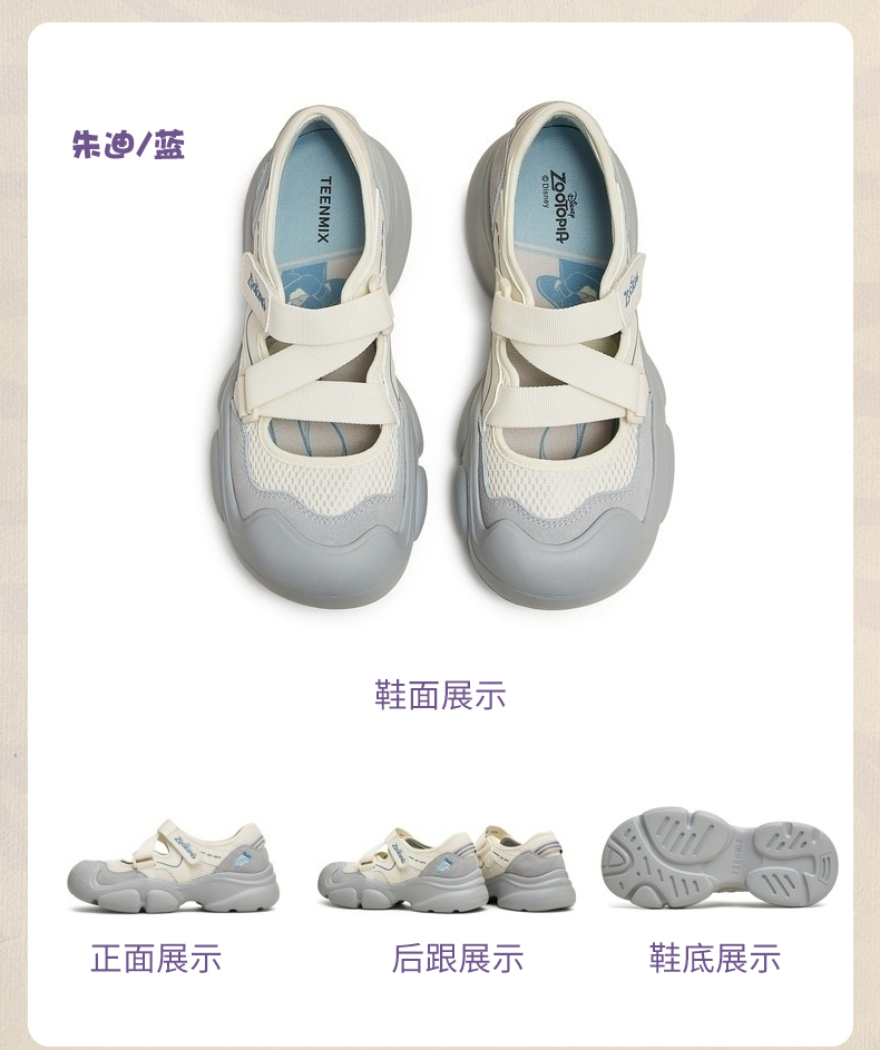 TEENMIX天美意 疯狂动物城联名 厚底丑萌休闲鞋女运动玛丽珍鞋子2025春新款