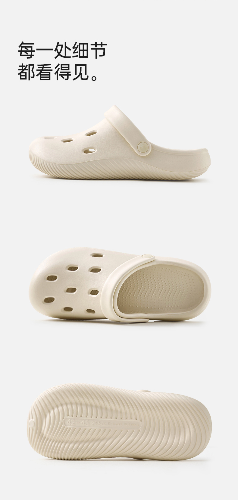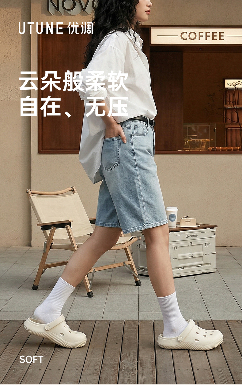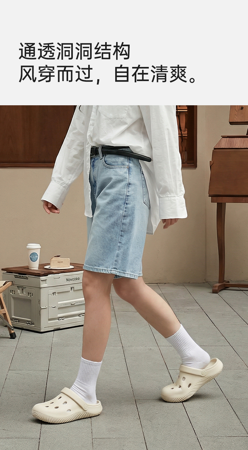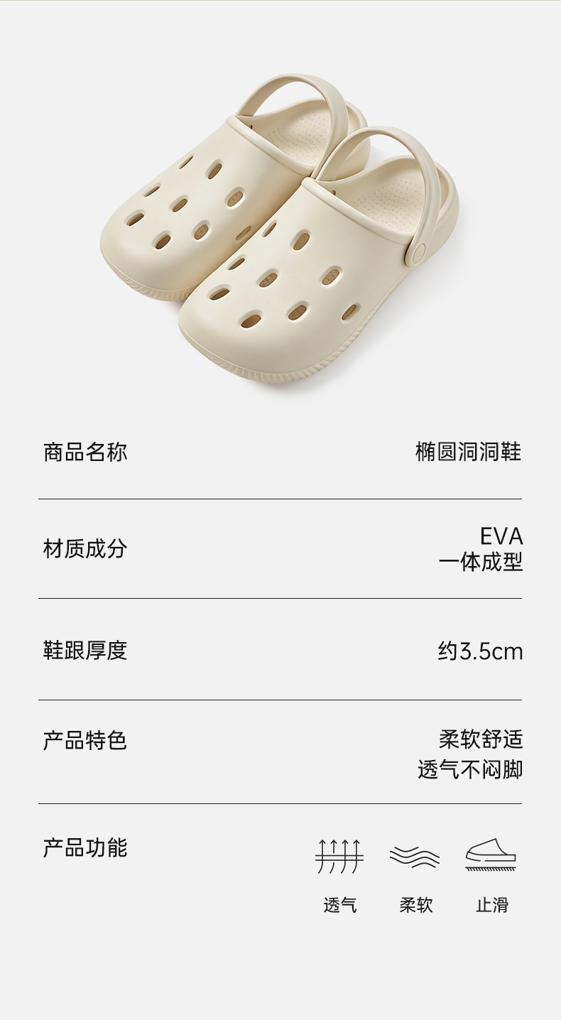 优调SXT1375椭圆洞洞花园鞋,鞋跟约3.5cm,轻盈柔软如踩云朵,简约配色与线条设计,轻松搭配各类穿搭,自在出街无负担。