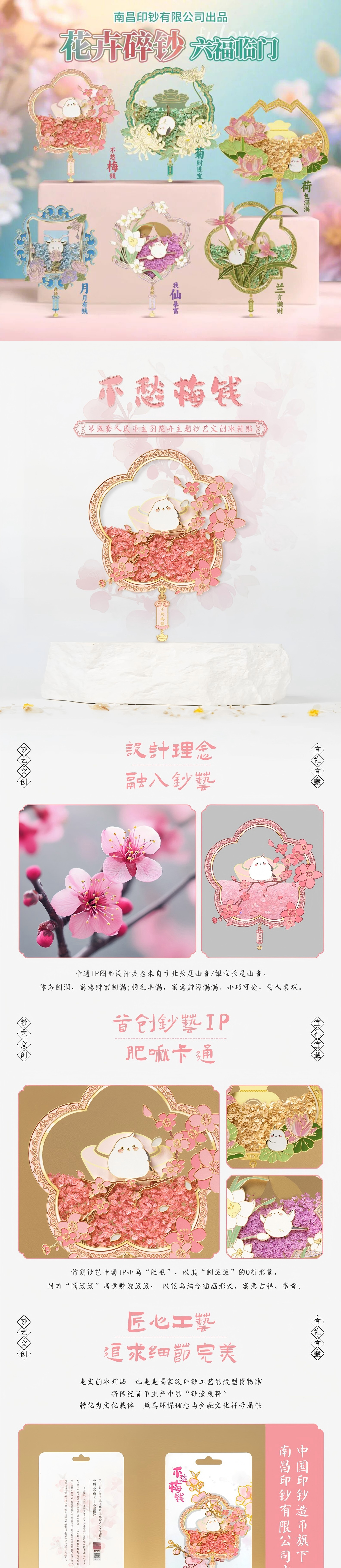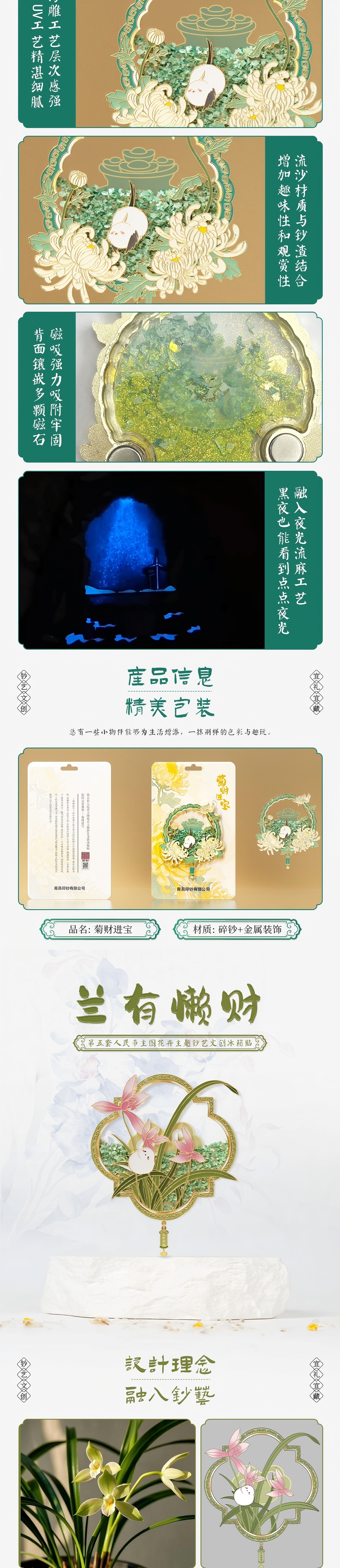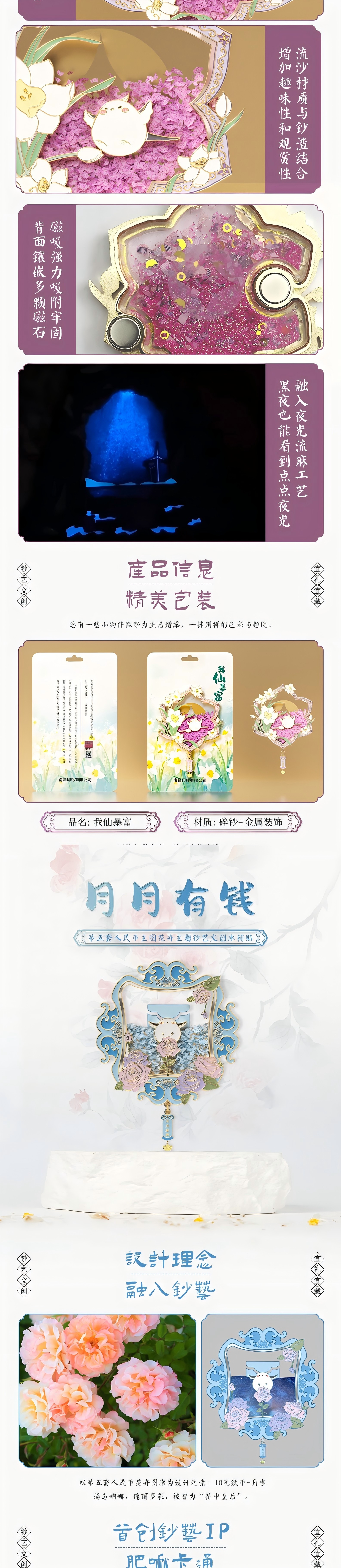 【南昌印钞出品 流沙结合钞渣 夜光流麻工艺】2026暴富来财花卉碎钞冰箱贴(6款好寓意可选 六福临门)