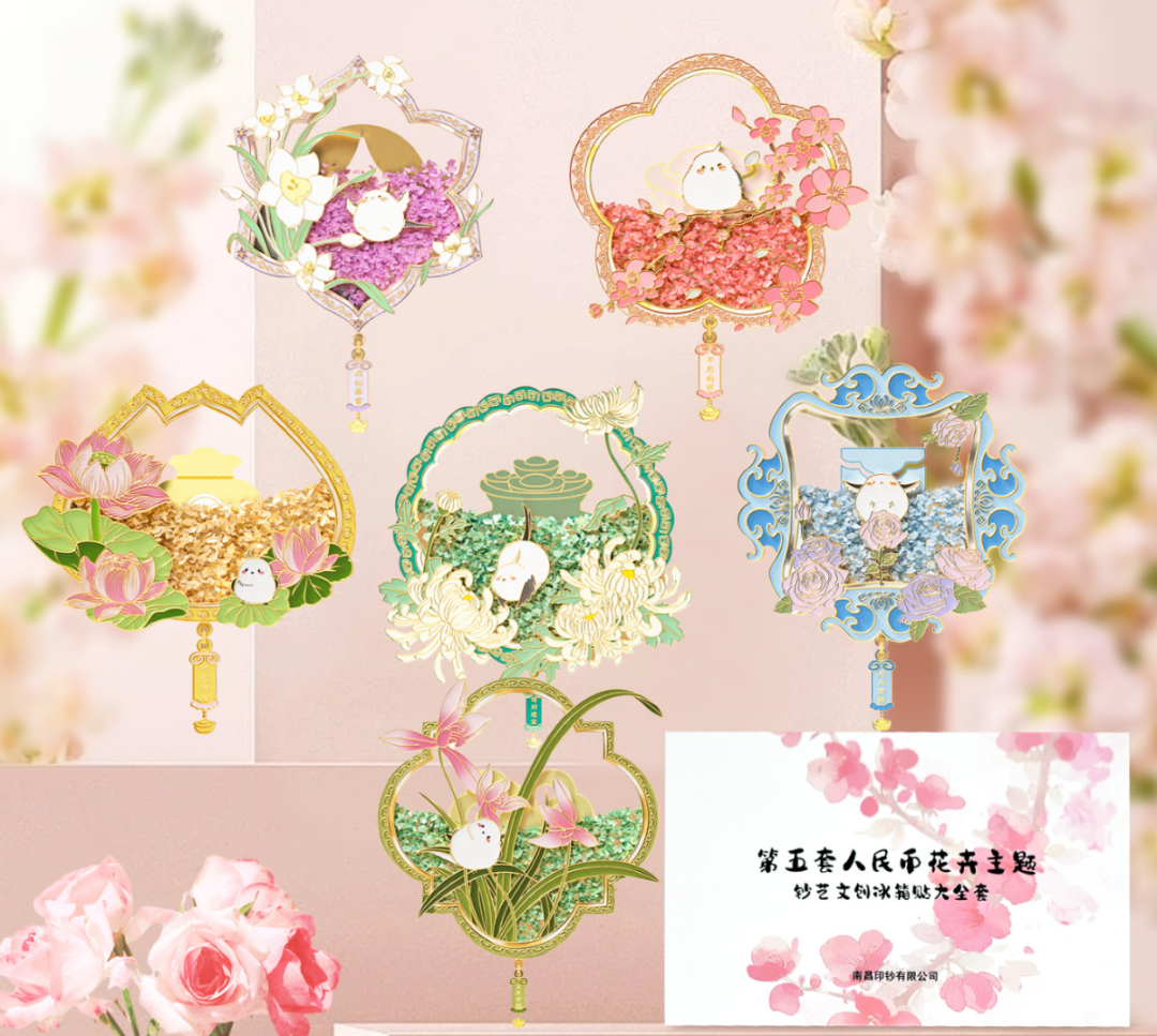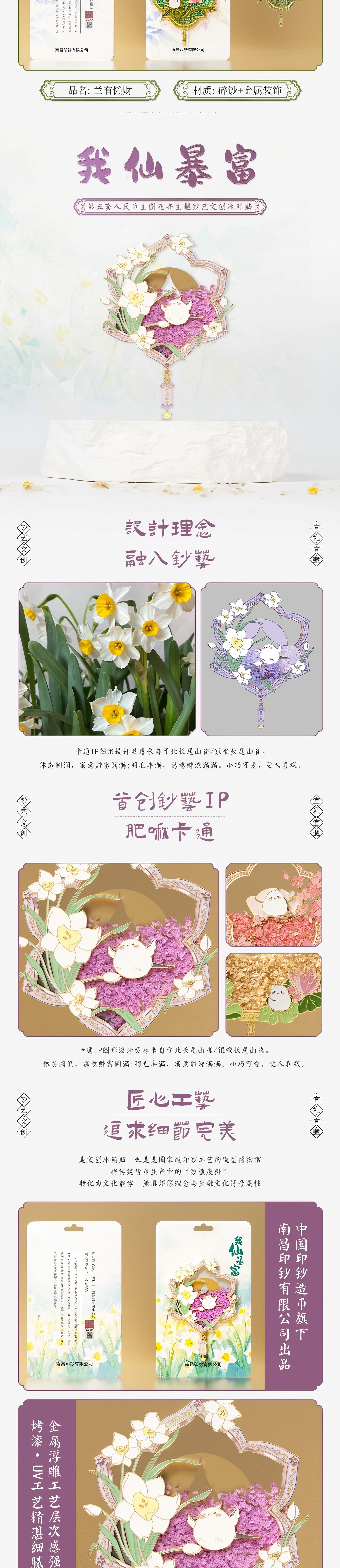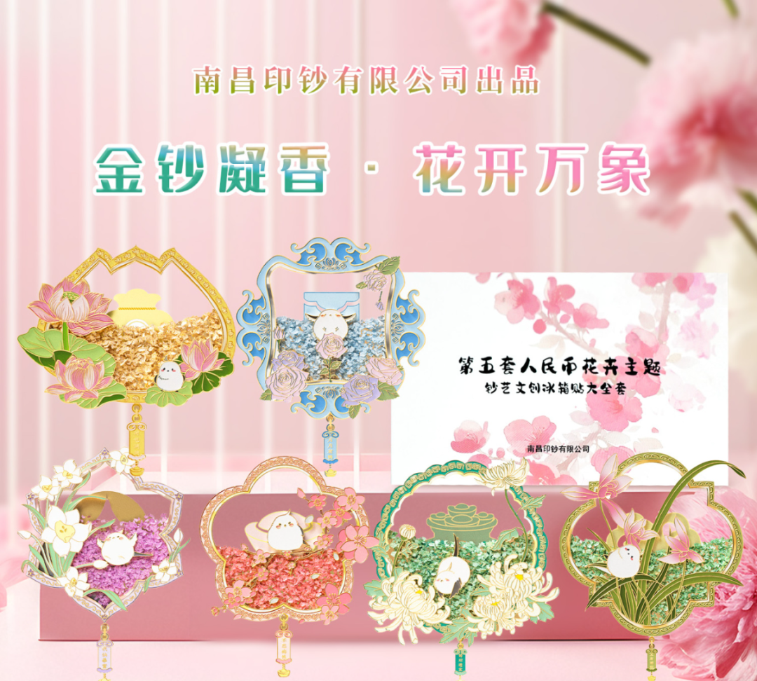 【南昌印钞出品 流沙结合钞渣 夜光流麻工艺】2026暴富来财花卉碎钞冰箱贴(6款好寓意可选 六福临门)
