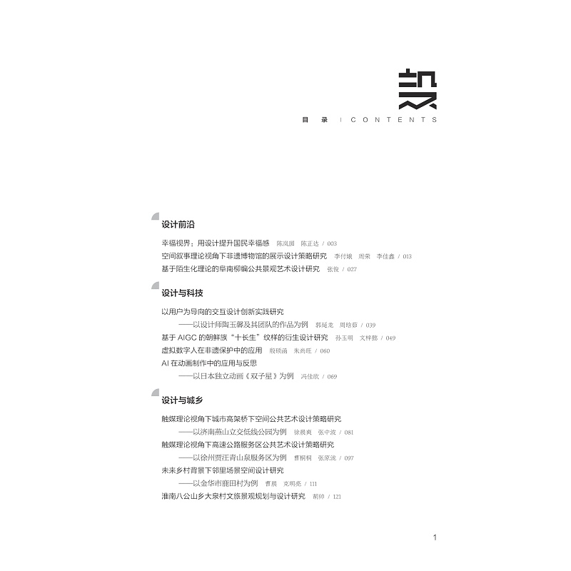 随着设计学学科列入交叉学科门类,设计学的学术地位、学科能见度得到进一步的提升,业界亟须专业高端的学术交流平台。基于此,浙江师范大学设计与创意学院倾力主编“设计学界”丛书,聚焦设计学学科前沿,重视学科跨界思维和学科交叉逻辑,重点探索研究设计教育、设计实践、设计产业各领域的新现象、新问题,呈现设计界优秀的教育成果、学术成果、实践成果,旨在打造品牌化的学术阵地。本书为该丛书第一辑。全书分为设计前沿、设计与科技、设计与教育、设计与乡村、设计与产业、设计与遗产、设计作品与案例等专题。本书的出版将有效推动设计学学科的发展。