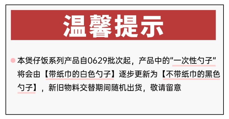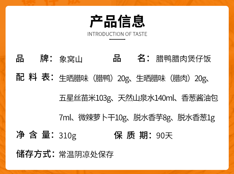 3、近期天气炎热,收货后可拆开煲仔饭,单独将腊味包冷藏,其他配料未拆封不影响食用。