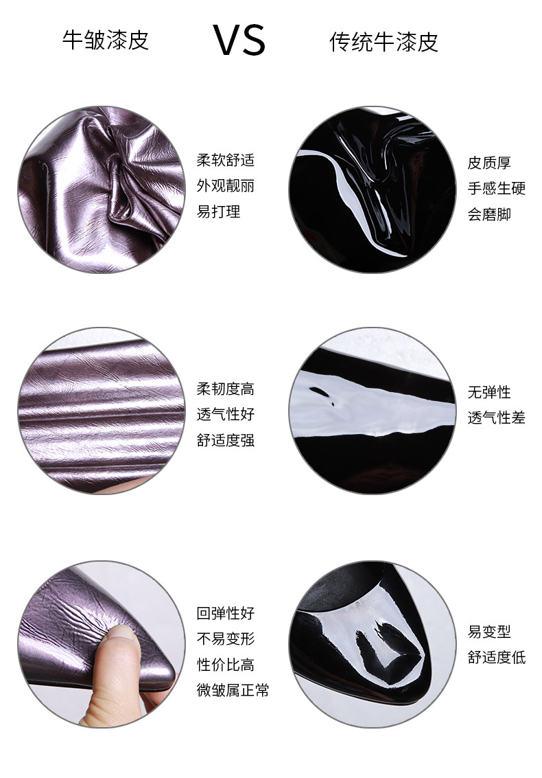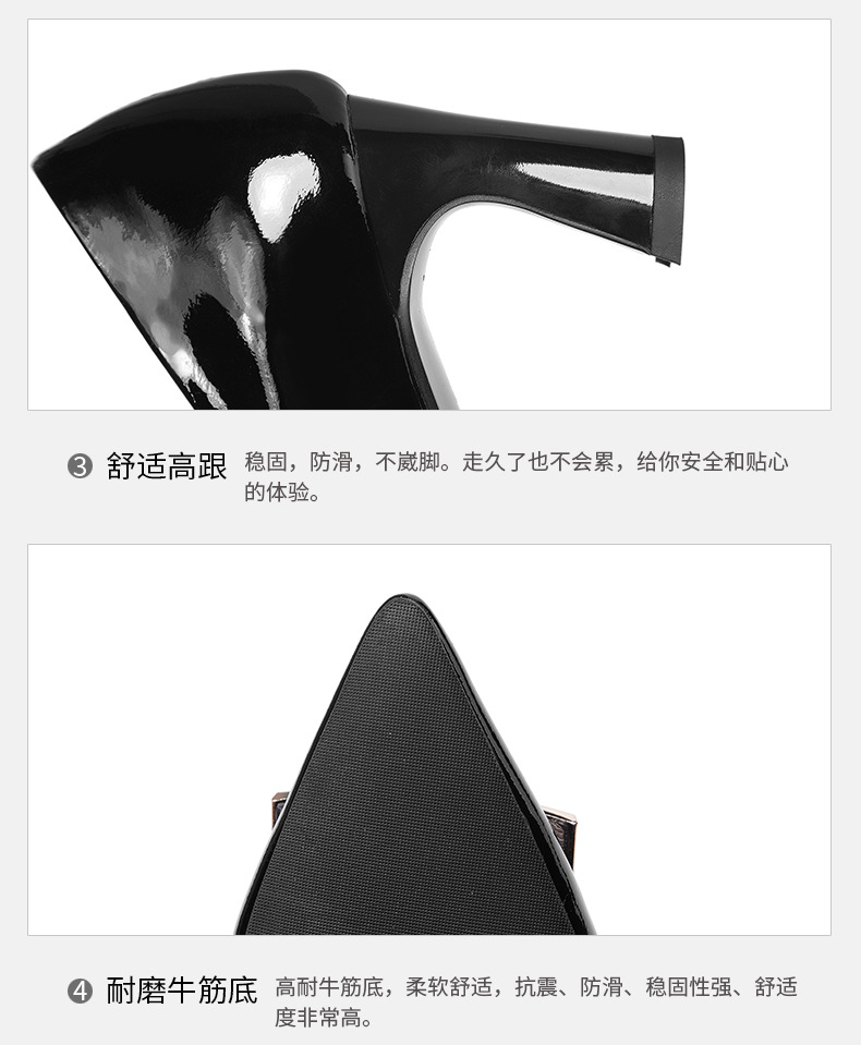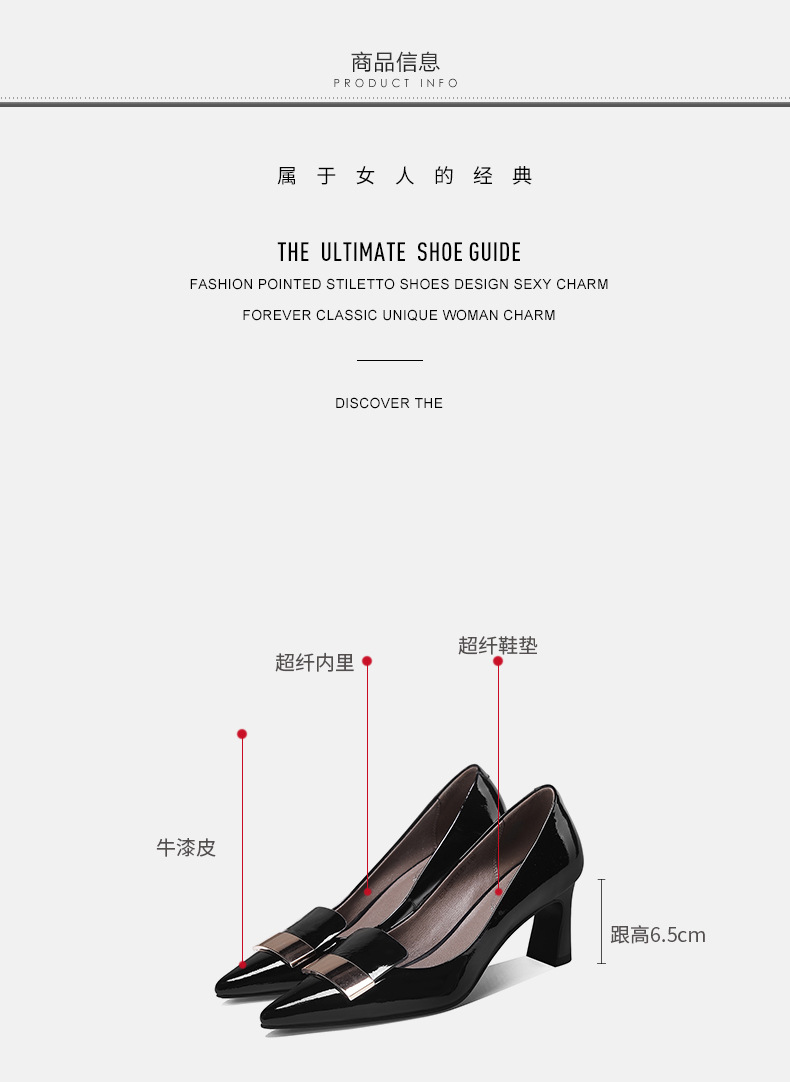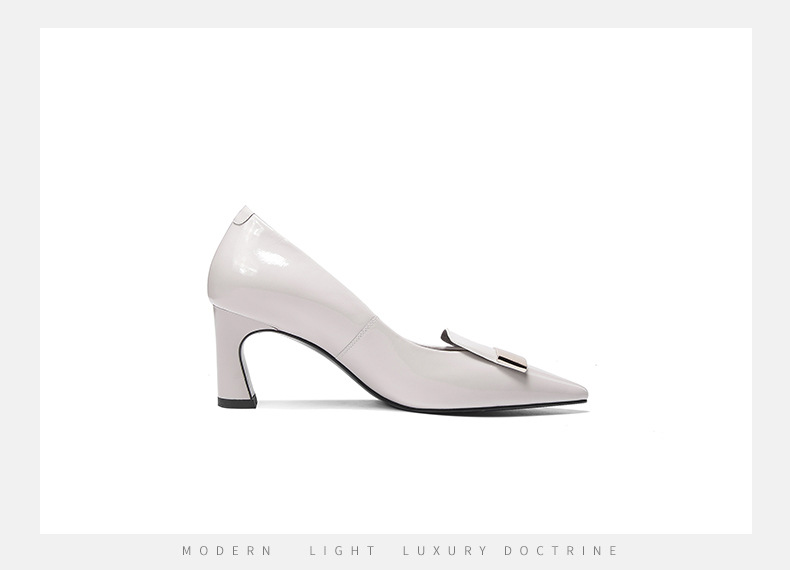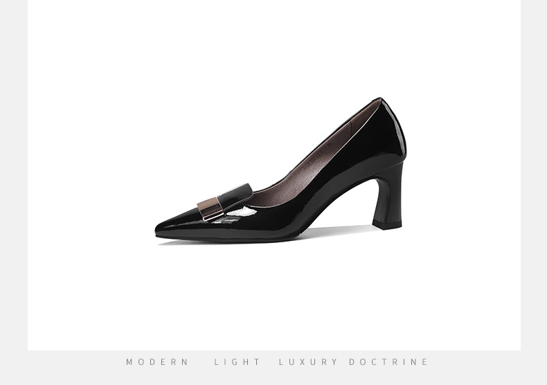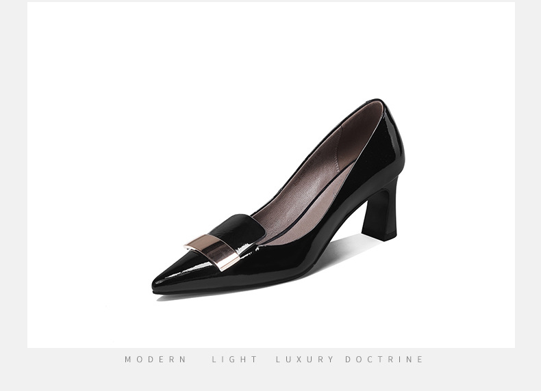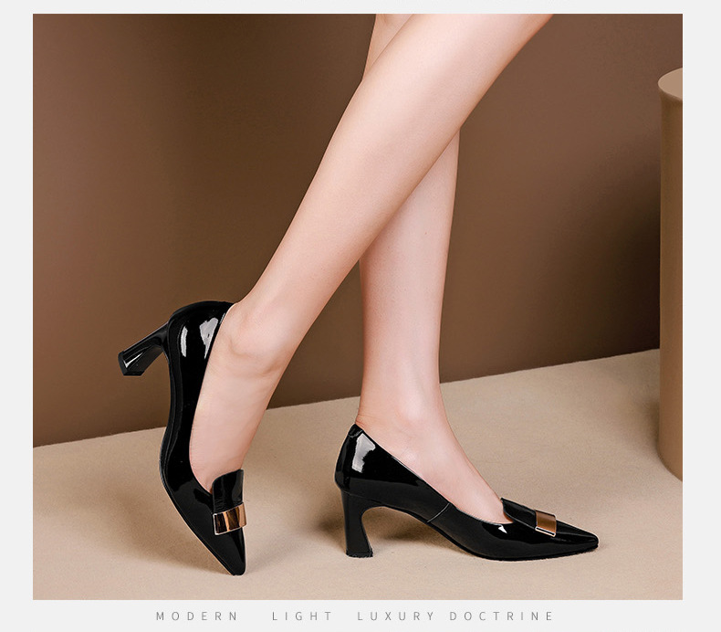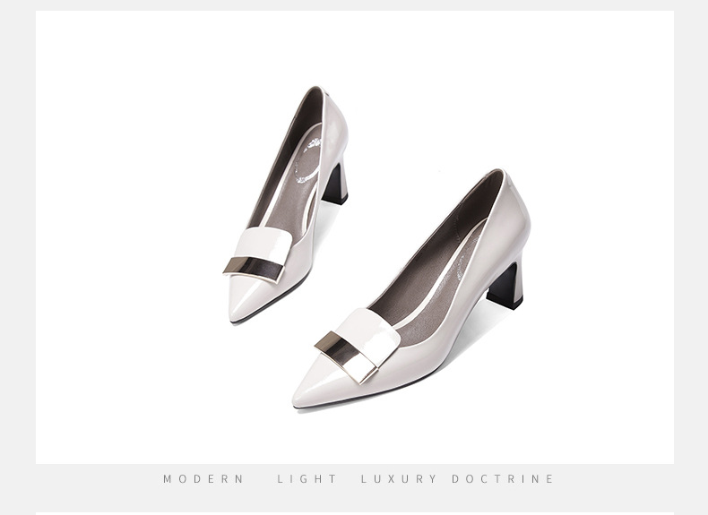 KBY-K524粗跟尖头浅口单鞋女真皮金属装饰高跟女鞋