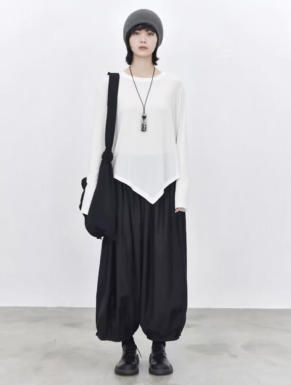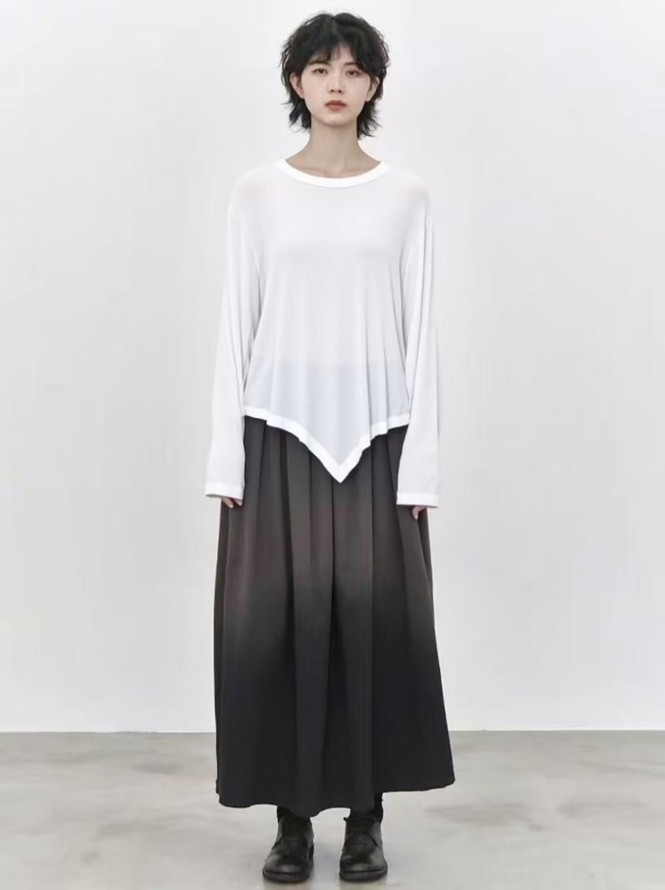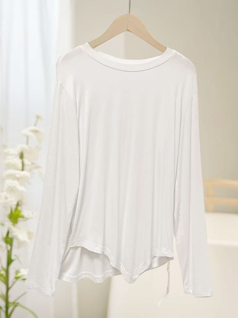 【超值特卖】薄款莫代尔超舒服不规则下摆长袖T恤打底衫-喜出