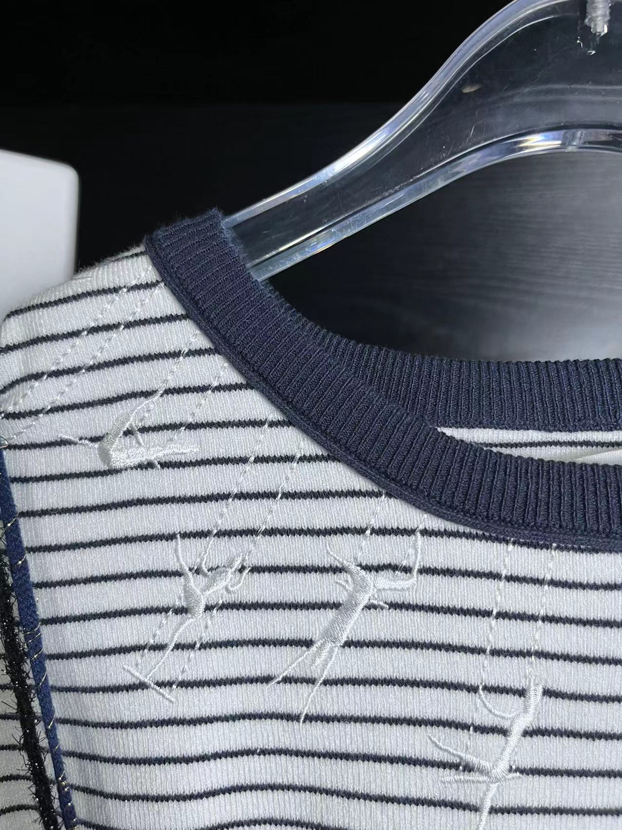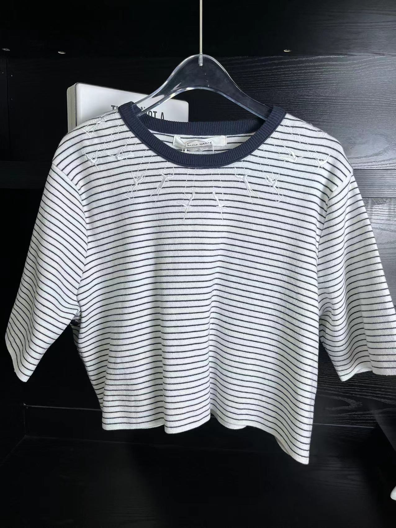单上衣领口是有细节绣花的,很精致。绵密的冰麻手感,宽松版