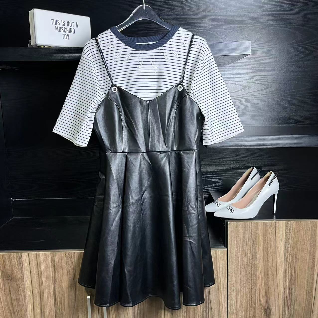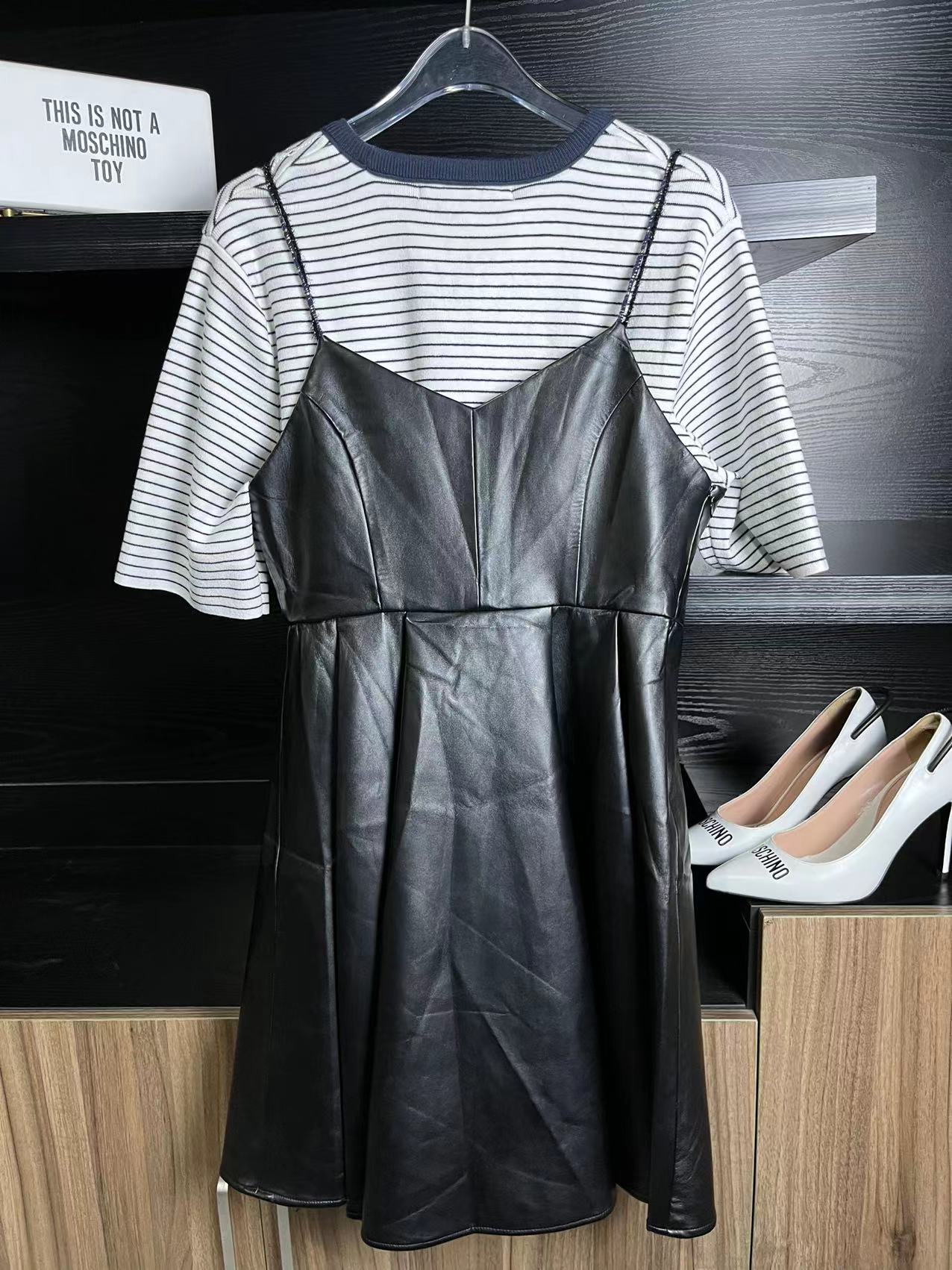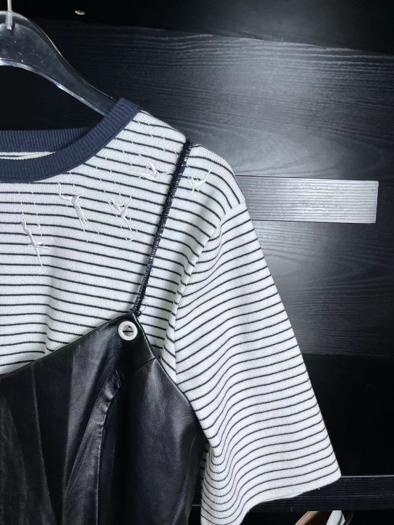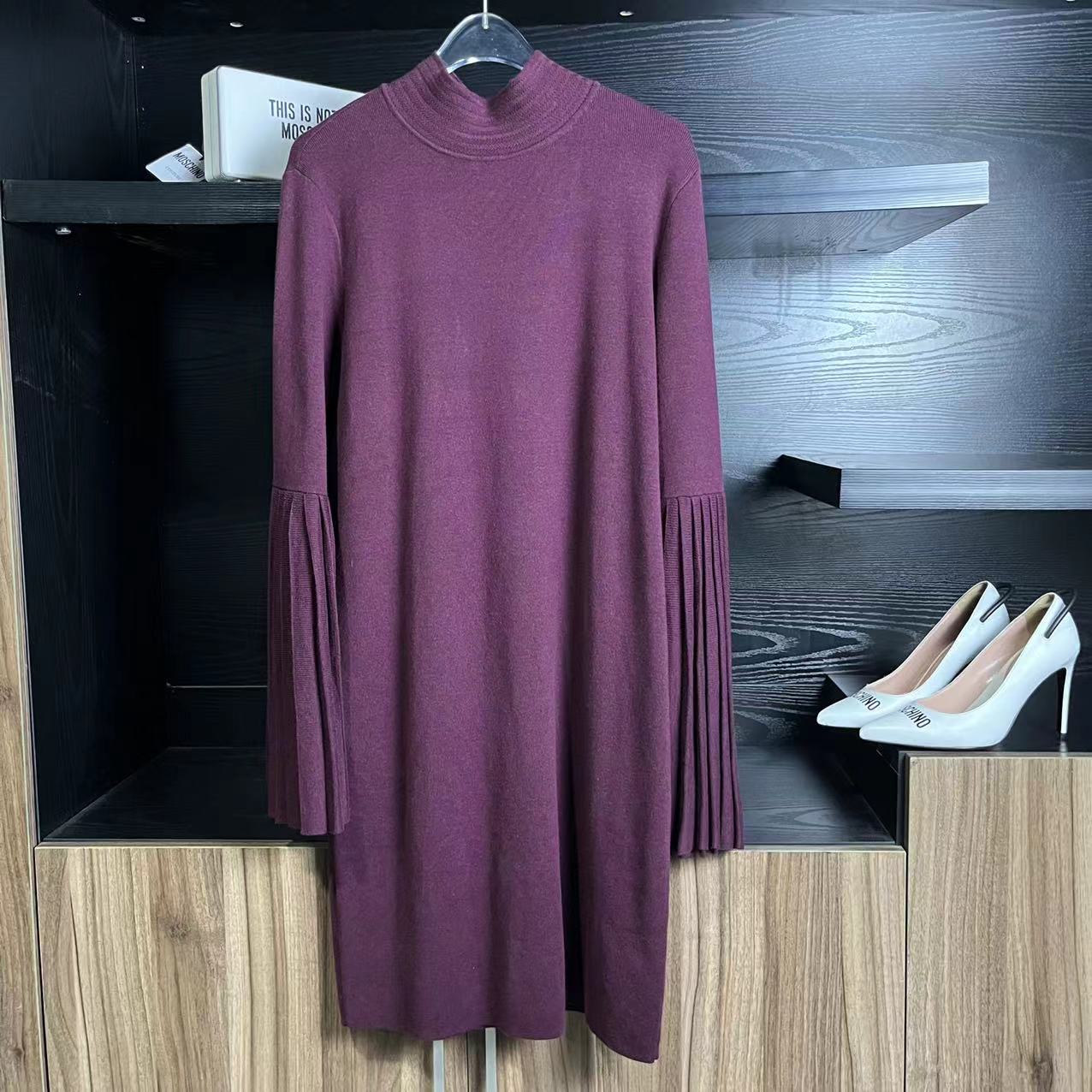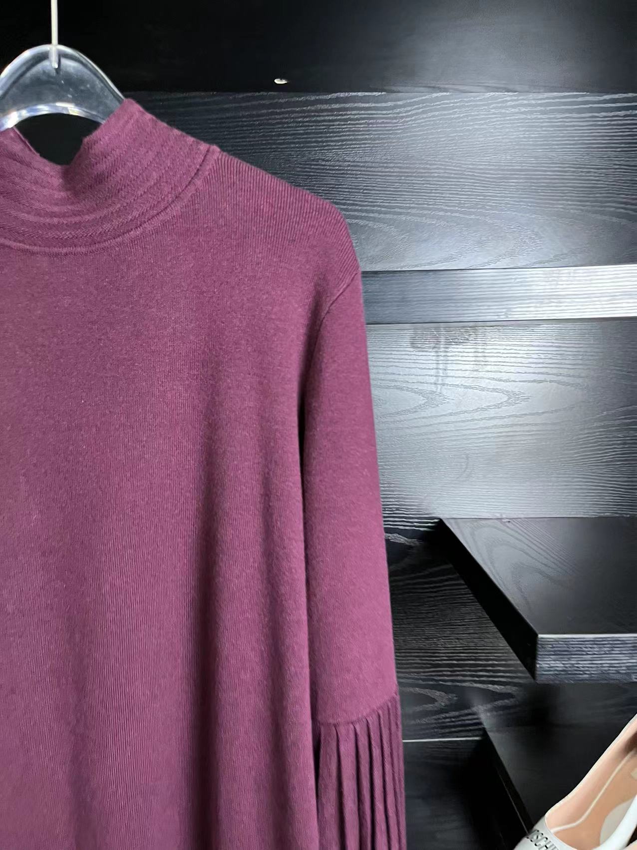 E59 这款袖子是百褶的,比较时尚,可以直接当个大衫穿,也可以直接当连衣裙穿,这款 S码 90-120斤之间都可以穿,弹力也很大