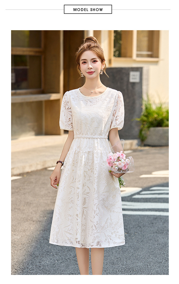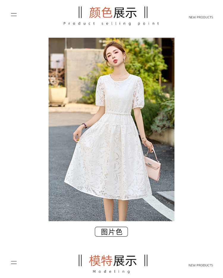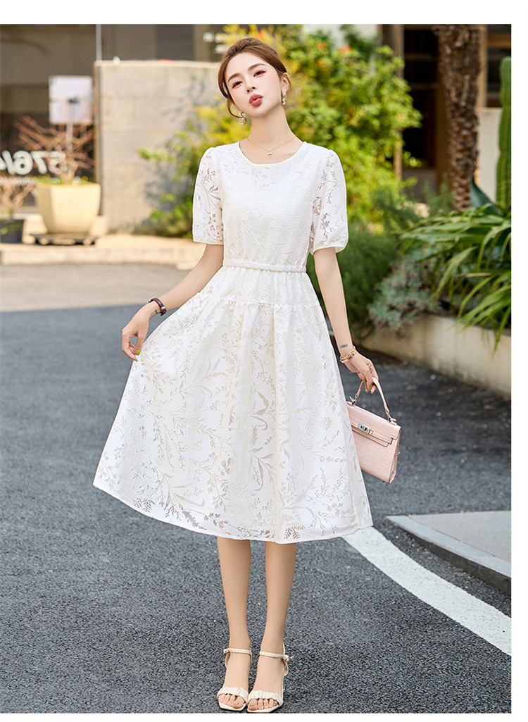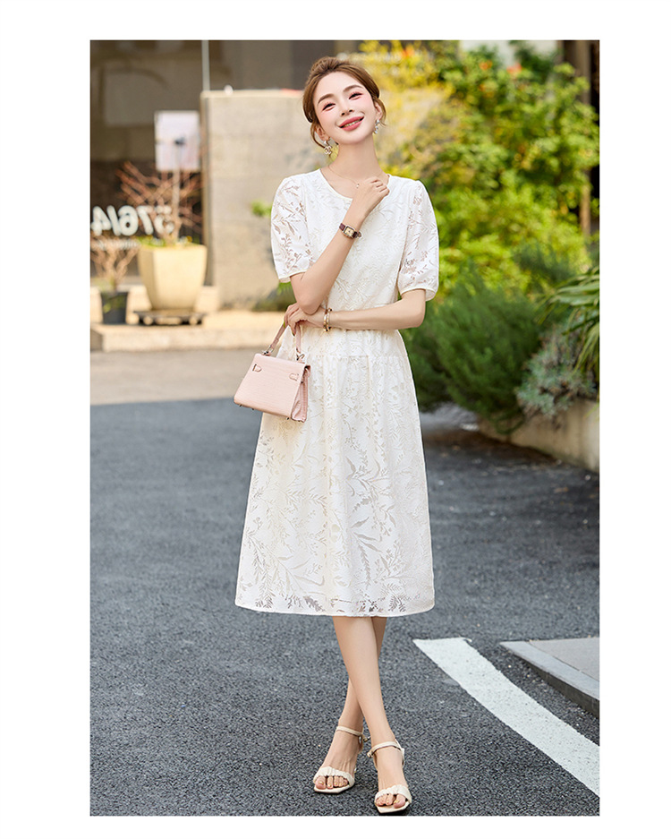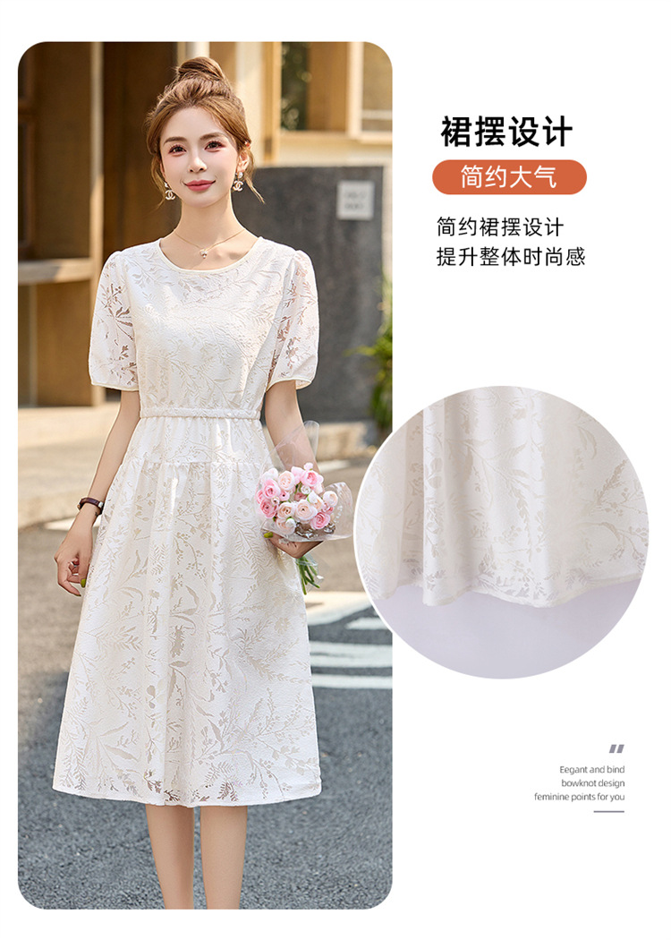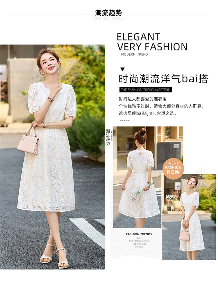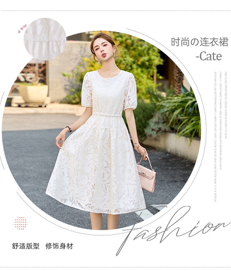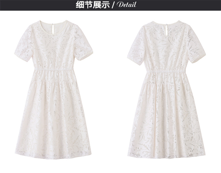 2025年夏装纯色气质优雅显瘦高级感新款收腰法式蕾丝镂空连衣裙XXL3101