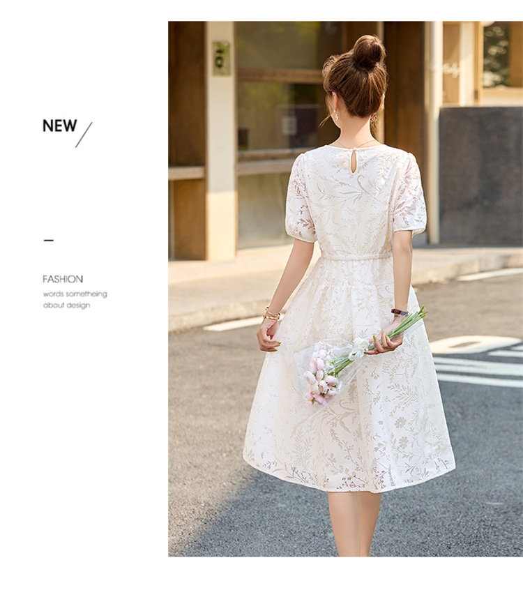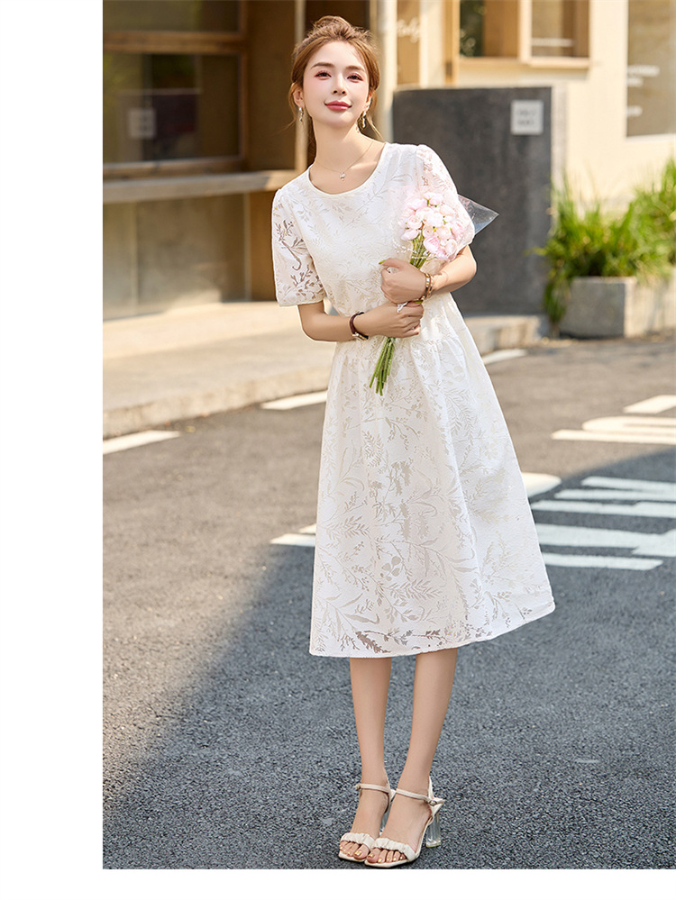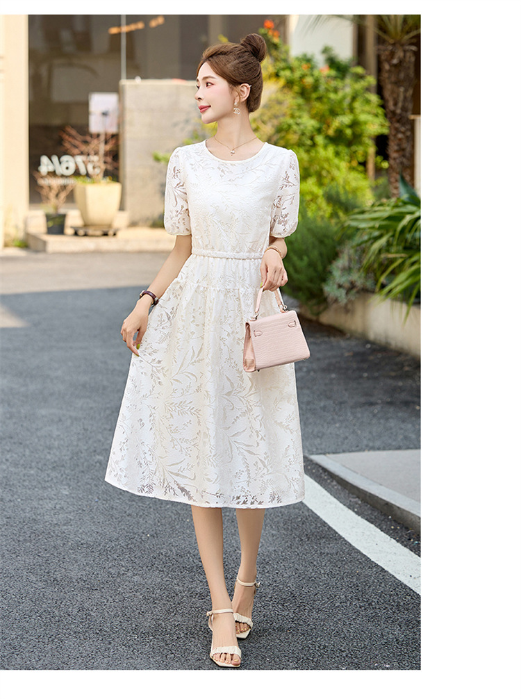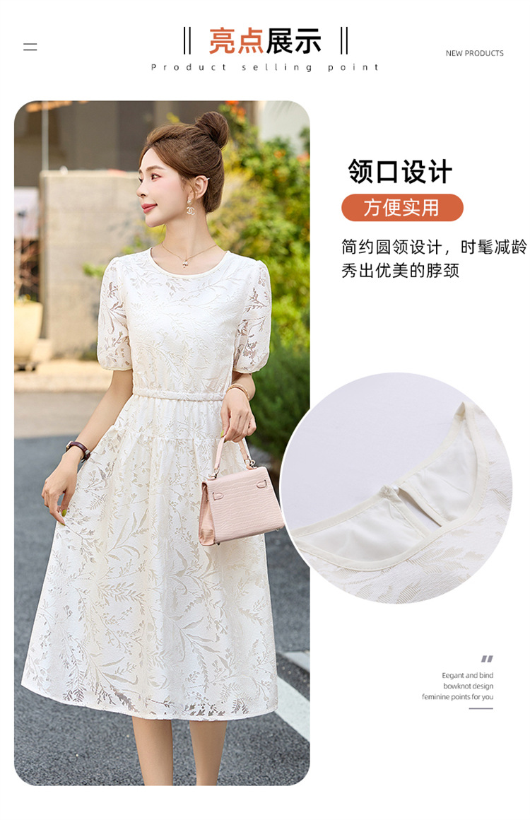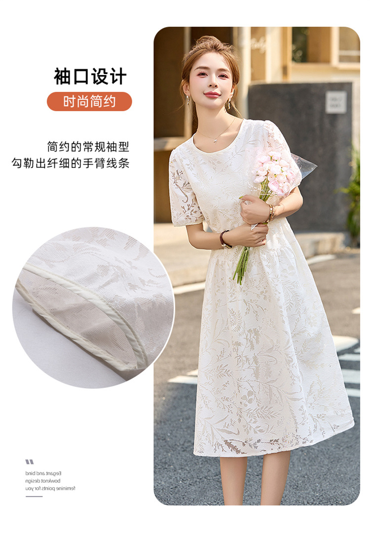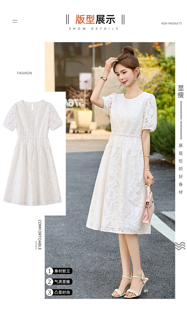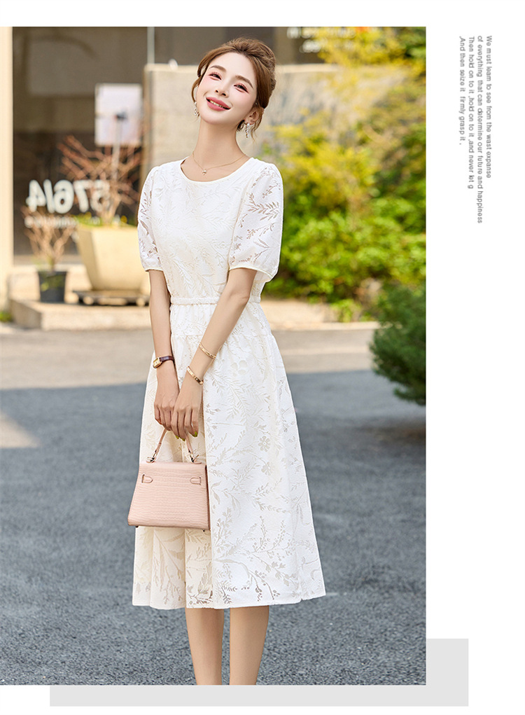 2025年夏装纯色气质优雅显瘦高级感新款收腰法式蕾丝镂空连衣裙XXL3101
