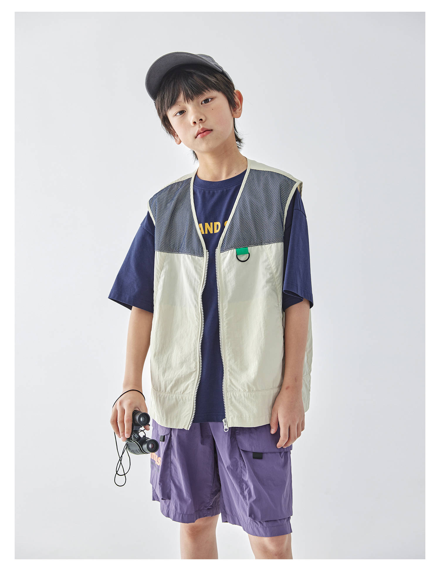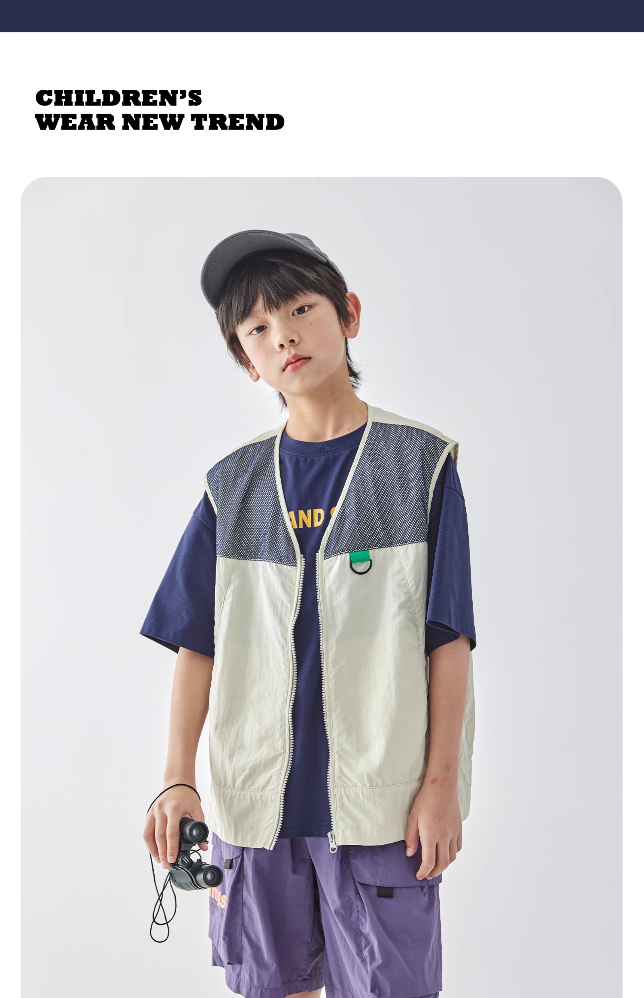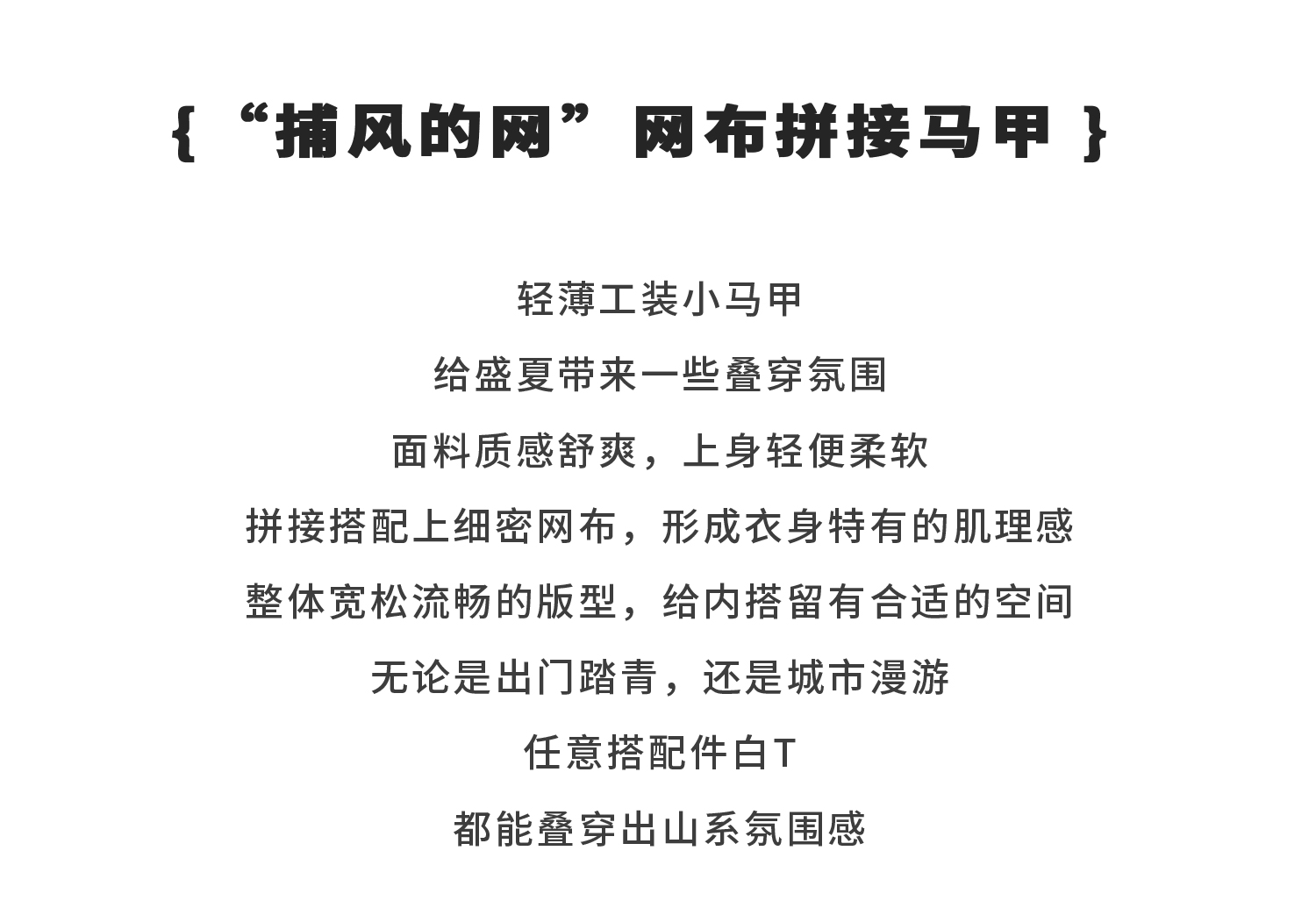蓝汽水2025春夏款轻薄网布拼接马甲山系工装风肌理感百搭无袖上衣