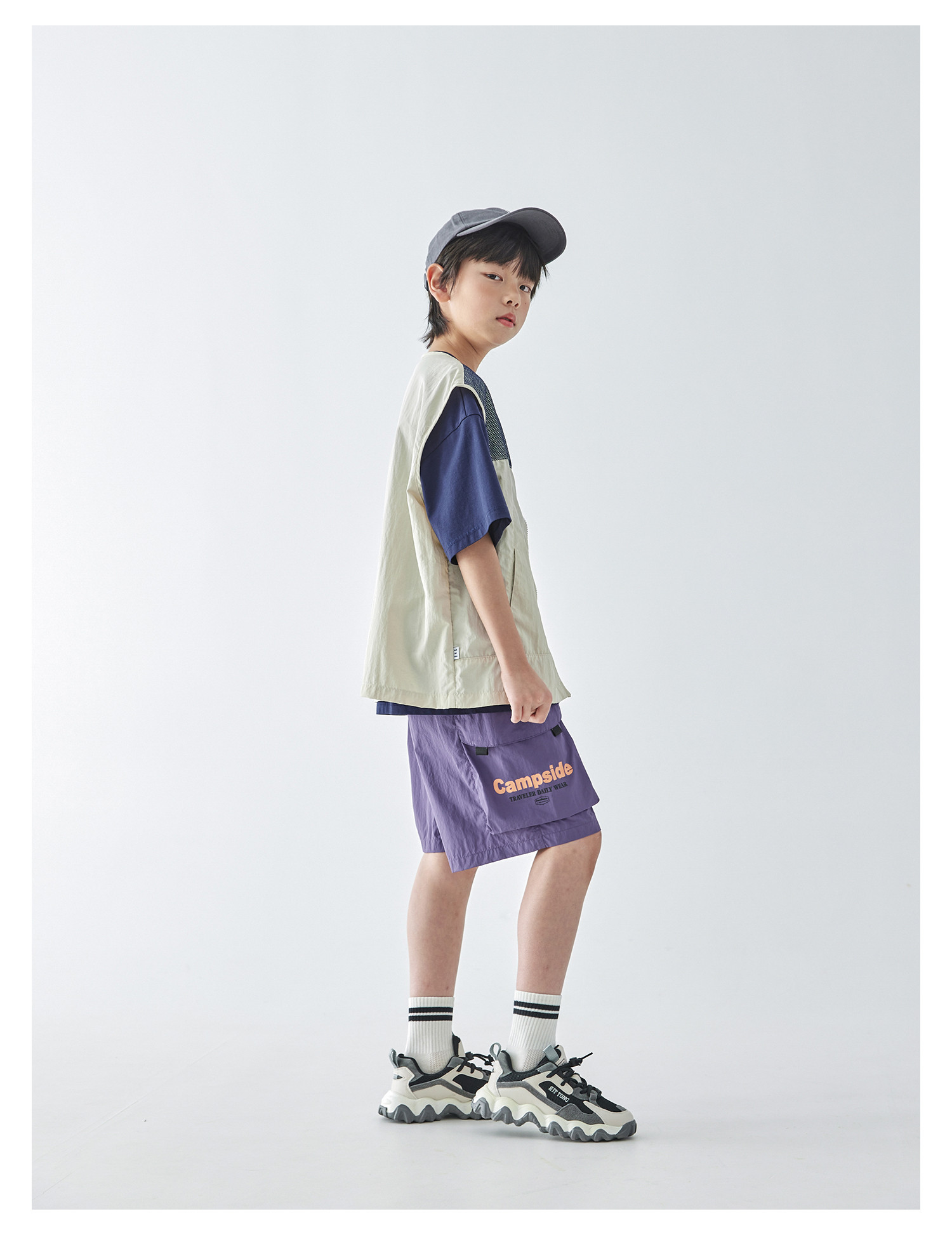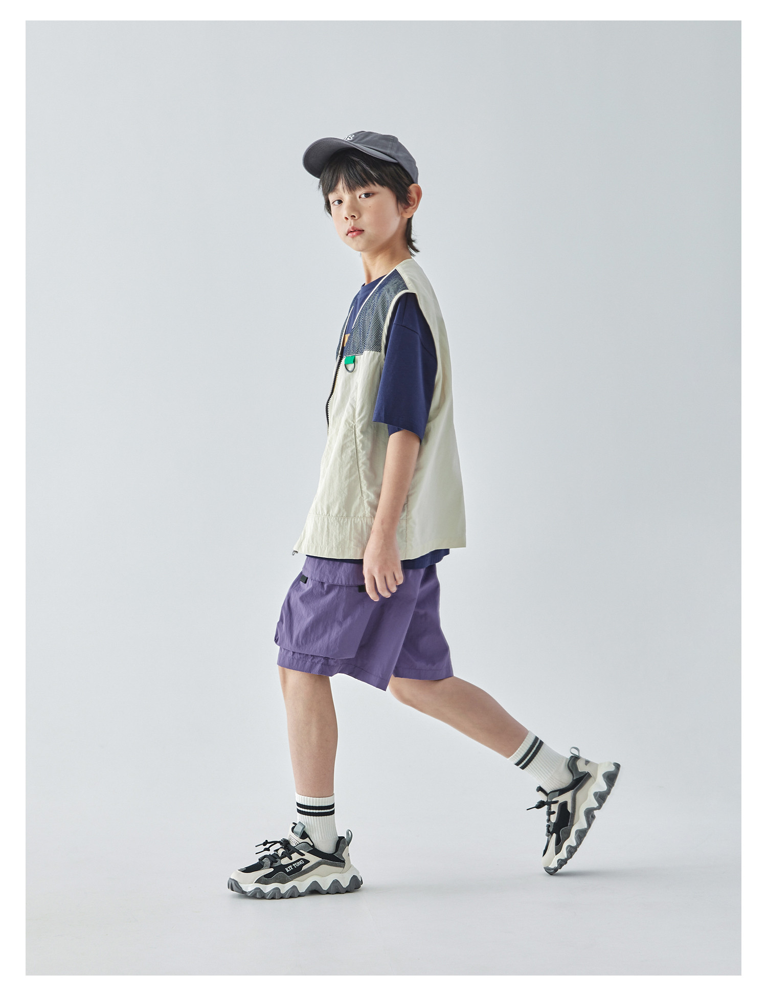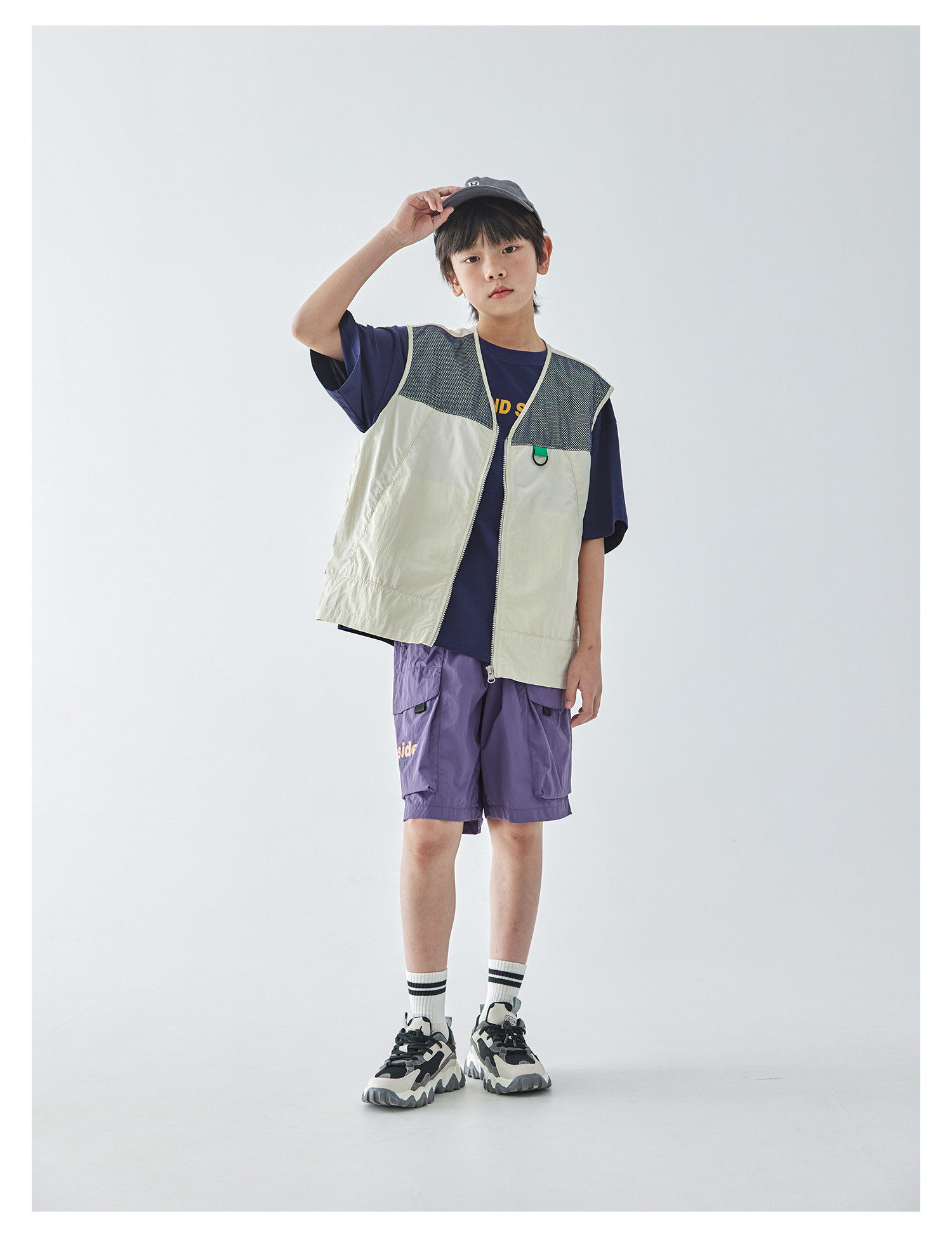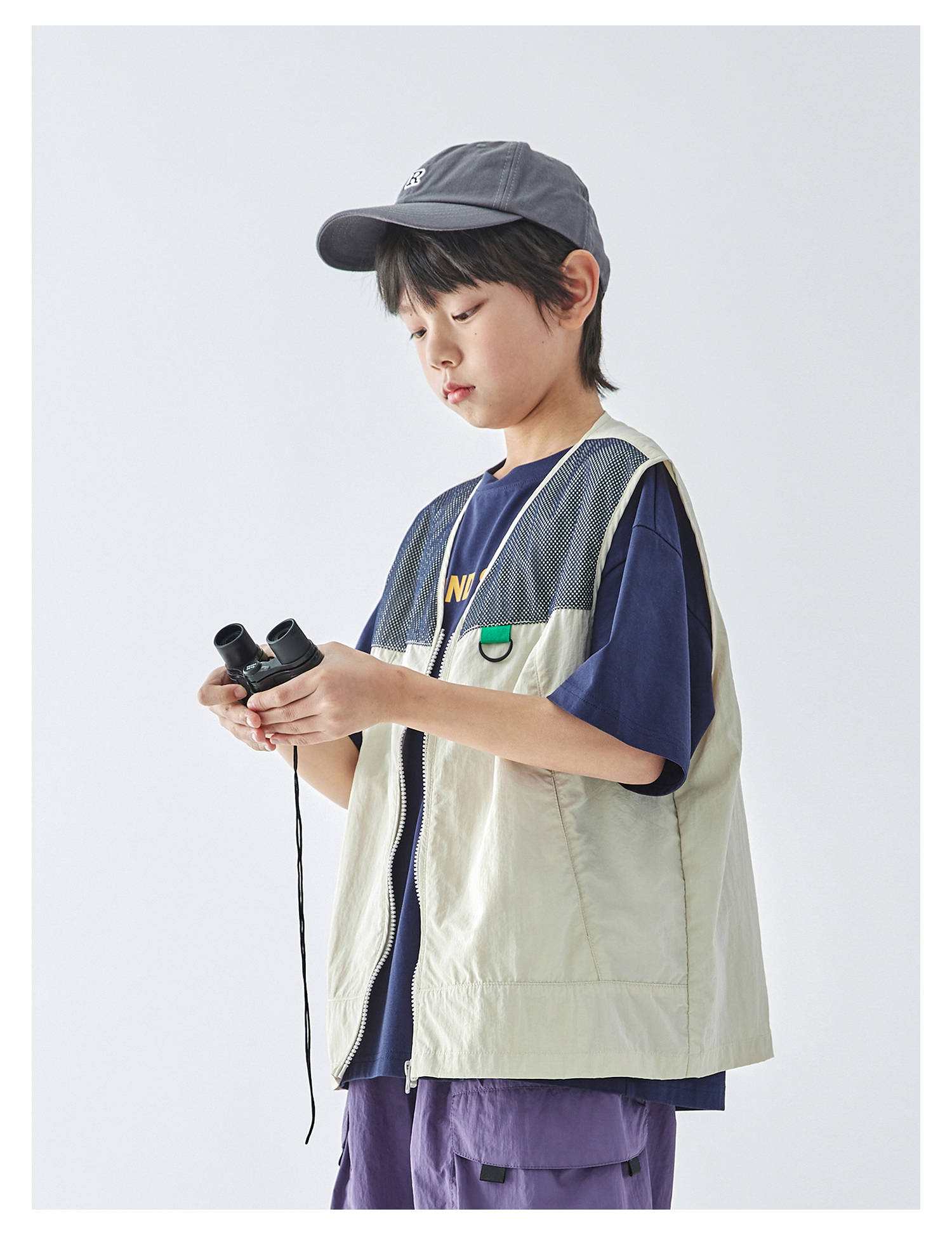 蓝汽水2025春夏款轻薄网布拼接马甲山系工装风肌理感百搭无袖上衣