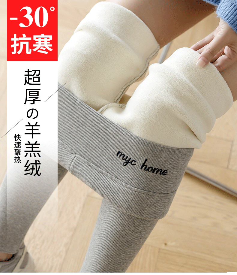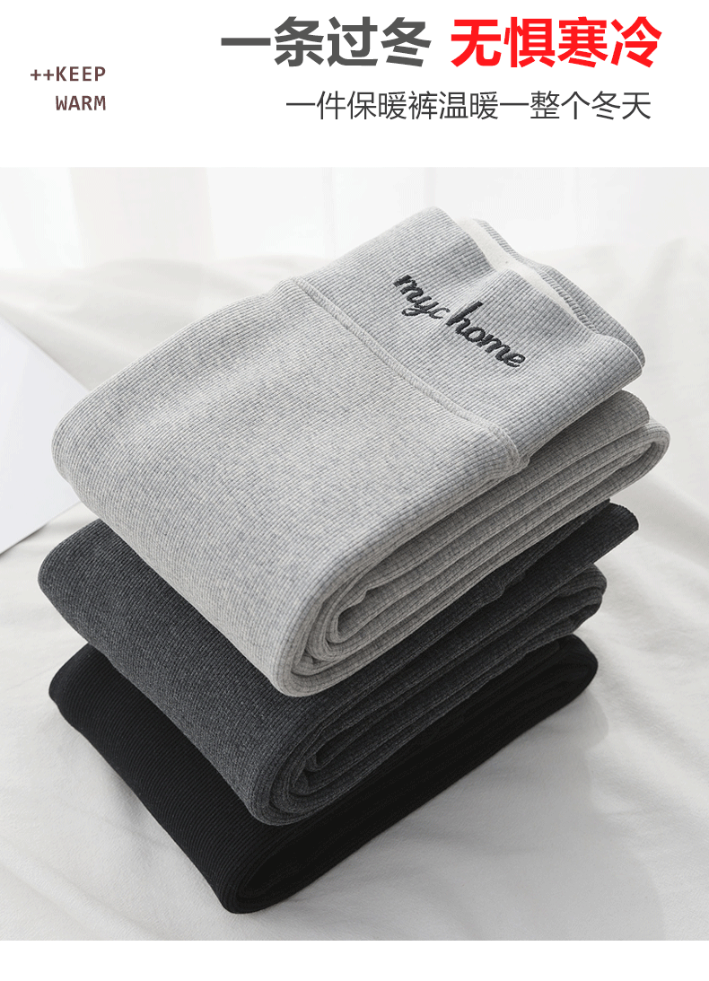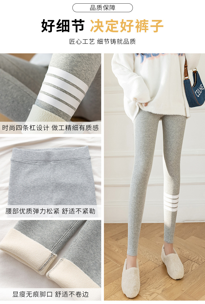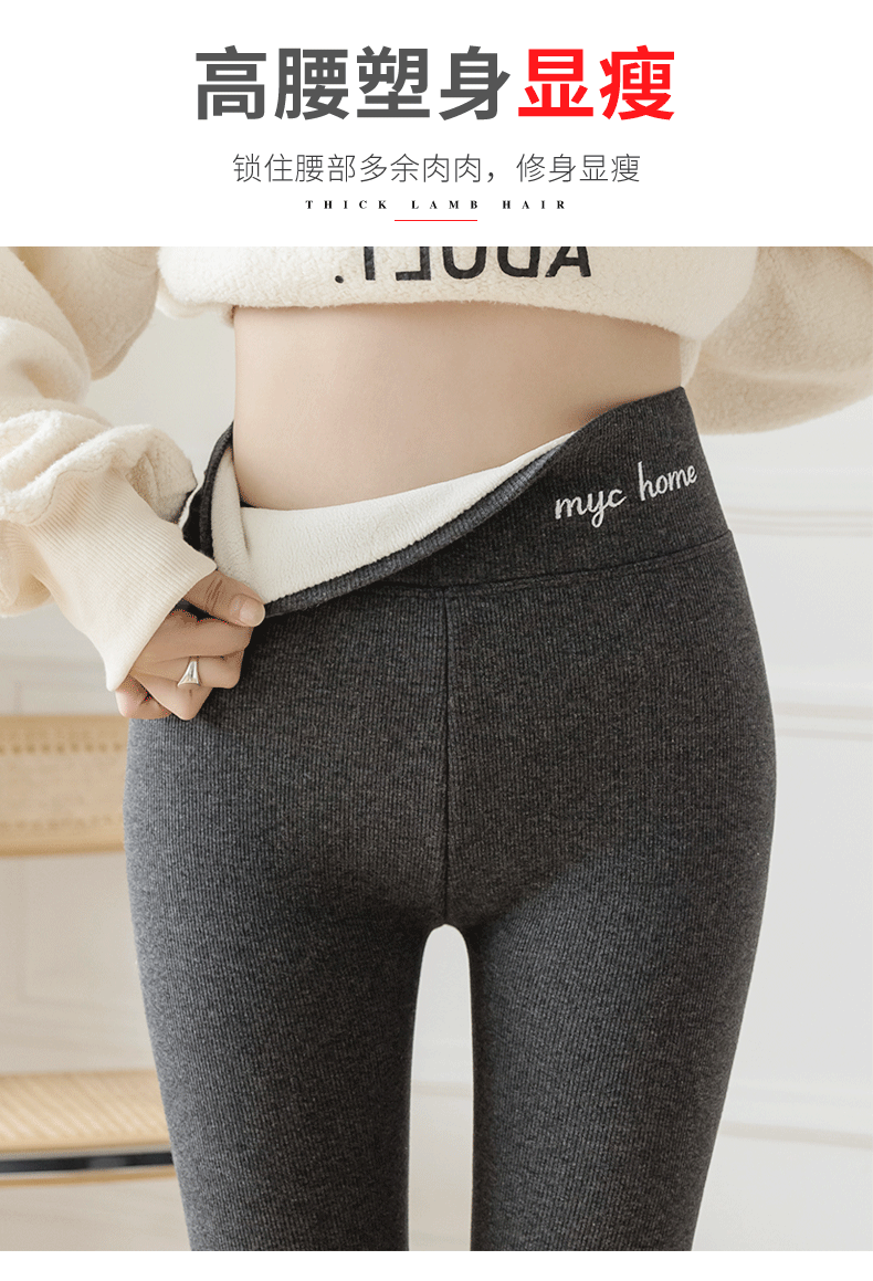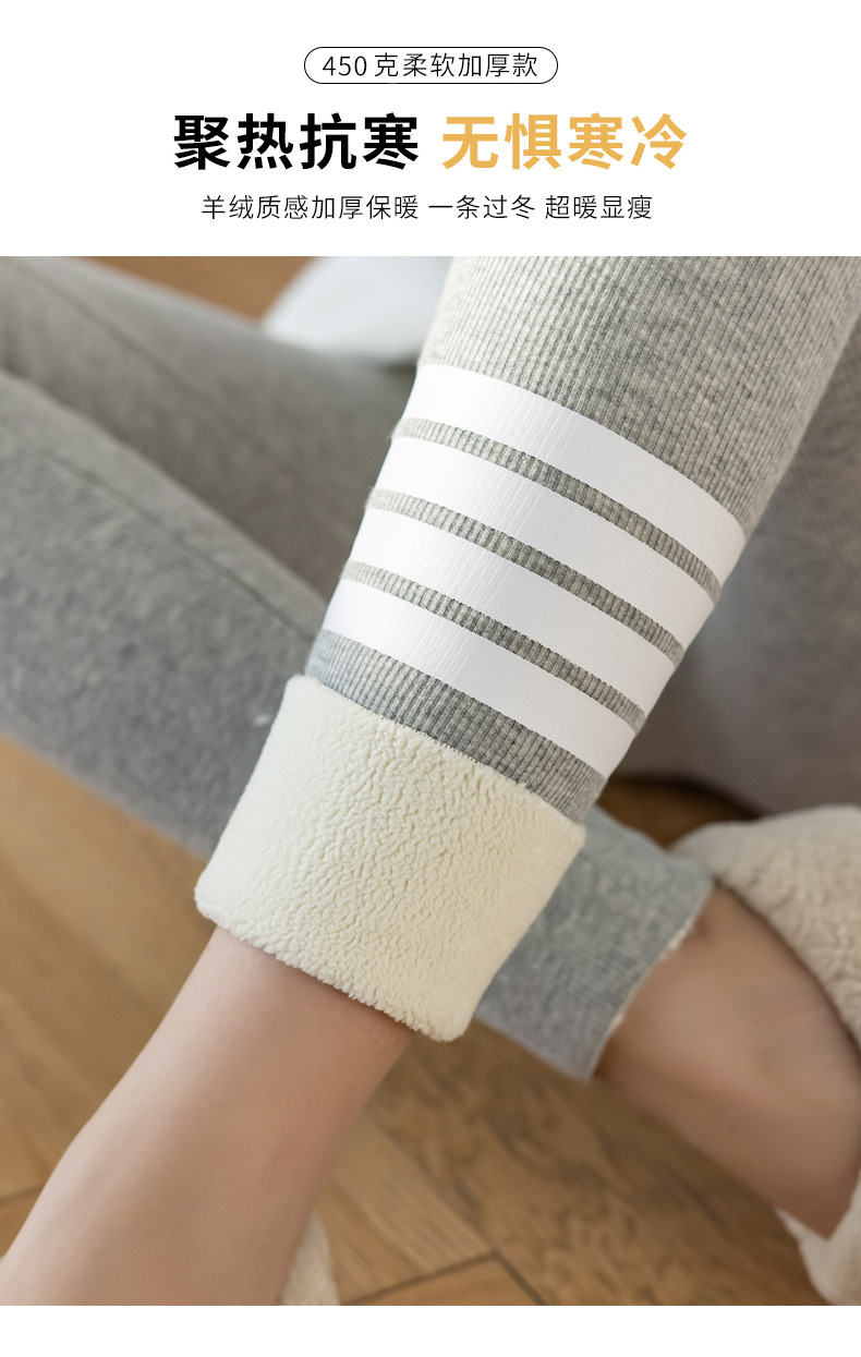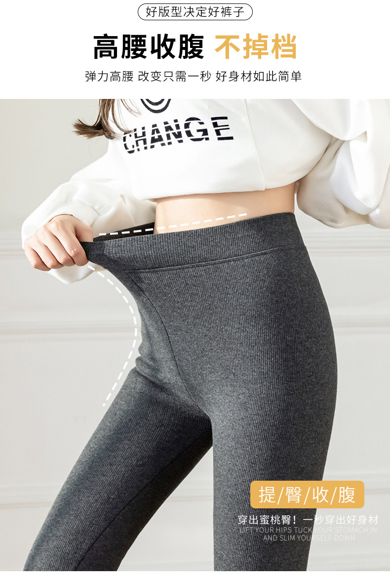 2021款秋冬加绒打底外穿保暖裤紧身小脚灰色3色可选螺纹显瘦羊羔绒加厚保暖
