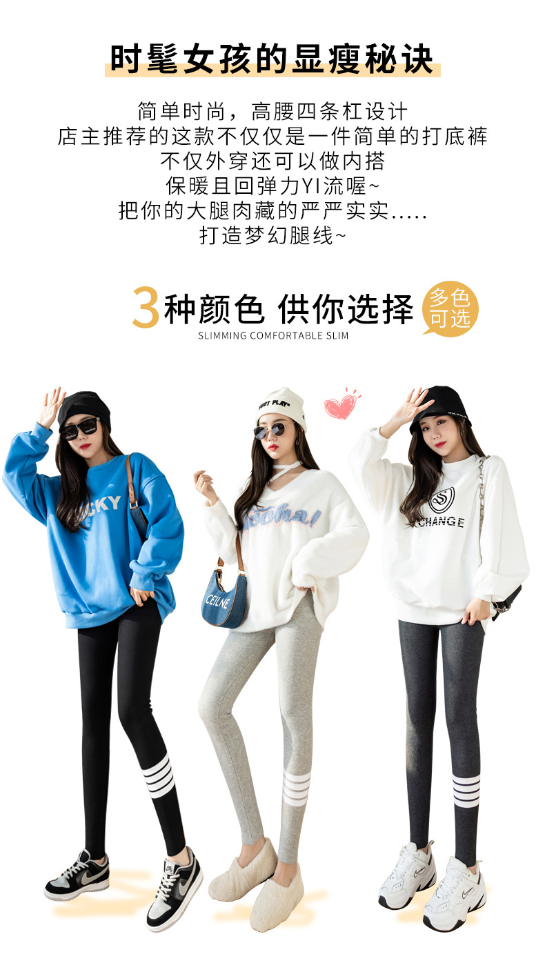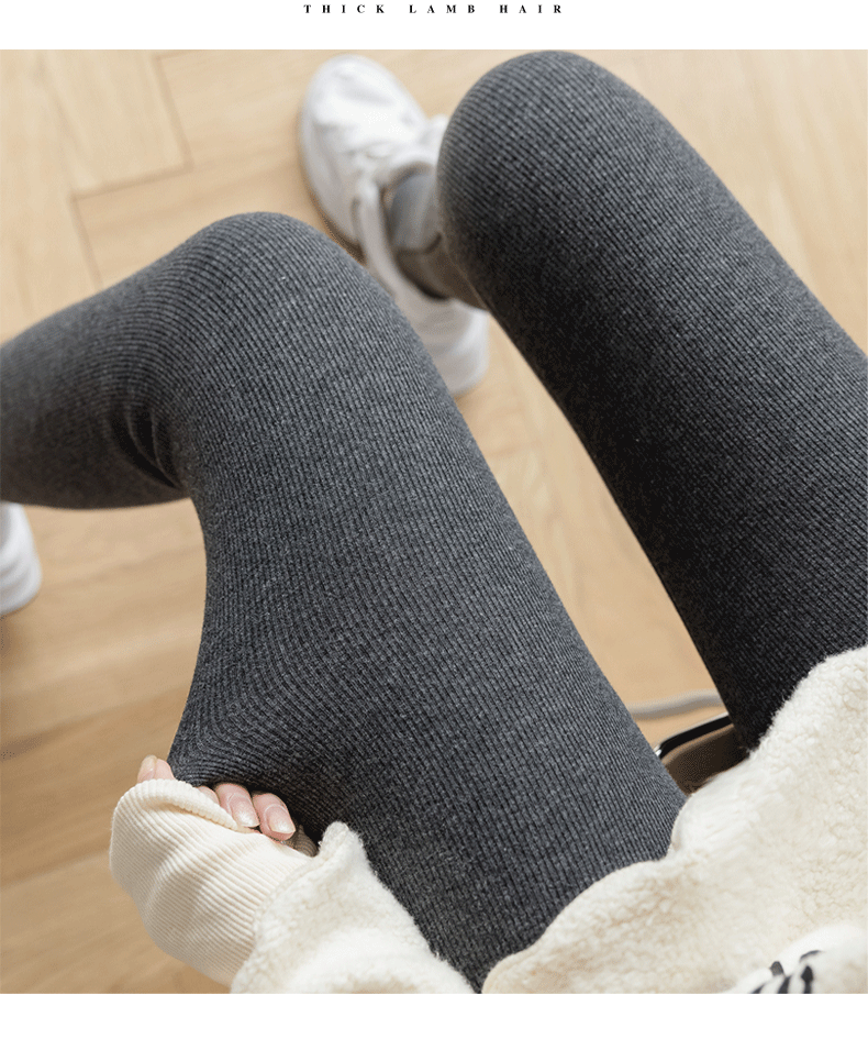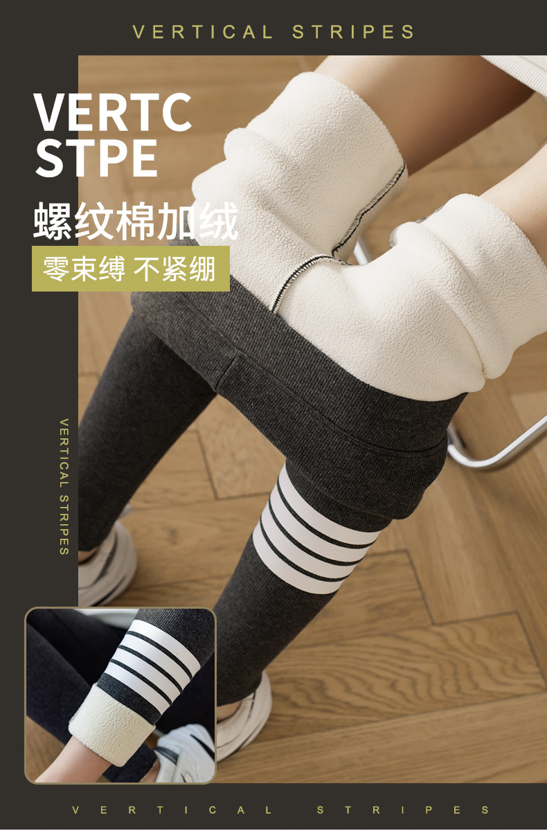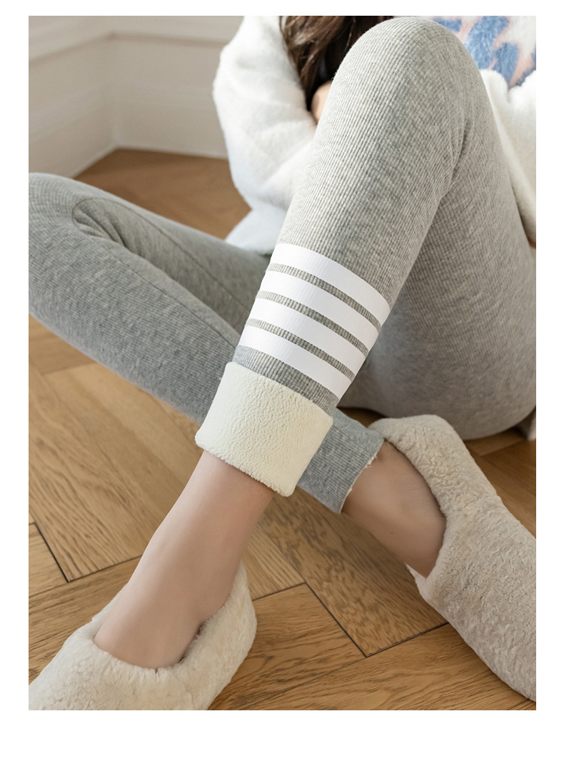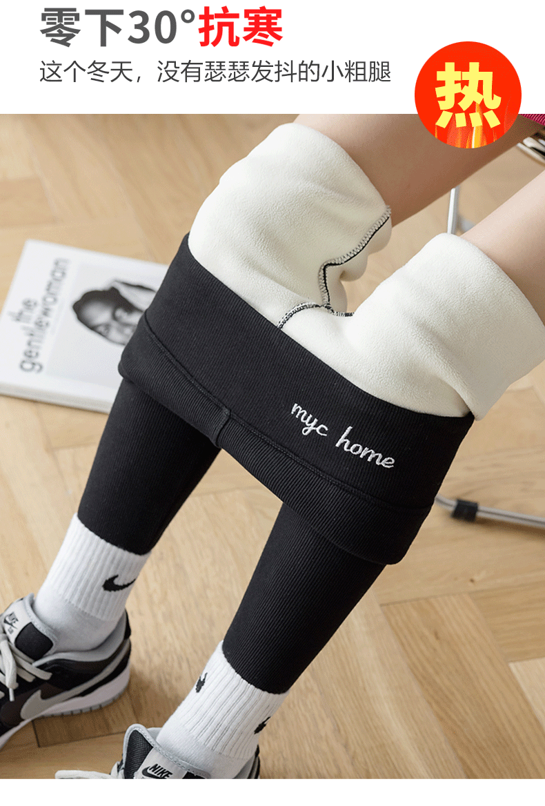 2021款秋冬加绒打底外穿保暖裤紧身小脚灰色3色可选螺纹显瘦羊羔绒加厚保暖