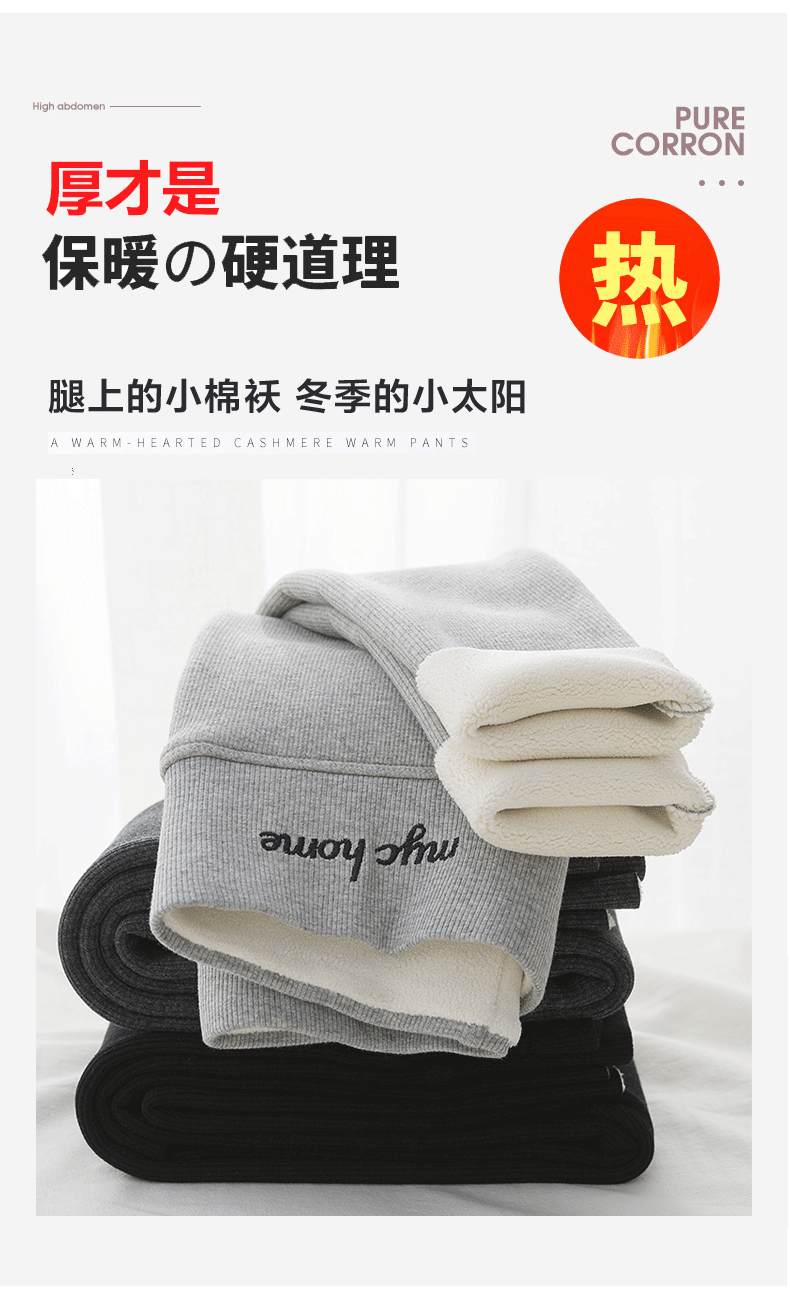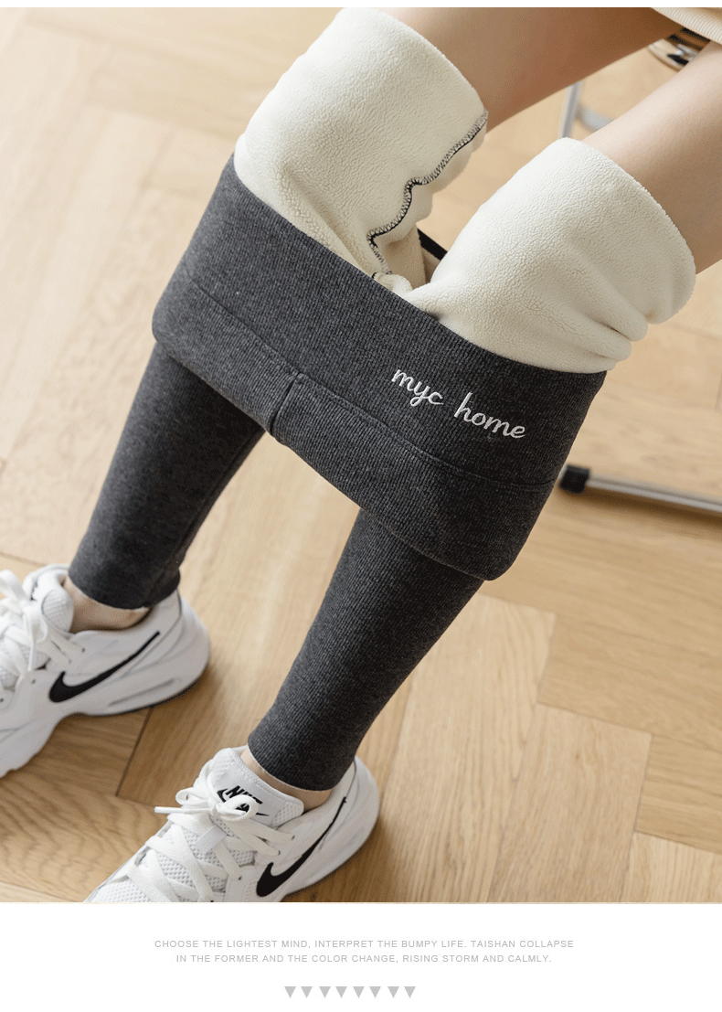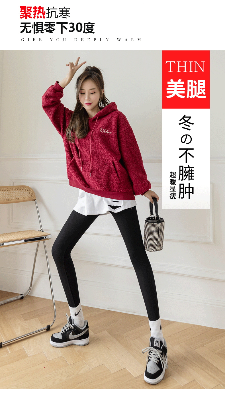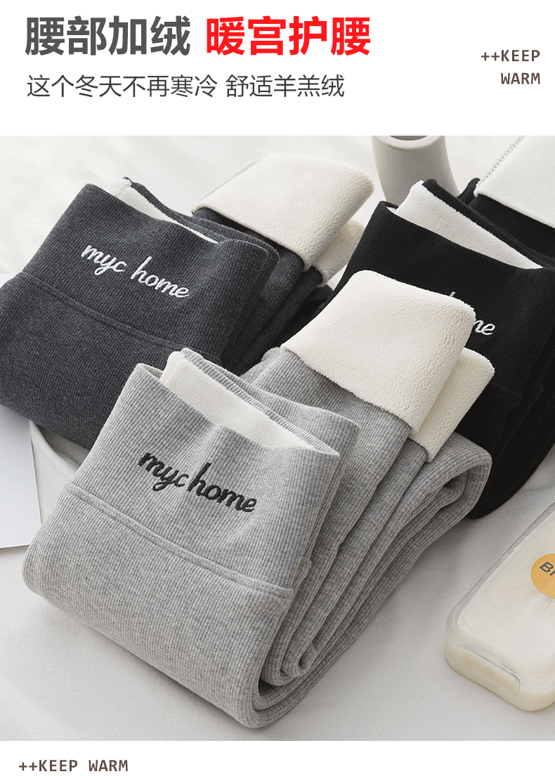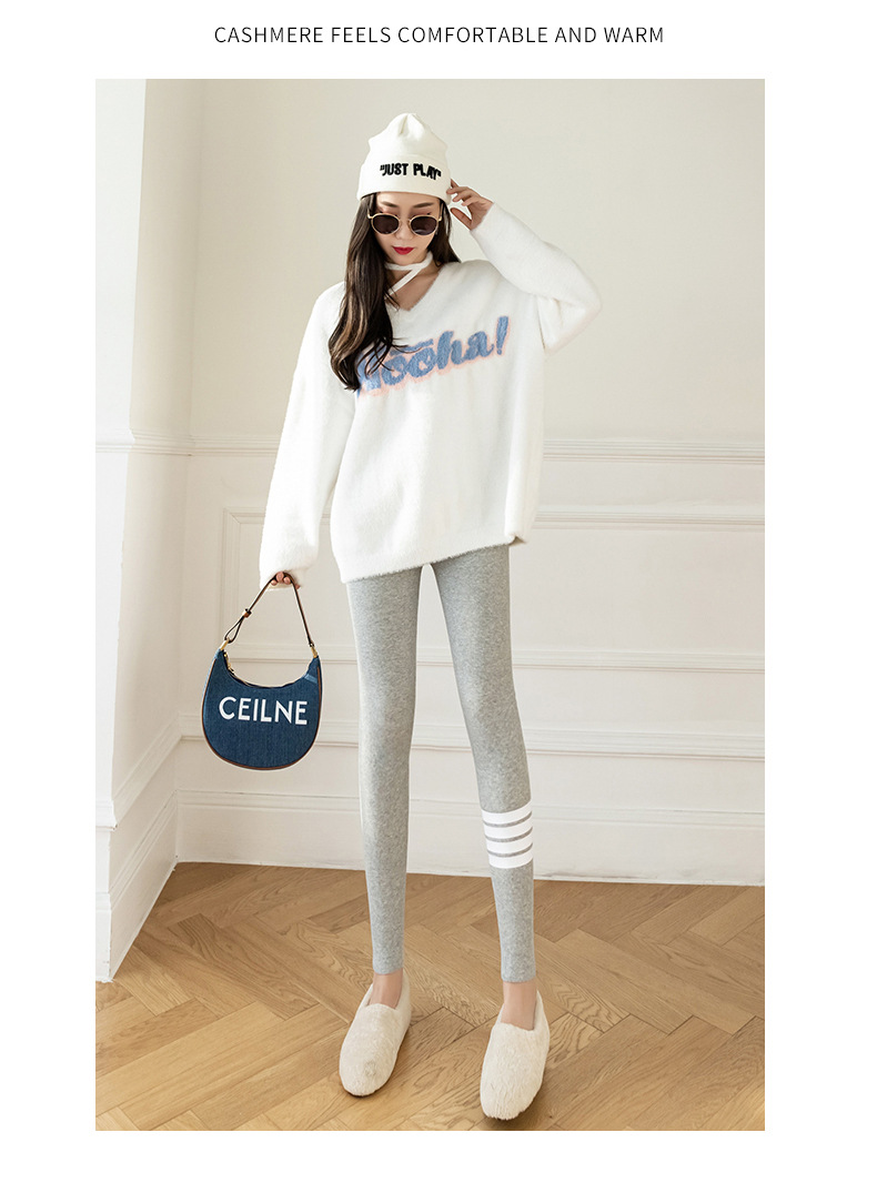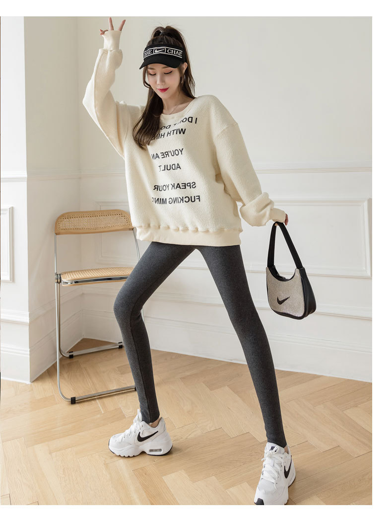 2021款秋冬加绒打底外穿保暖裤紧身小脚灰色3色可选螺纹显瘦羊羔绒加厚保暖