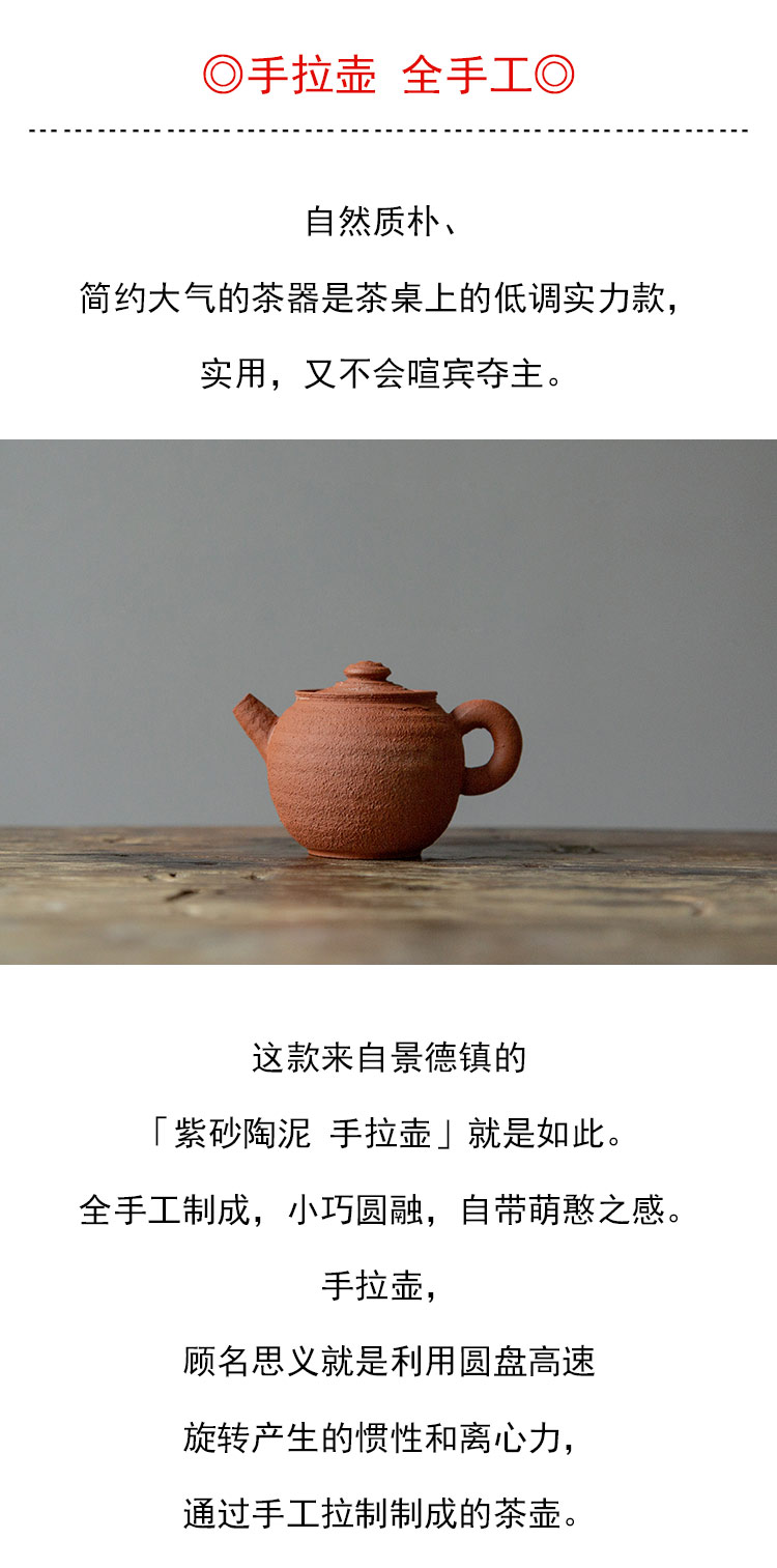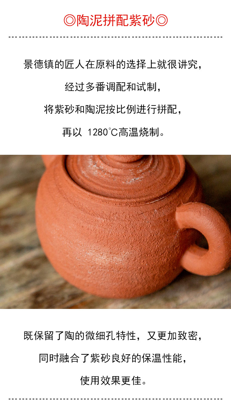 茶香记 紫砂陶泥手拉壶80ml景德镇圆融可爱紫砂拼陶泥泡茶壶茶具