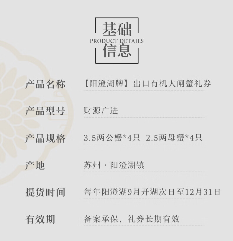 【卡券】【阳澄湖牌有机大闸蟹财源广进型】3.5两公蟹*4只2.5两母蟹*4只