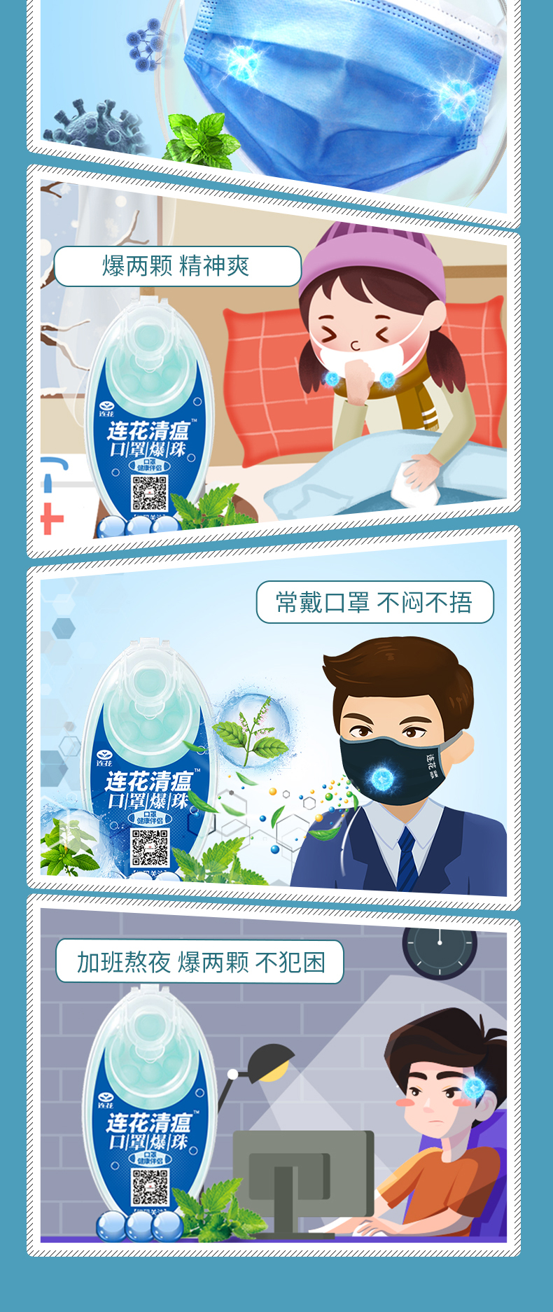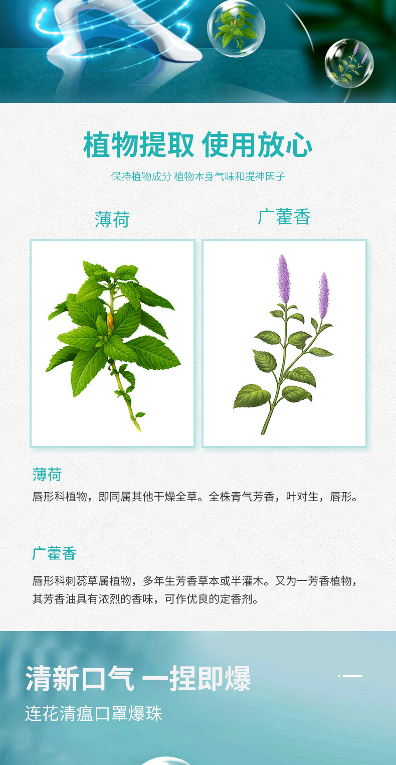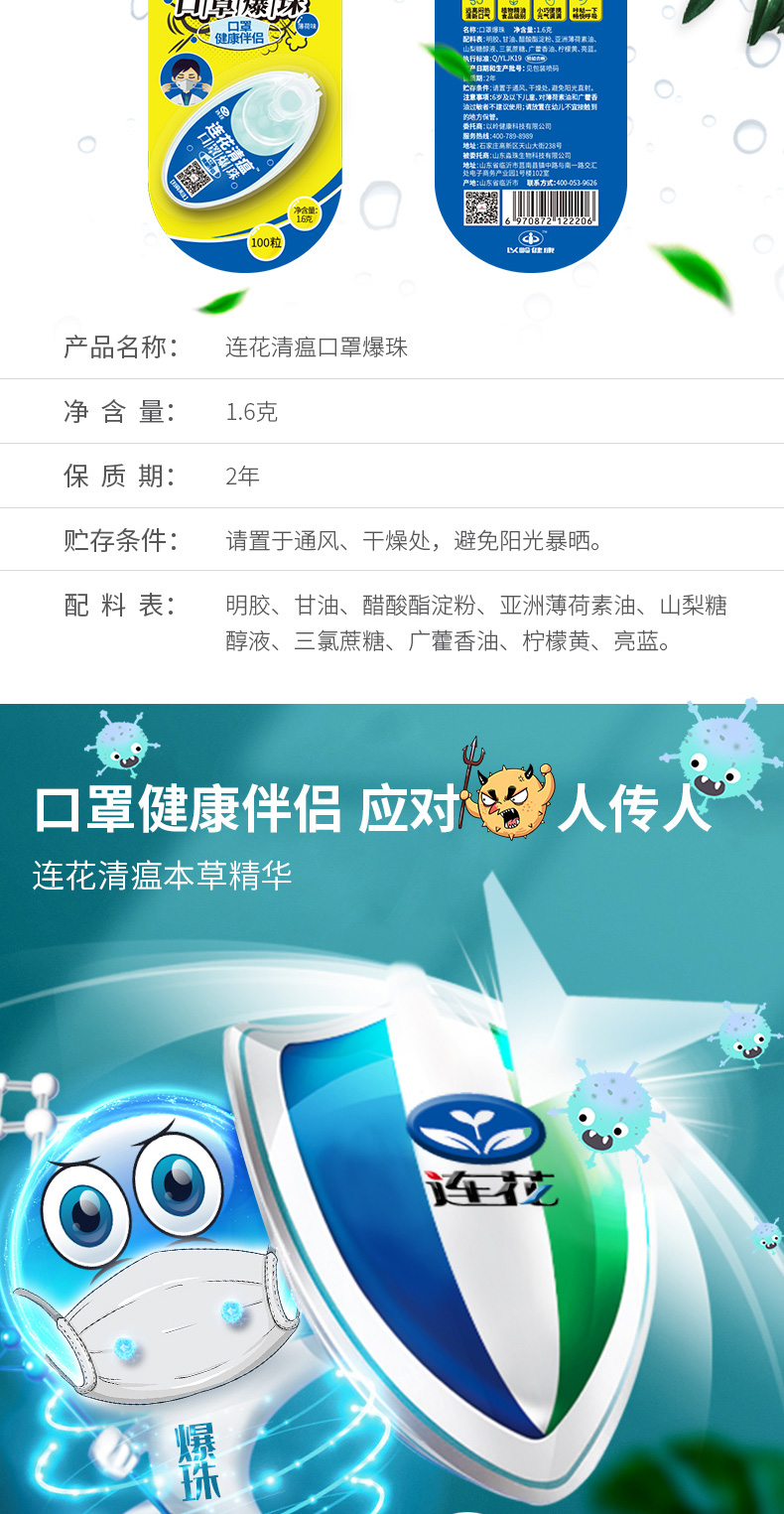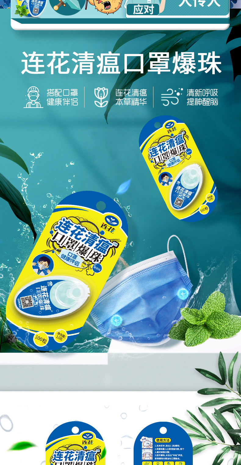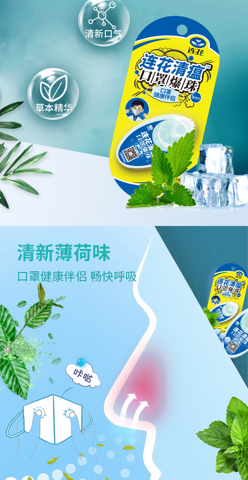 【连花清瘟防闷防异味口罩爆珠】解放口罩异味薄荷香口气爆破珠伴侣除异味防热神器冰爽香珠
