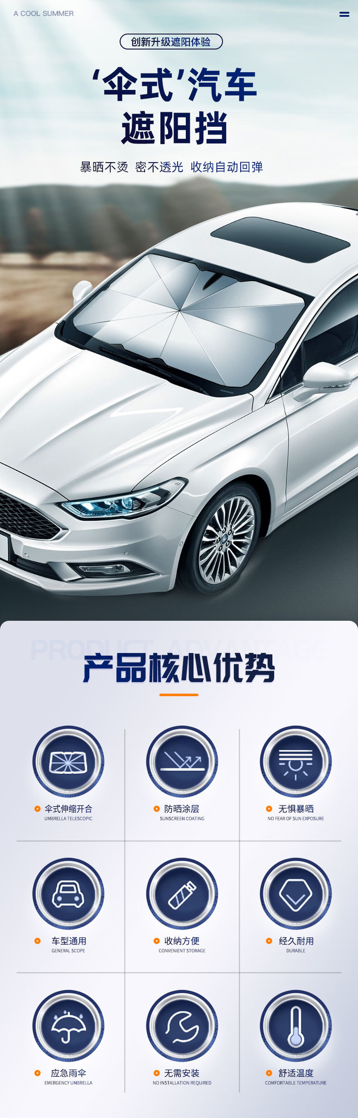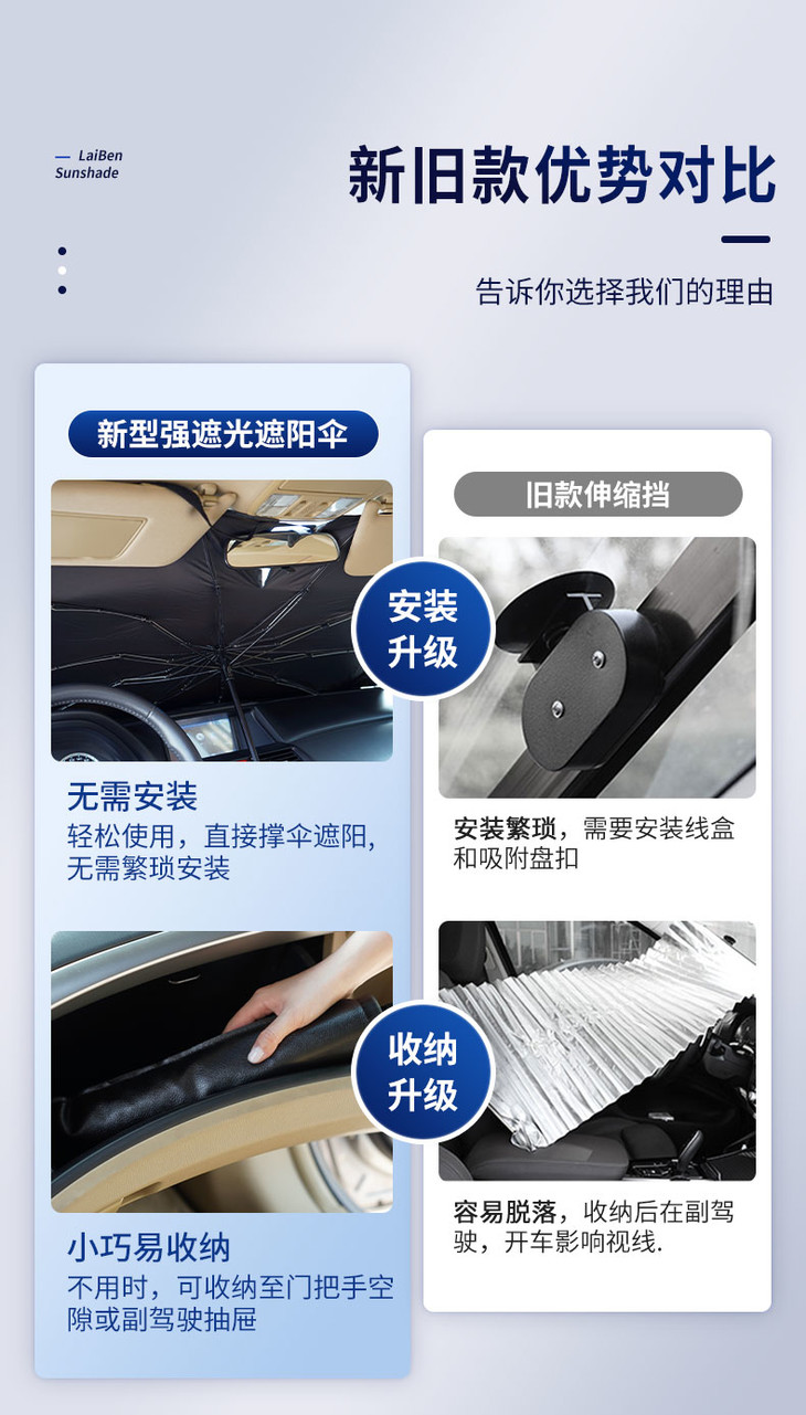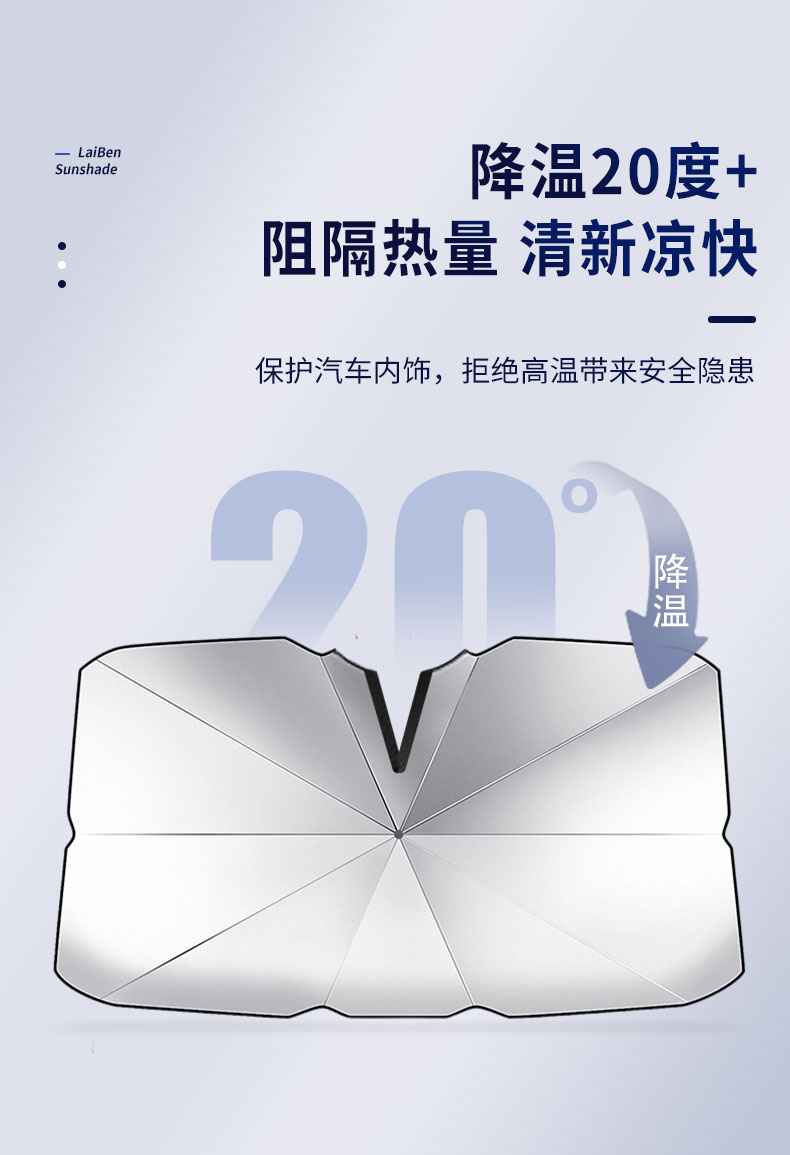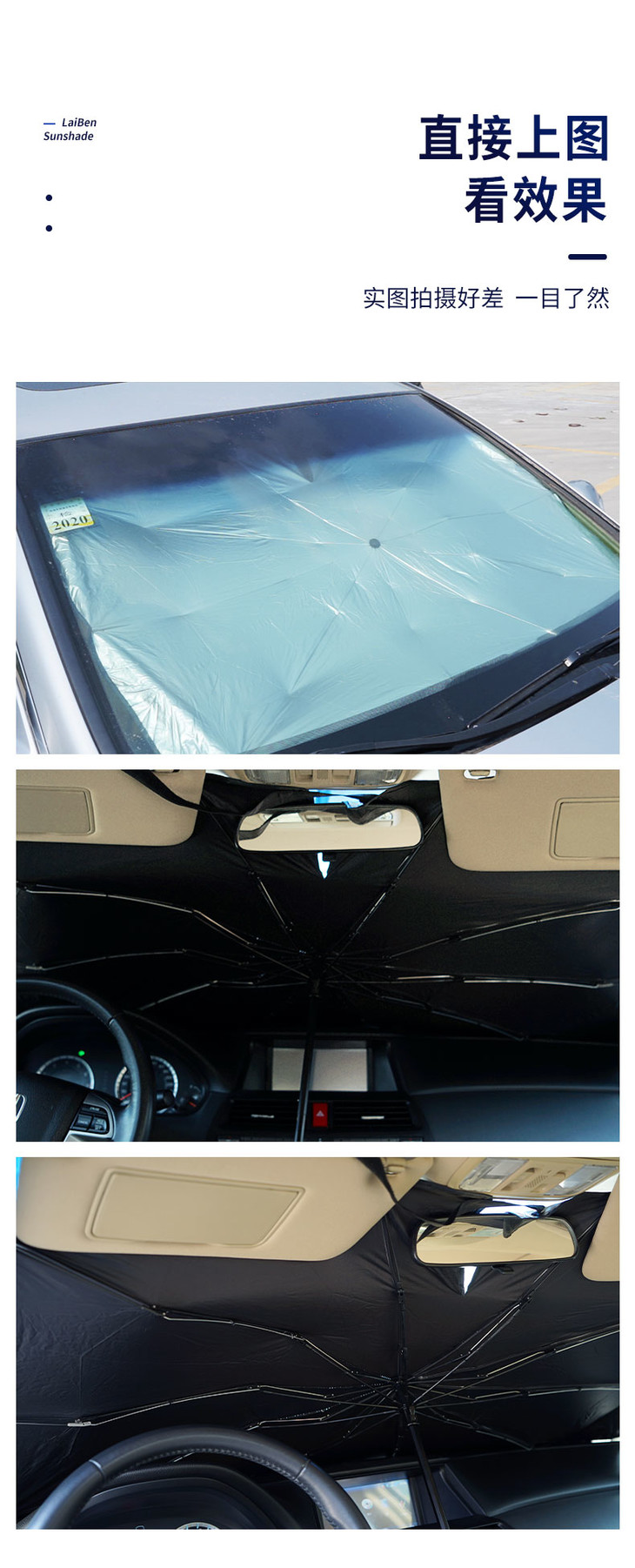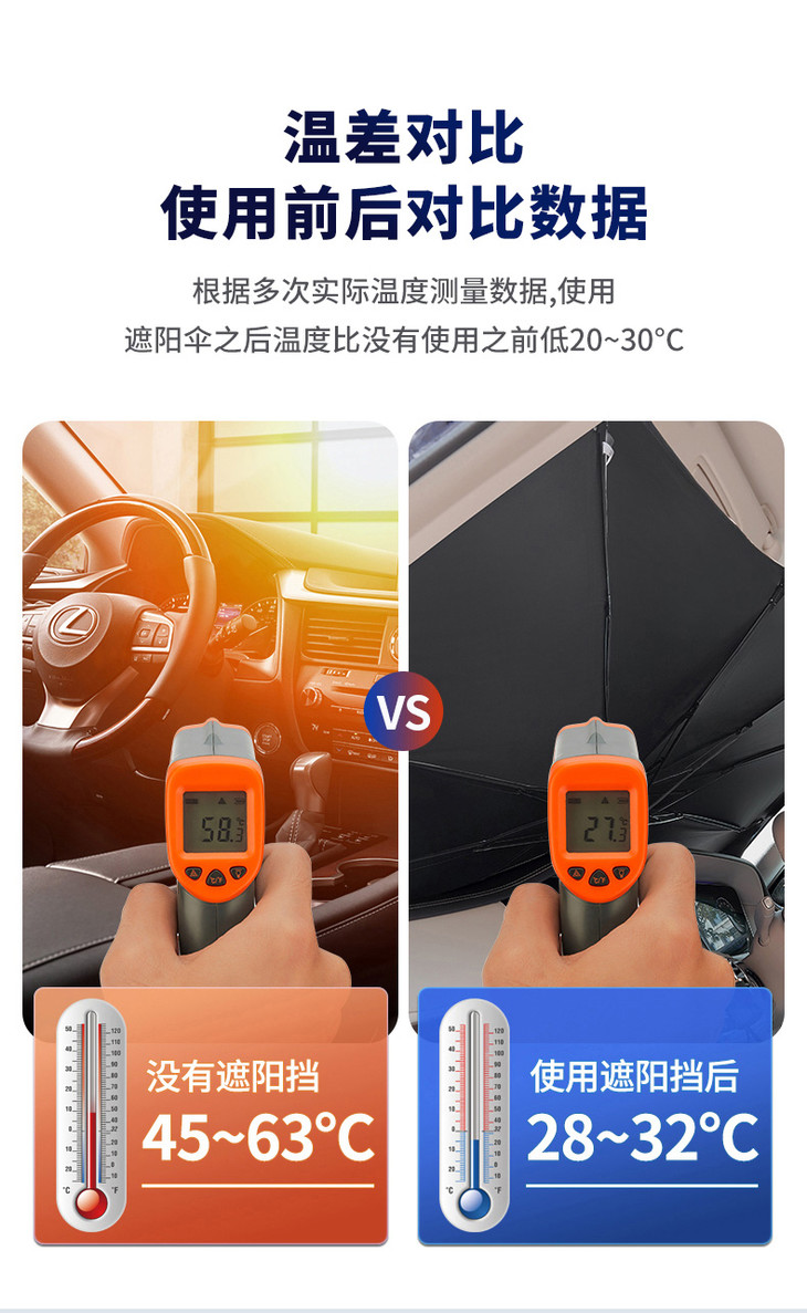 【1秒安装遮阳隔热】升级款车载遮阳伞防晒隔热伞式伸缩无需安装夏季户外停车必备不挡后视镜