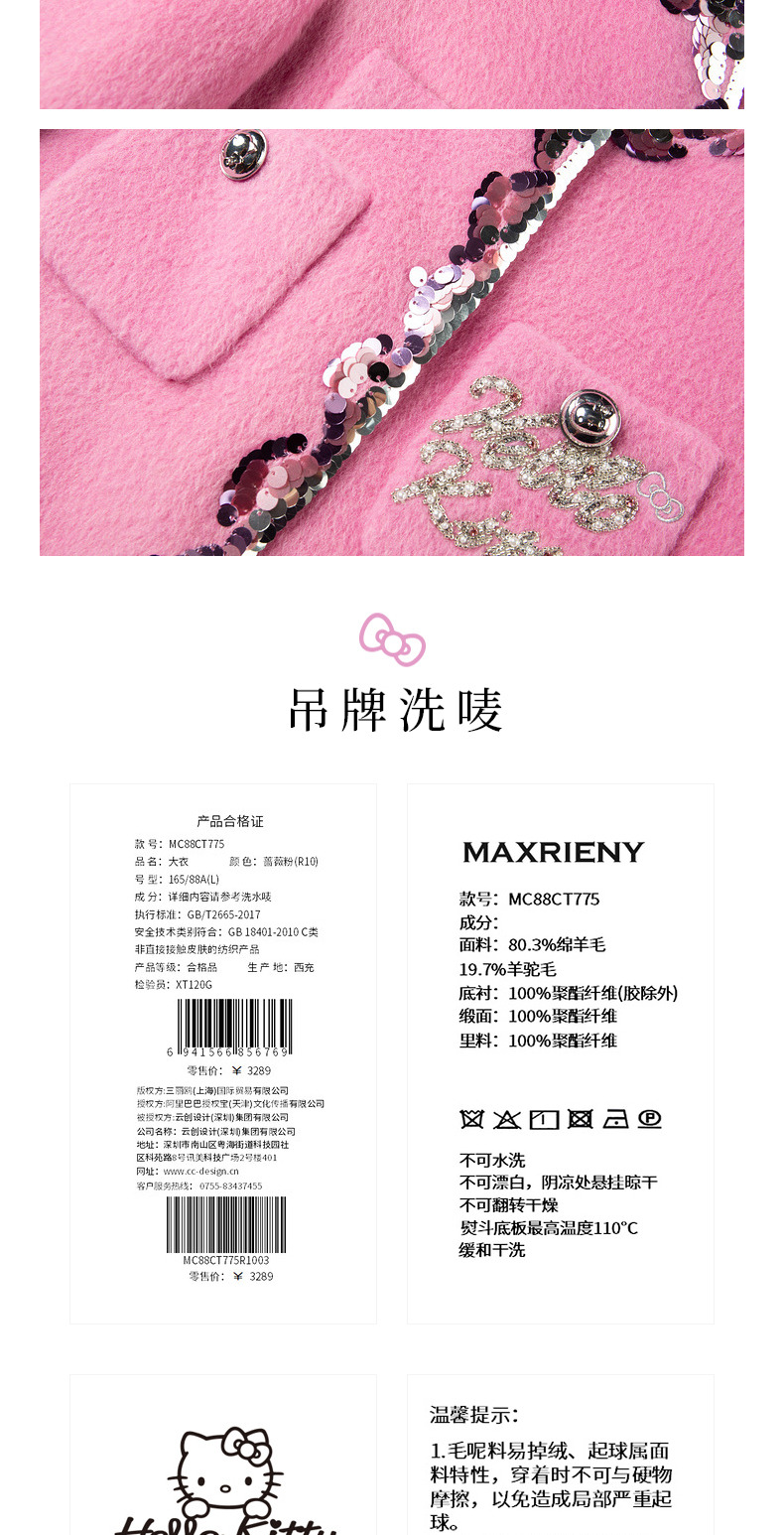 【MAXRIENY x Hello Kitty联名系列】长款小香外套2023冬(货号:MC88CT775)