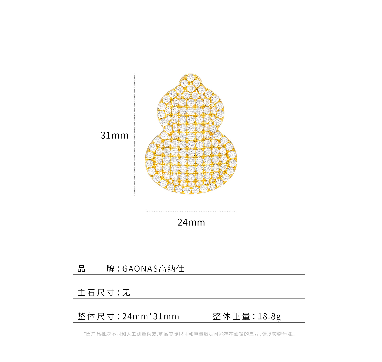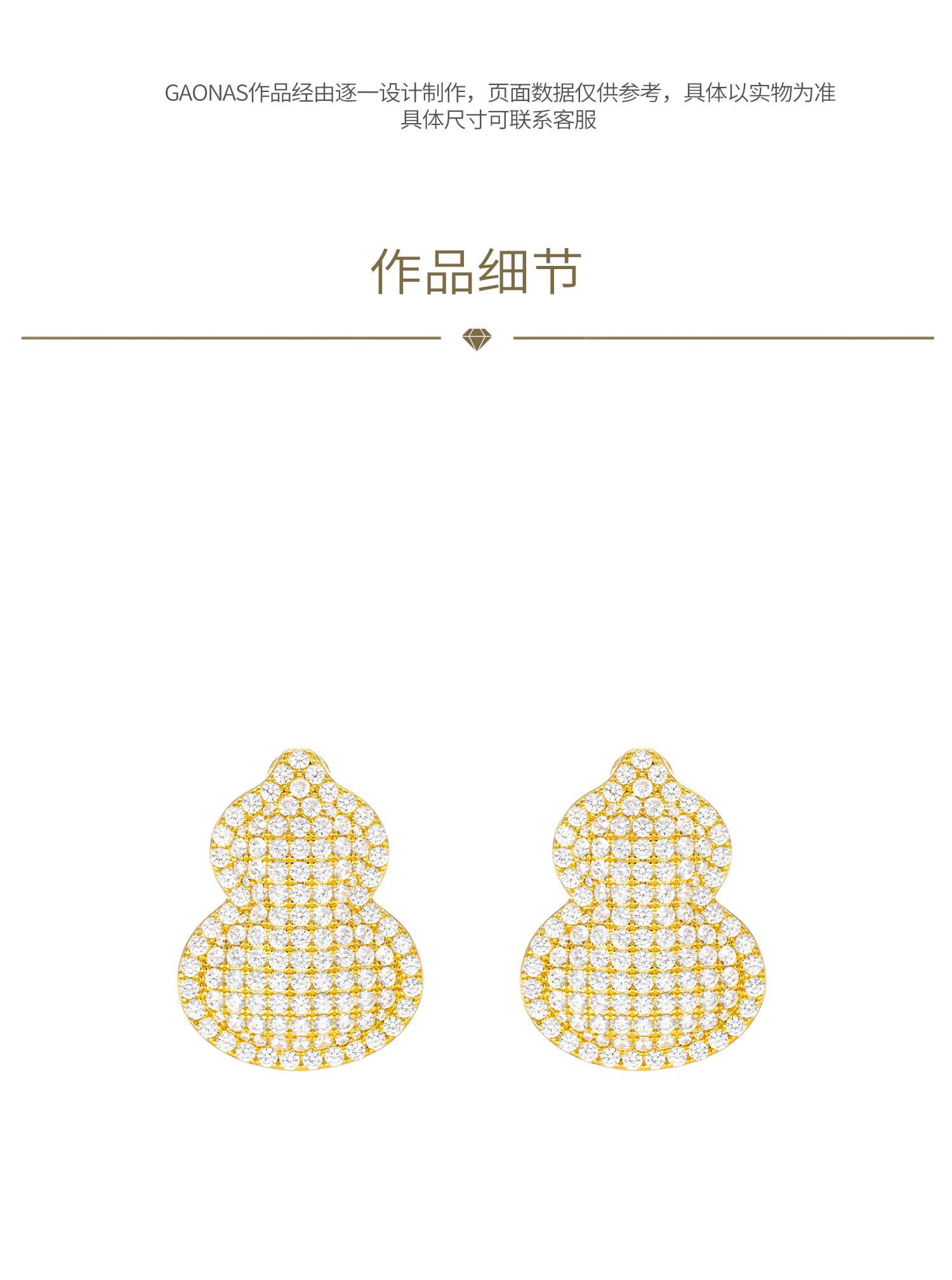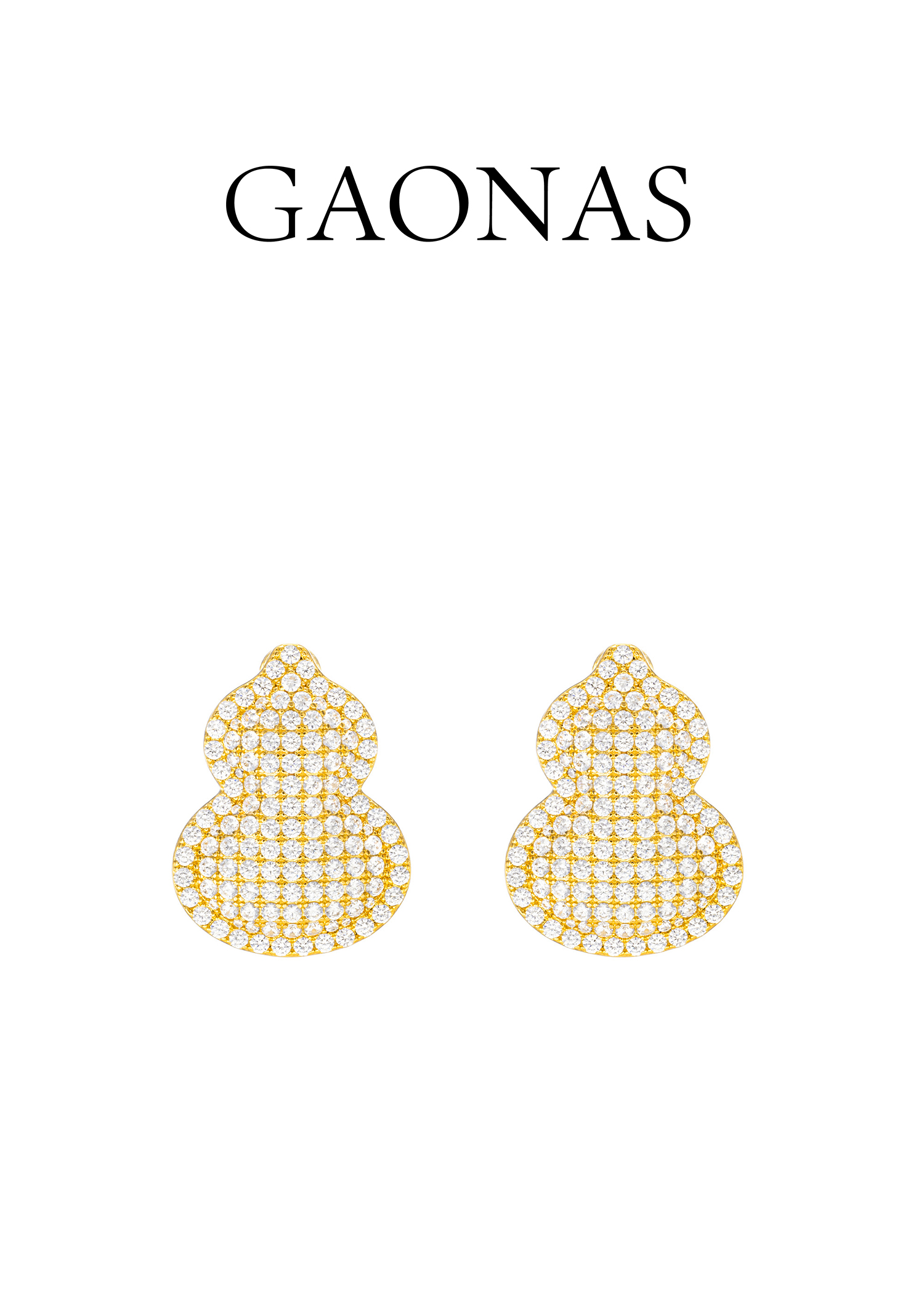 GAONAS 黄铜合成锆石耳饰 福禄双全中式豪镶金色葫芦耳环11926EGO