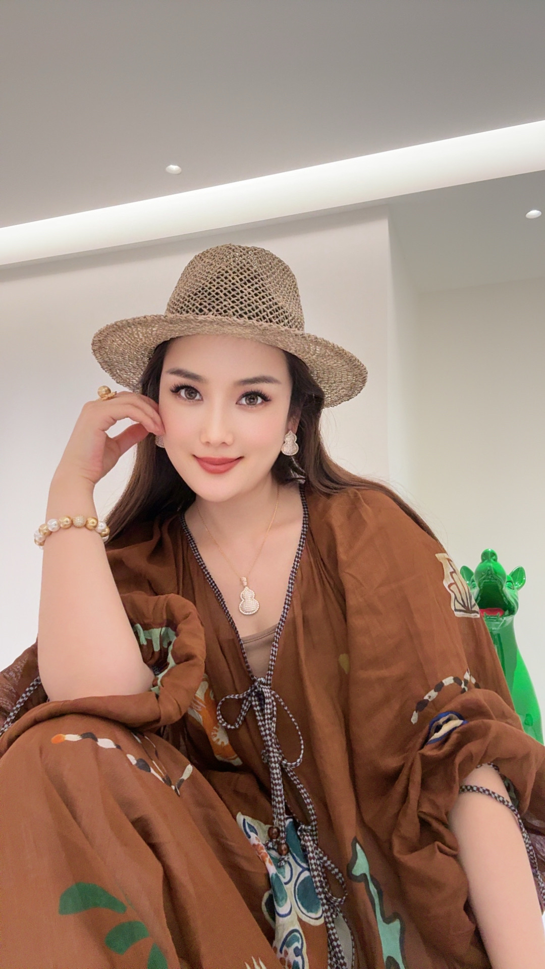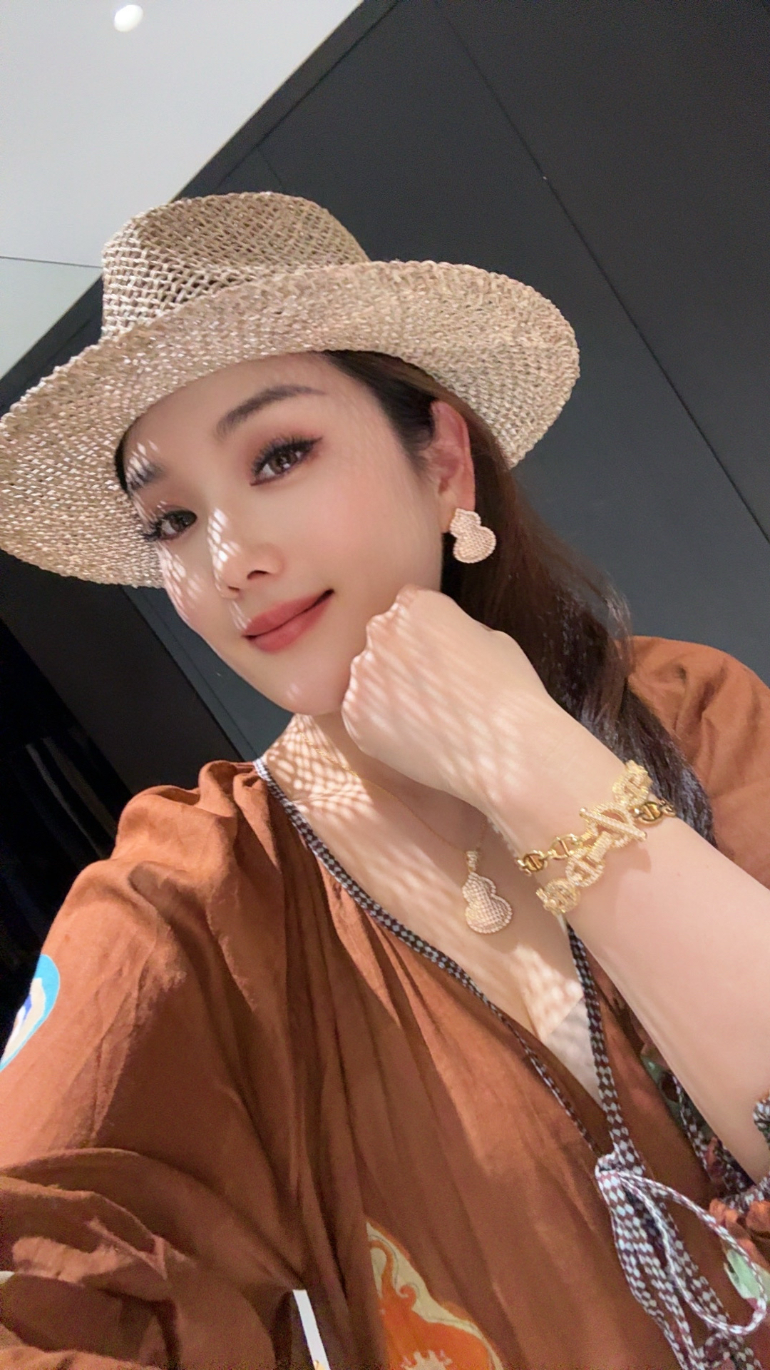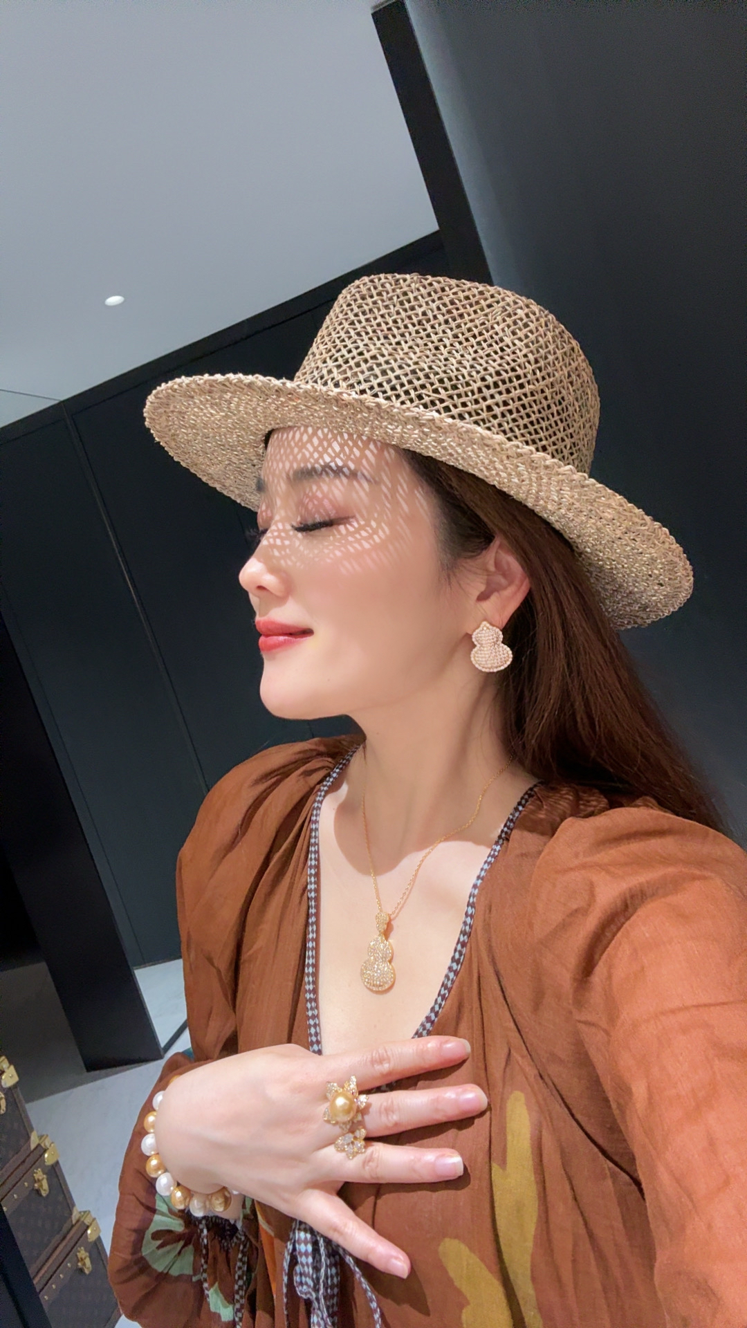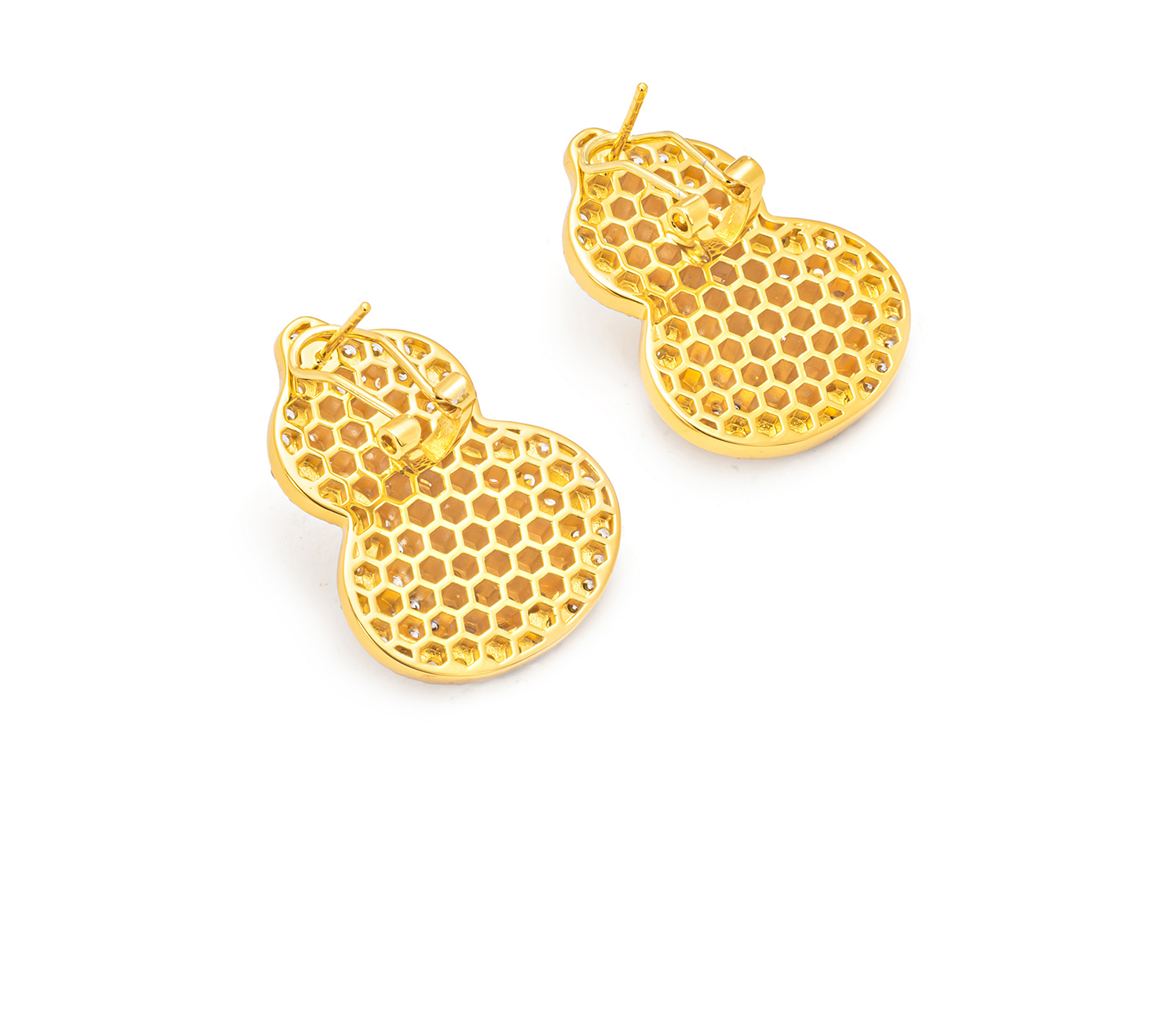GAONAS 黄铜合成锆石耳饰 福禄双全中式豪镶金色葫芦耳环11926EGO