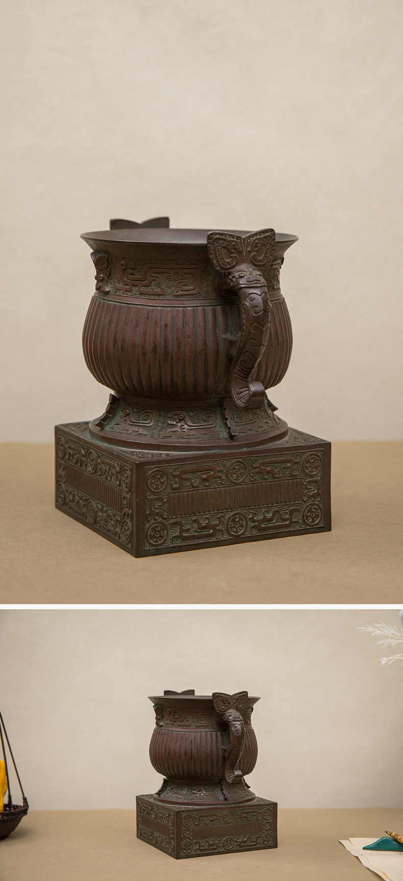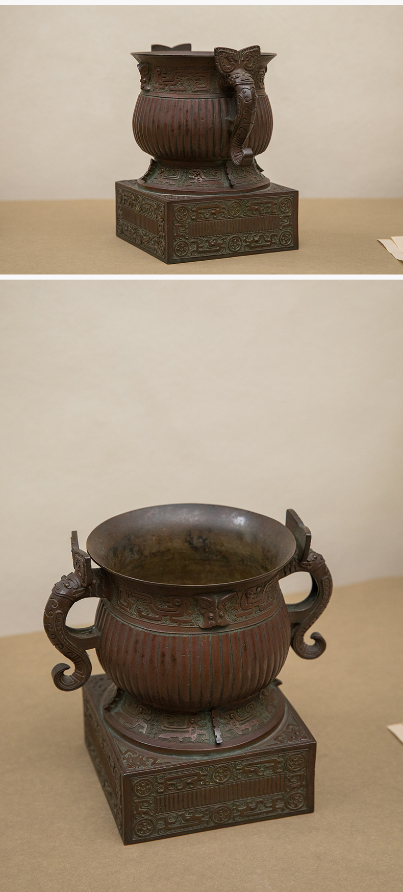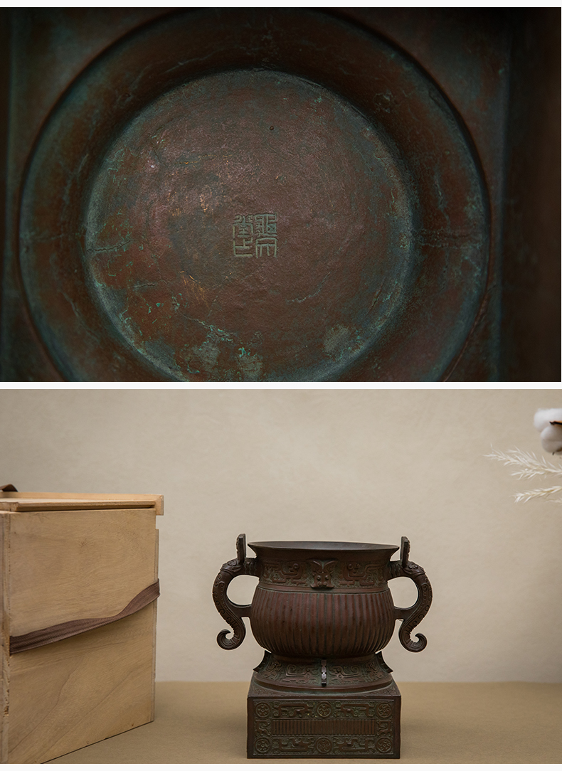 清 沈景修款端石狮纹辟雍砚(红木天地盖)