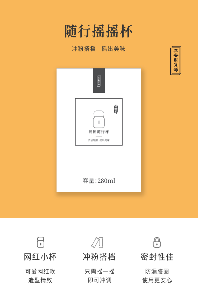 正安国货铺 摇摇随行杯 冲粉伴侣充分溶解冲饮随行携带网红小杯